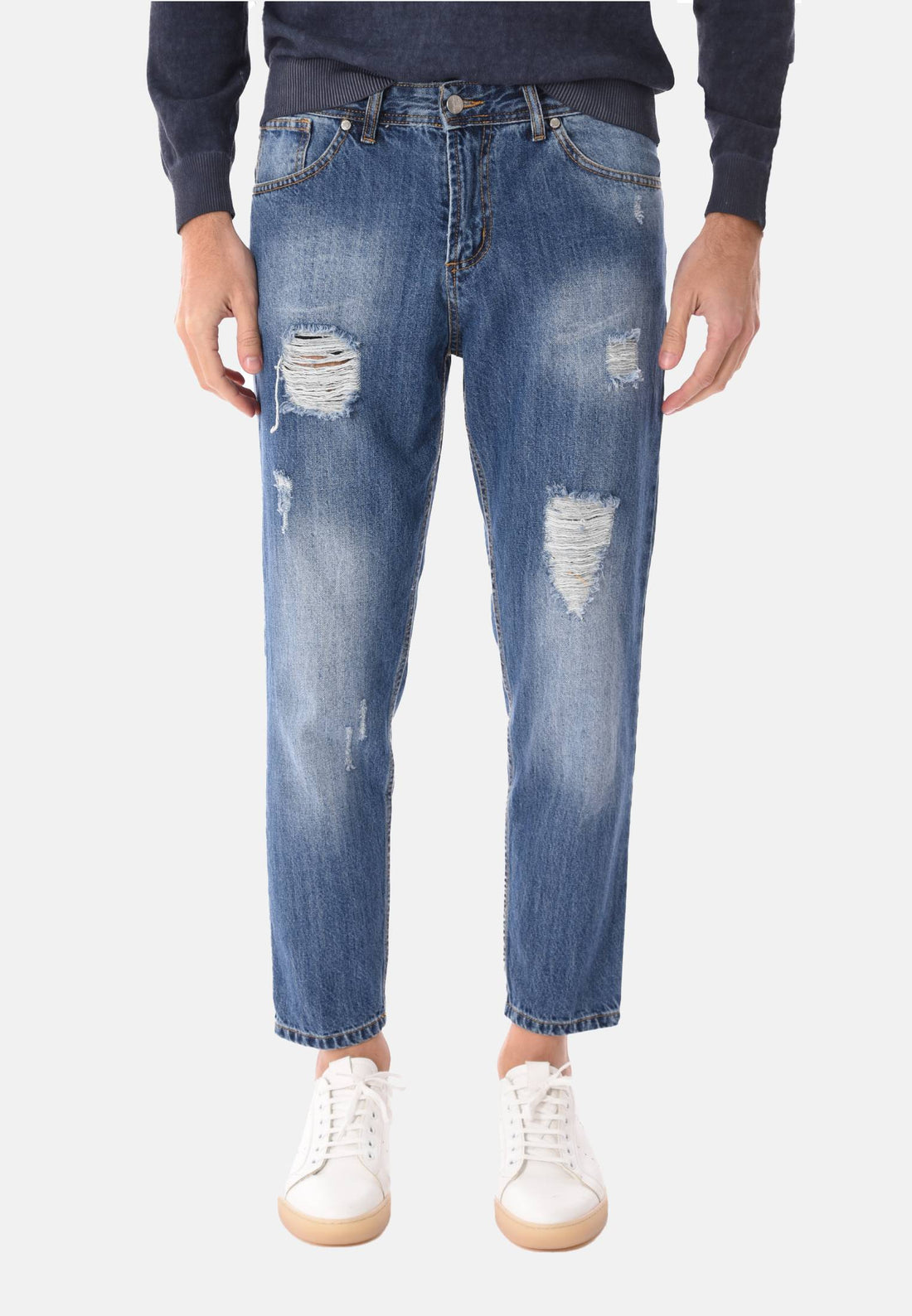 Jeans strappato Scopri il jeans uomo blu denim strappato, un capo dal carattere moderno pensato...