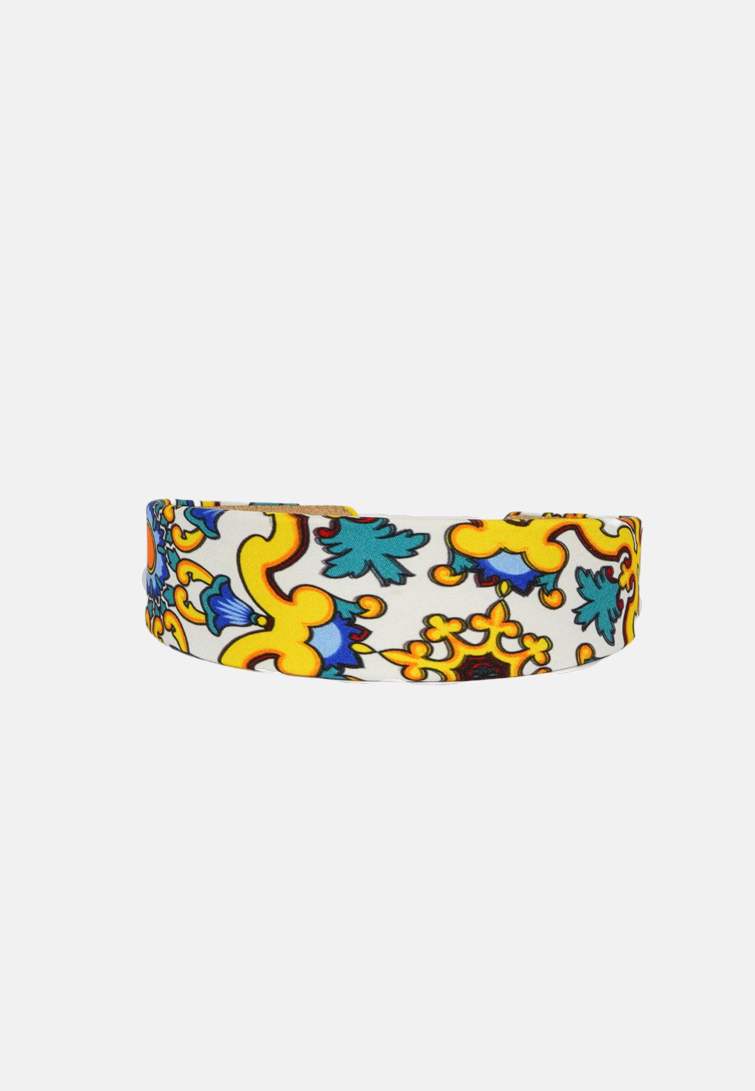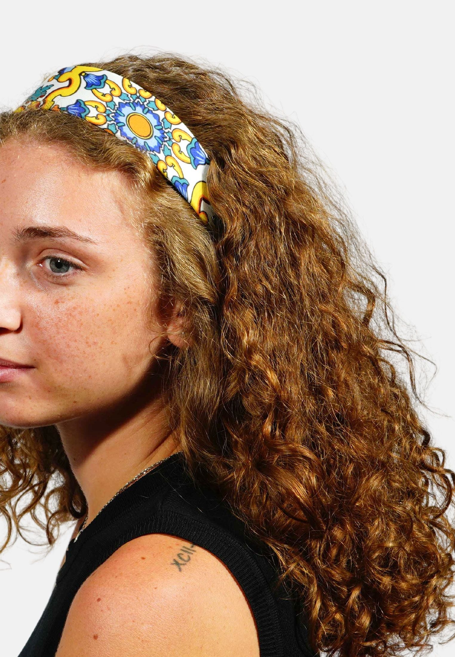 Cerchietto per capelli donna, per un tocco di autentica bellezza mediterranea ai tuoi look, con fantasia maioliche gialla e blu. Questo raffinato accessorio per capelli cattura l'essenza vivace e colorata tipica della costiera amalfintana. Il cerchietto presenta una larghezza di 4 cm, che lo rende un accessorio versatile adatto a ogni tipo di capelli. Il frontino è caratterizzato da un affascinante mix di colori giallo e blu, richiamando le tipiche tonalità vivaci della maiolica napoletana. Realizzato in tessuto poliestere di alta qualità, questo cerchietto offre un comfort ottimale e una resistenza duratura. La sua struttura robusta garantisce una perfetta aderenza ai capelli, permettendoti di indossarlo comodamente per tutto il giorno. Il cerchietto presenta un design sottile e leggero, ideale per tenere i capelli lontani dal viso e creare acconciature eleganti e ordinate. La sua struttura flessibile si adatta comodamente a diverse forme di testa, garantendo una vestibilità aderente e stabile. Sia che tu stia cercando un accessorio per i tuoi look casual quotidiani o desideri aggiungere un tocco di eleganza alle tue occasioni speciali, il nostro frontino per capelli è l'accessorio perfetto.