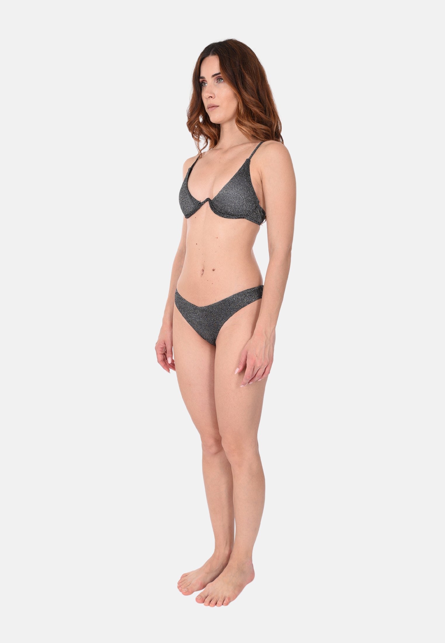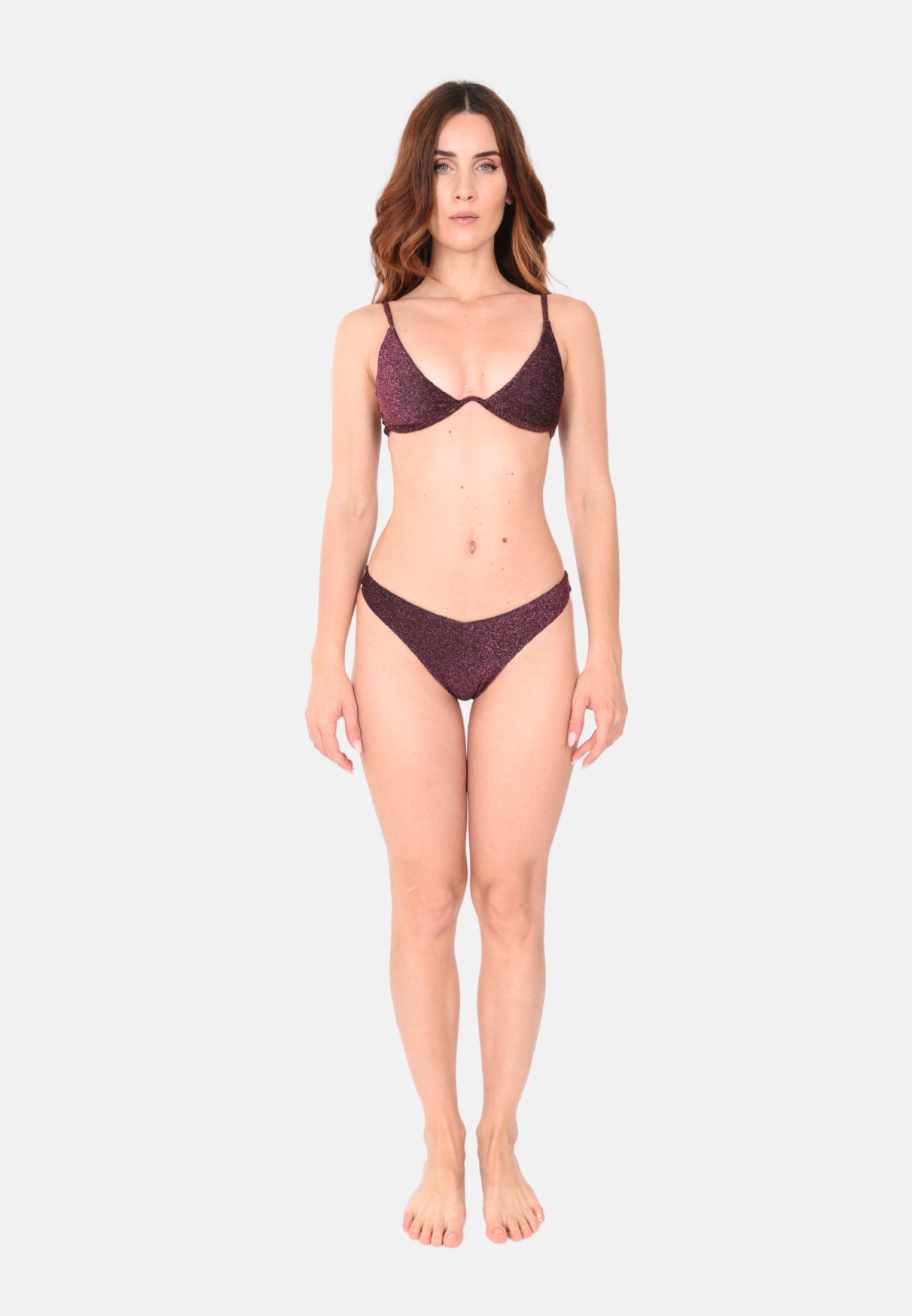 Costume donna glitterato in tessuto lurex, l'accessorio perfetto per le tue giornate al mare o in piscina. Con il suo design scintillante con brillantini e i suoi 8 affascinanti colori, questo costume catturerà l'attenzione di tutti gli sguardi. Il set da due pezzi è composto da un reggiseno con ferretto e coppetta estraibile, per offrire il massimo comfort e supporto e dallo slip. Le bretelle regolabili consentono di personalizzare la vestibilità, garantendo una vestibilità sicura e adatta alle tue esigenze. L'effetto luccicante del tessuto lurex dona un tocco di eleganza e glamour al tuo look da mare. Indossa questo costume e sentiti al centro dell'attenzione, grazie al suo stile unico e brillante. Disponibile in taglie dalla 40 alla 46, il nostro costume brillantinato si adatta a diverse forme e taglie, offrendo una vestibilità perfetta per ogni donna. Costume disponibile in 8 colori: blu cobalto , verde , rosa , fuxia, nero, grigio, lilla, viola. Scegli il tuo colore preferito e preparati a fare una grande impressione con il tuo stile impeccabile. La brasiliana con slip aggiunge un tocco di sensualità e femminilità al tuo look da spiaggia. Composizione 92% poliestere e 8% elastan.