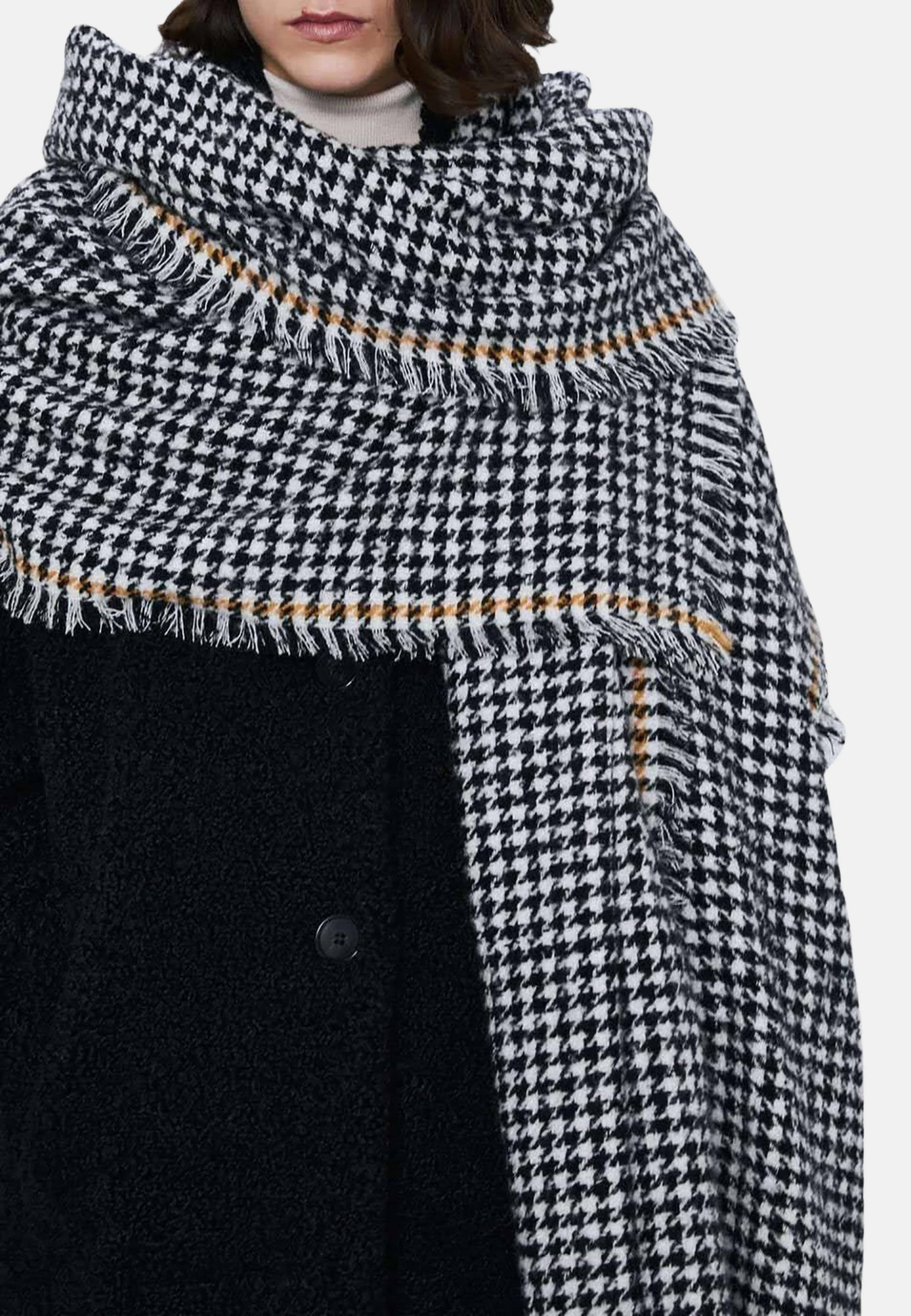 Sciarpone morbido, caldo e voluminoso con fantasia pied de poule. Sciarpa invernale, adatta per essere alla moda anche nei giorni più freddi. Colore bianco e nero