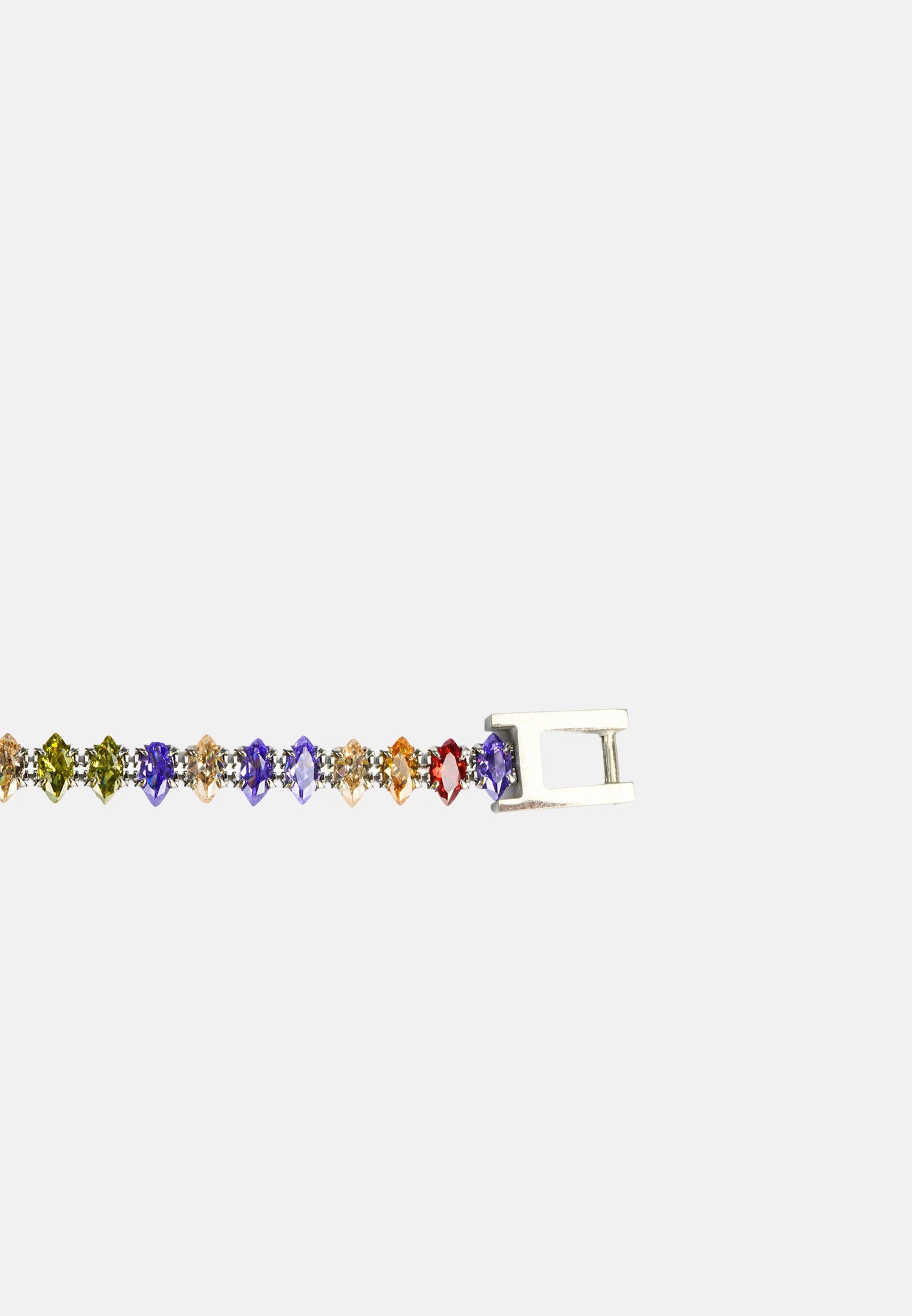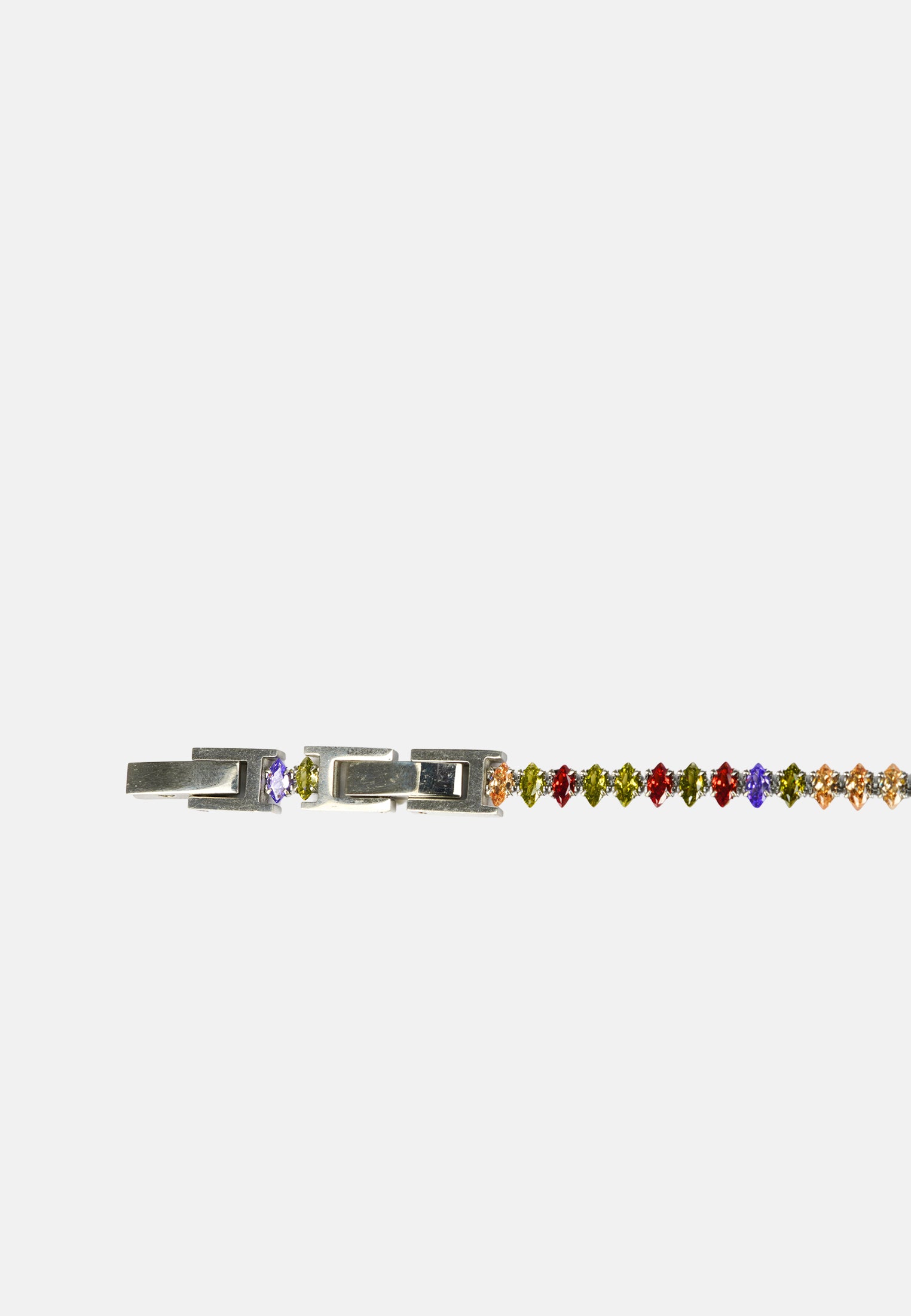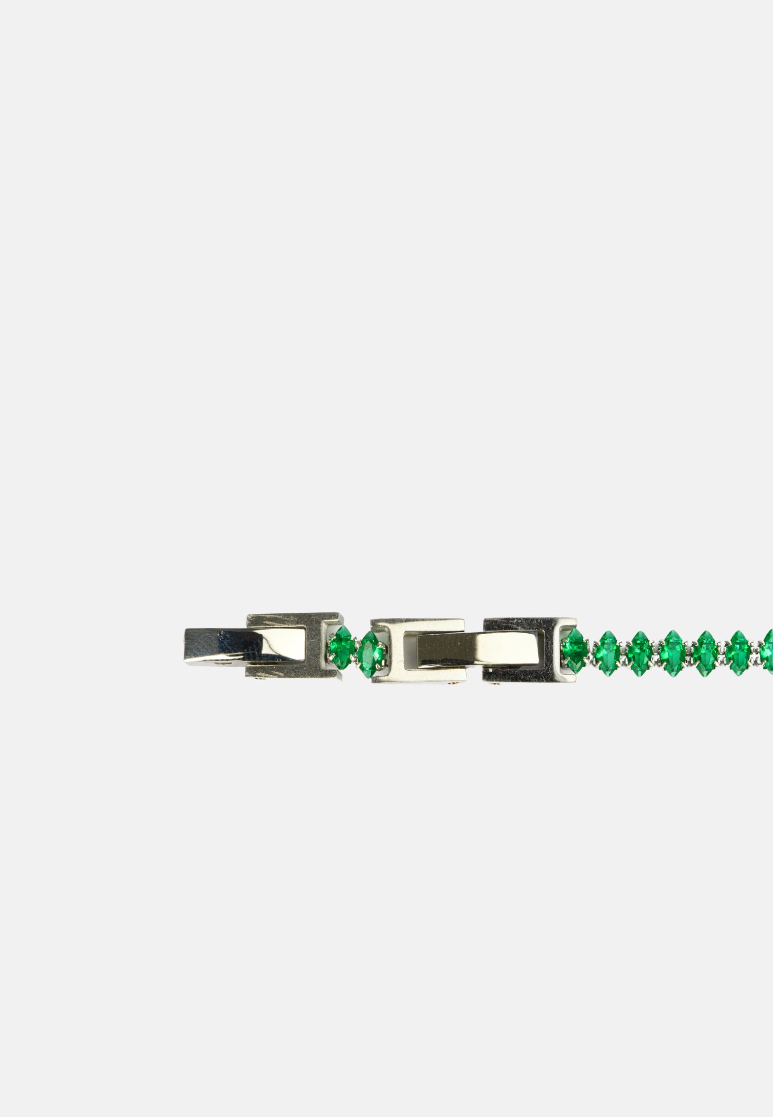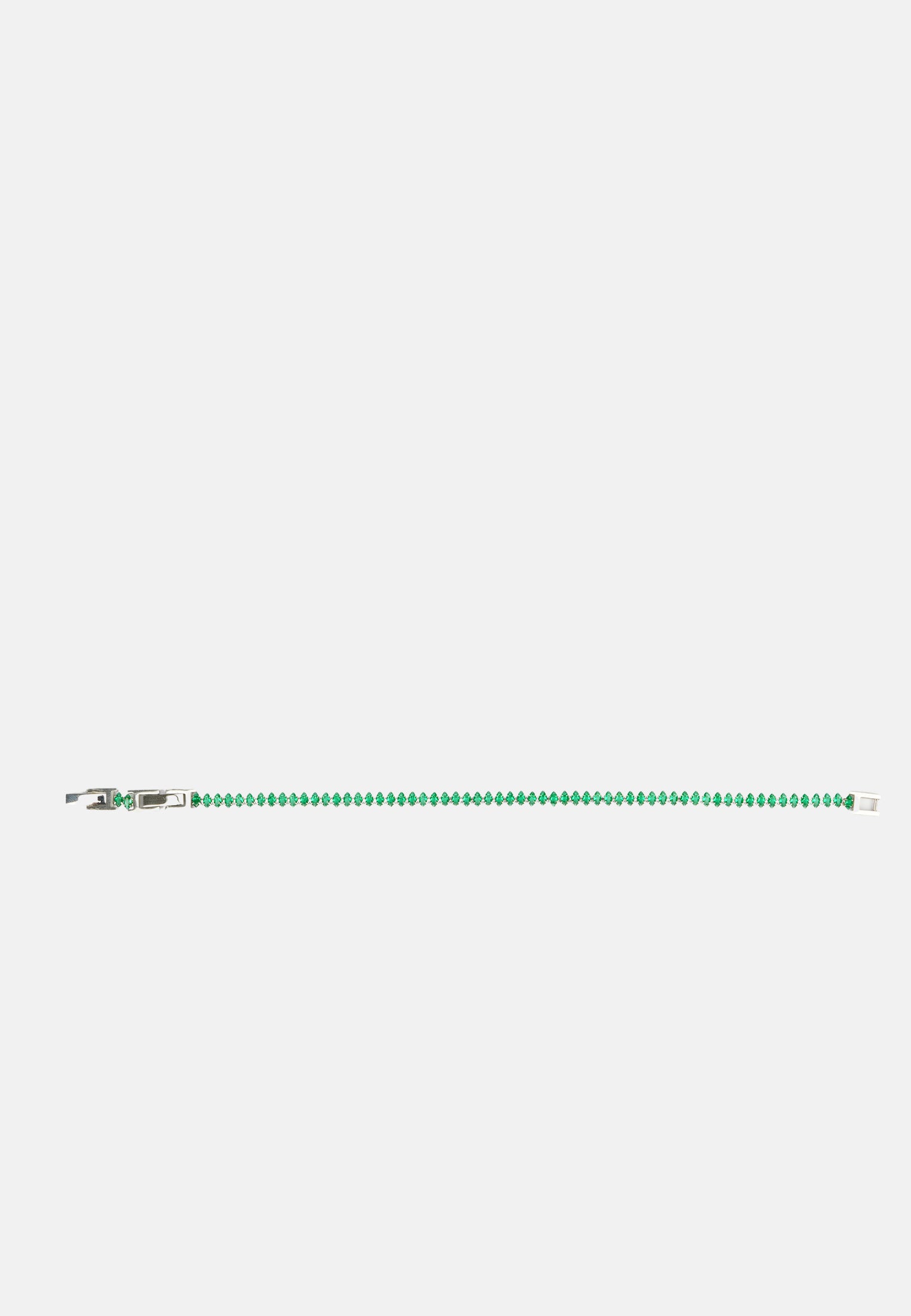 Bracciale tennis sottile unisex, dalla misura regolabile. Braccialetto color argento con brillantini incastonati, disponibile in cinque colori differenti: bianco - verde - nero - rainbow - blu. Lunghezza varibile grazie alla doppia chiusura da 17 a 19 cm. Spessore del bracciale: 0,20 cm. Materiale del tennis acciaio steel e zirconi, doppia chiusura con gancio a incastro. Raffinato ed elegante, il modello tennis è l'accessorio più richiesto ed indossato di sempre sia per gli uomini che per le donne. Una perfetta idea regalo per tutte le occasioni. Il bracciale sarà consegnato in una scatolina. Per prenderti cura al meglio del tuo bracciale e preservarne l'integrità, ti invitiamo ad evitare l'uso di profumi direttamente a contatto col gioiello e l'immersione prolungata in acqua.