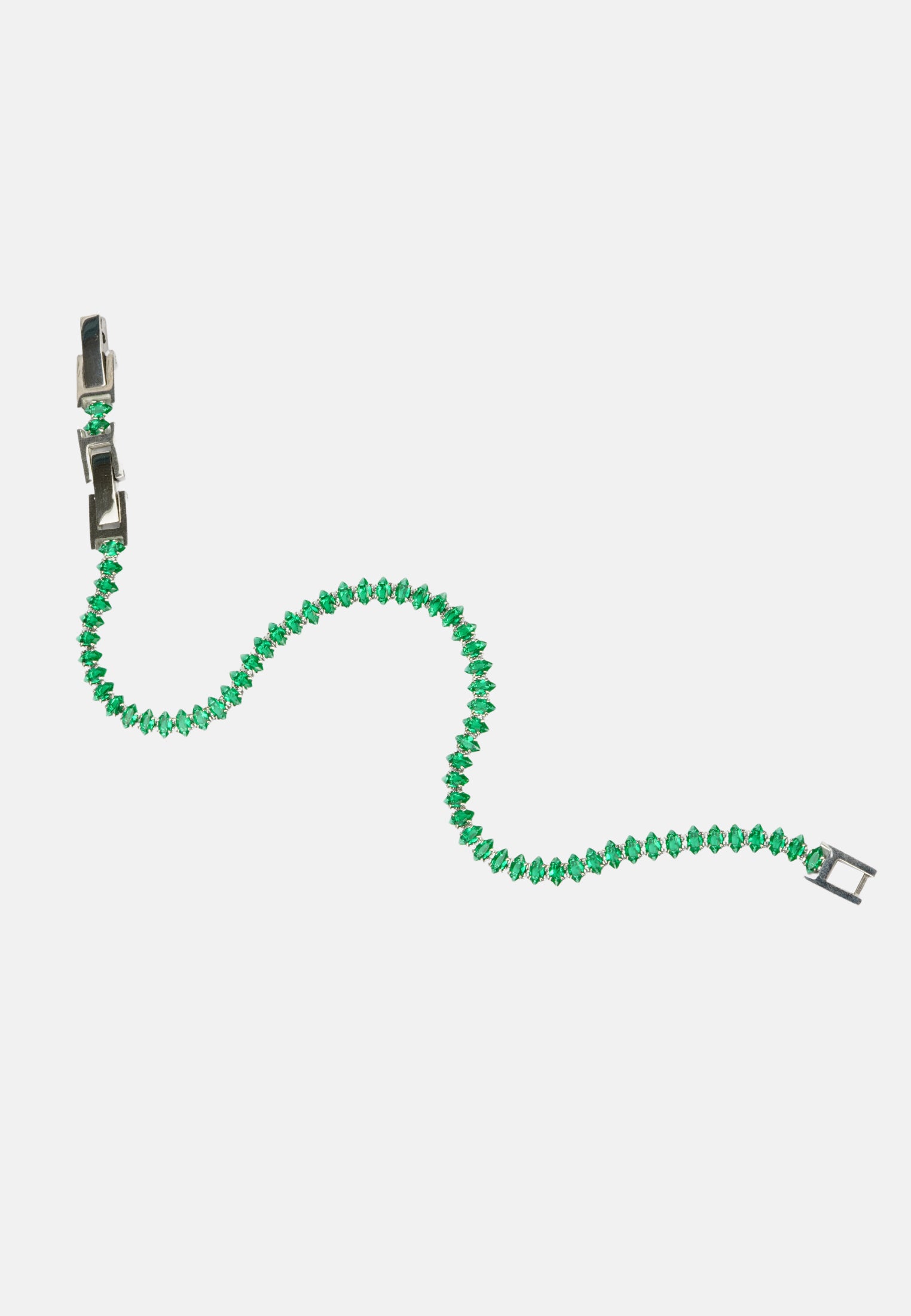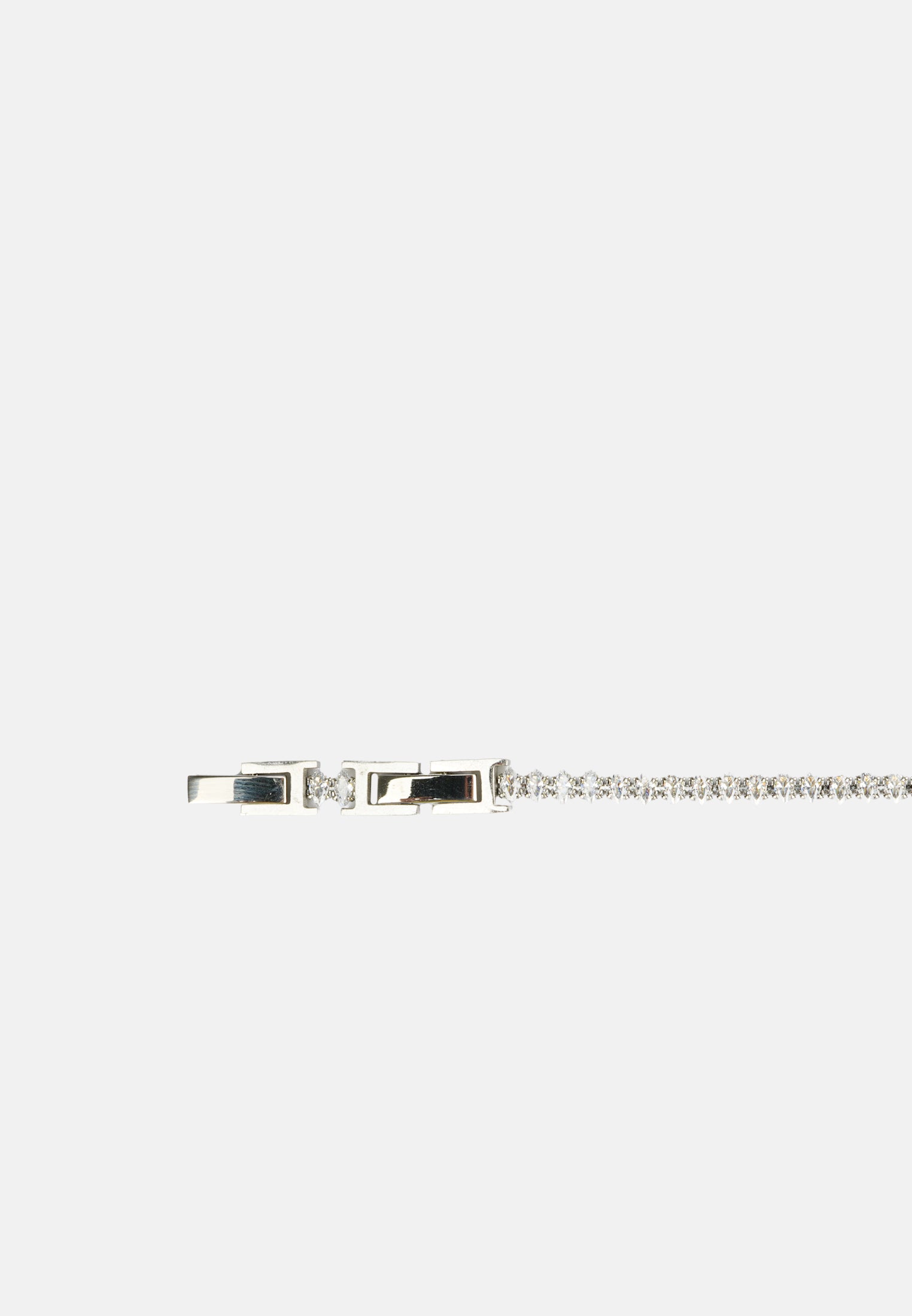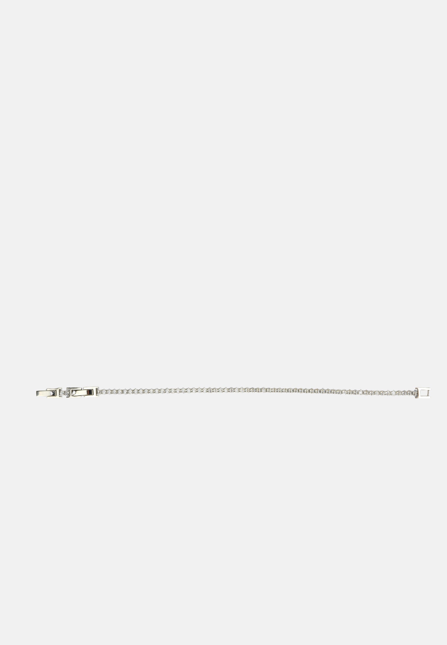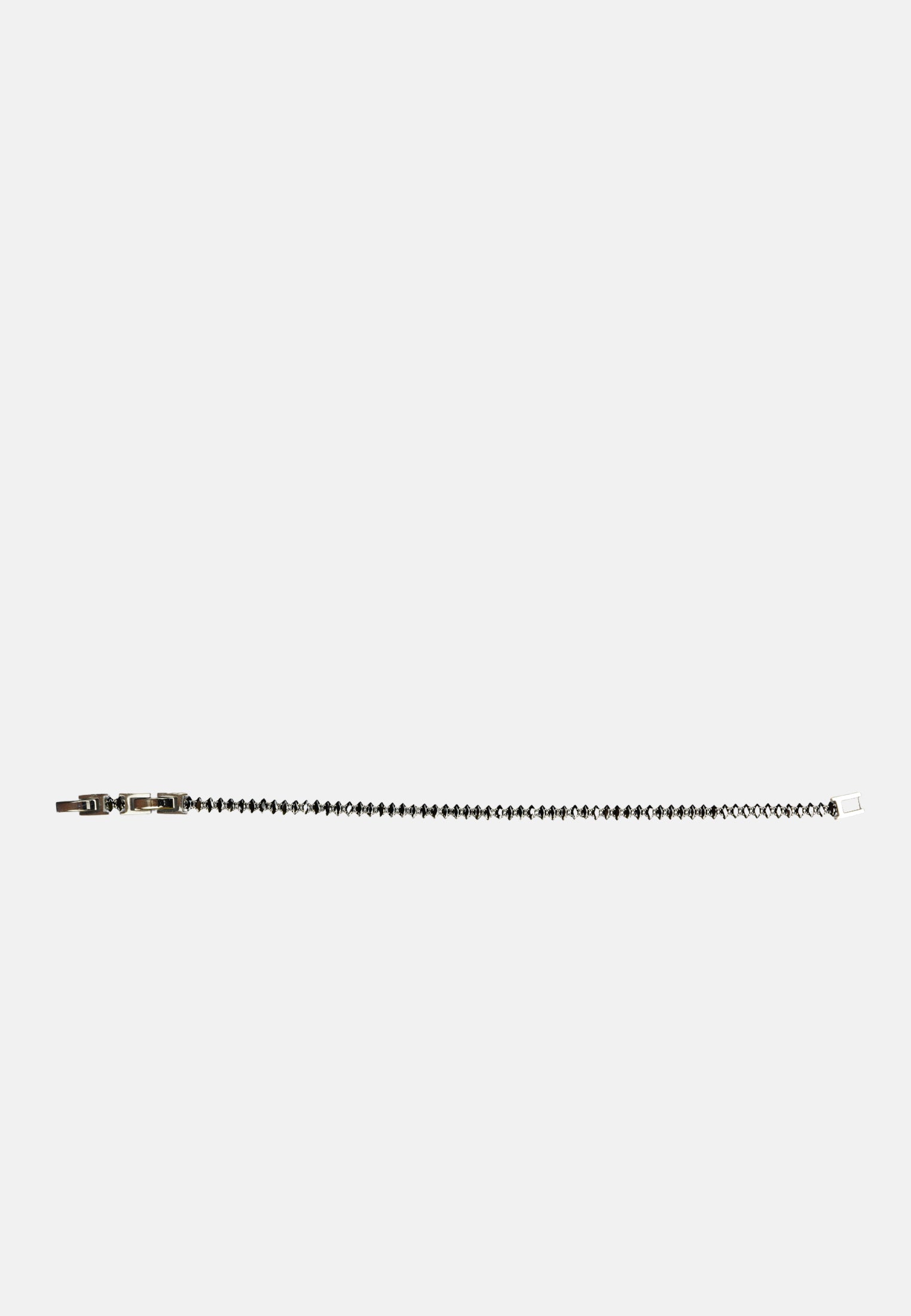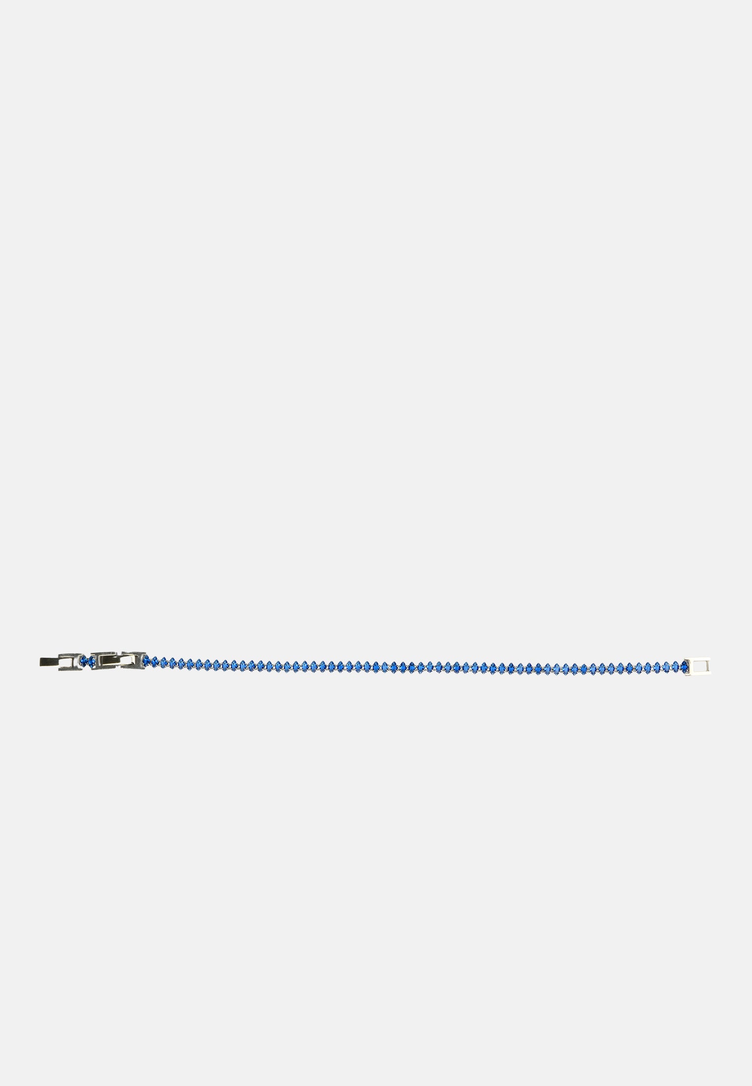Bracciale tennis sottile unisex, dalla misura regolabile. Braccialetto color argento con brillantini incastonati, disponibile in cinque colori differenti: bianco - verde - nero - rainbow - blu. Lunghezza varibile grazie alla doppia chiusura da 17 a 19 cm. Spessore del bracciale: 0,20 cm. Materiale del tennis acciaio steel e zirconi, doppia chiusura con gancio a incastro. Raffinato ed elegante, il modello tennis è l'accessorio più richiesto ed indossato di sempre sia per gli uomini che per le donne. Una perfetta idea regalo per tutte le occasioni. Il bracciale sarà consegnato in una scatolina. Per prenderti cura al meglio del tuo bracciale e preservarne l'integrità, ti invitiamo ad evitare l'uso di profumi direttamente a contatto col gioiello e l'immersione prolungata in acqua.