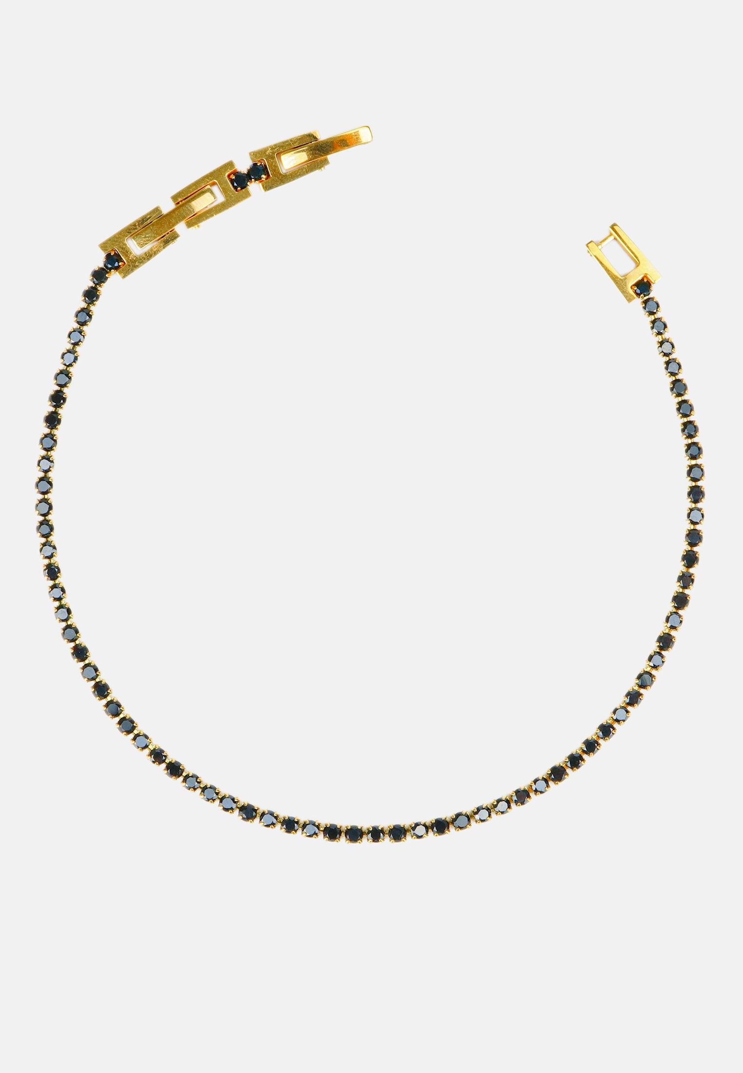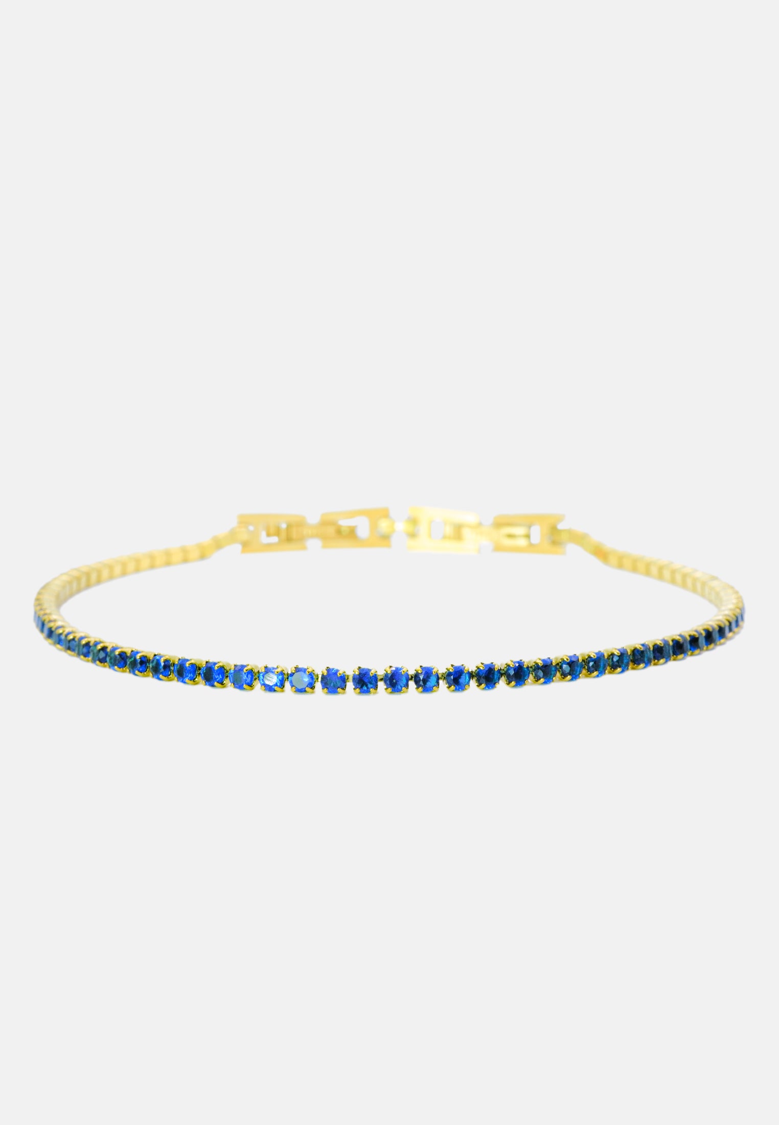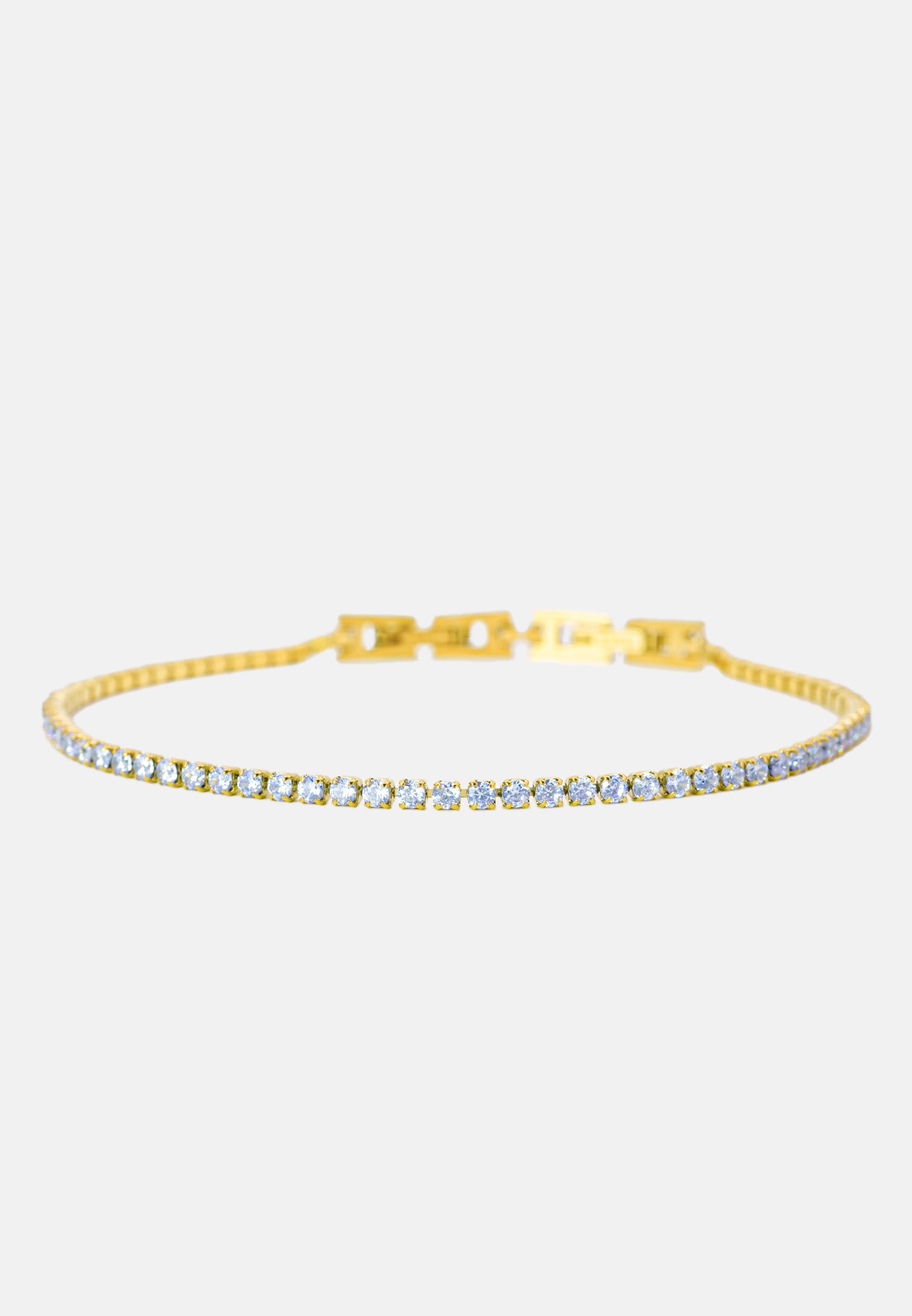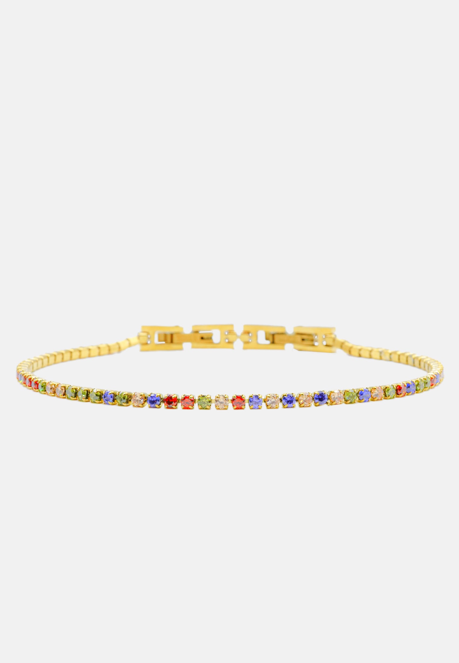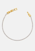 Bracciale tennis sottile unisex, dalla misura regolabile. Braccialetto color oro con brillantini incastonati, disponibile in 7 colori differenti: bianco - blu - nero - verde - rosa - rosso - rainbow. Lunghezza varibile grazie alla doppia chiusura da 17 a 19 cm. Spessore del bracciale: 0,20 cm. Materiale del tennis acciaio steel e zirconi, doppia chiusura con gancio a incastro. Raffinato ed elegante, il modello tennis è l'accessorio più richiesto ed indossato di sempre sia per gli uomini che per le donne. Una perfetta idea regalo per tutte le occasioni. Il bracciale sarà consegnato in una scatolina. Per prenderti cura al meglio del tuo bracciale e preservarne l'integrità, ti invitiamo ad evitare l'uso di profumi direttamente a contatto col gioiello e l'immersione prolungata in acqua.