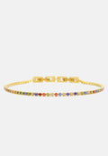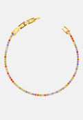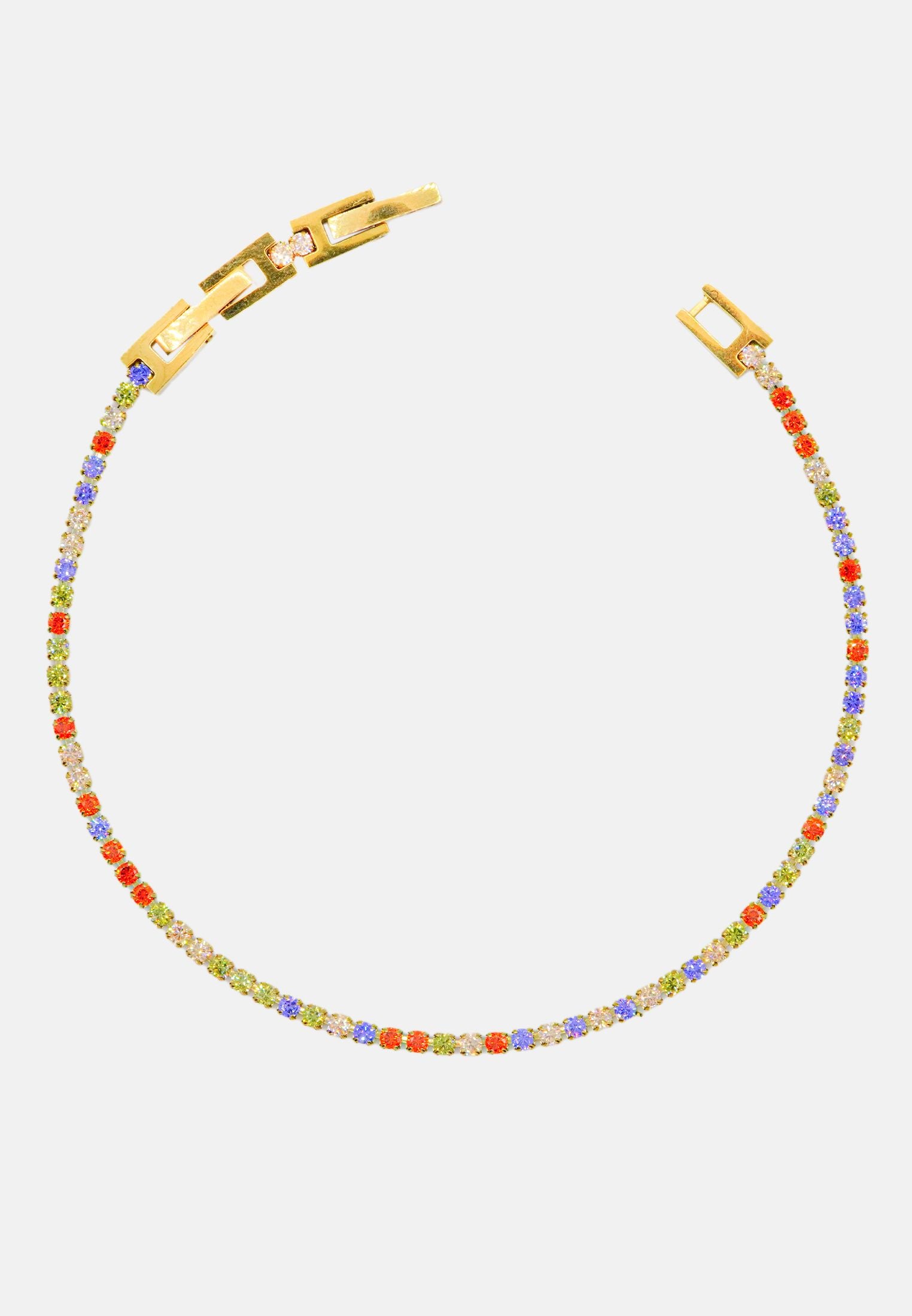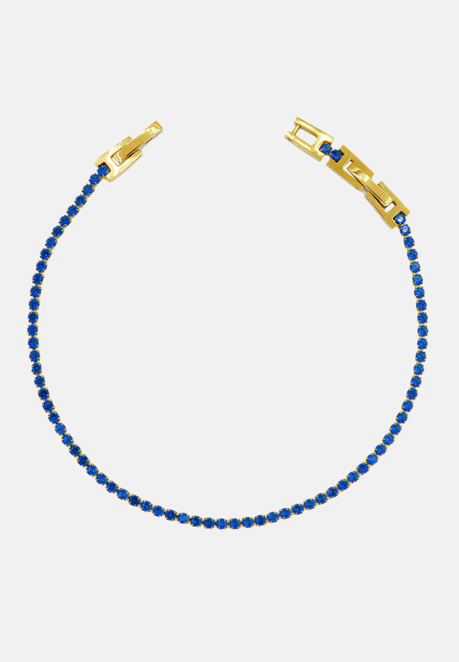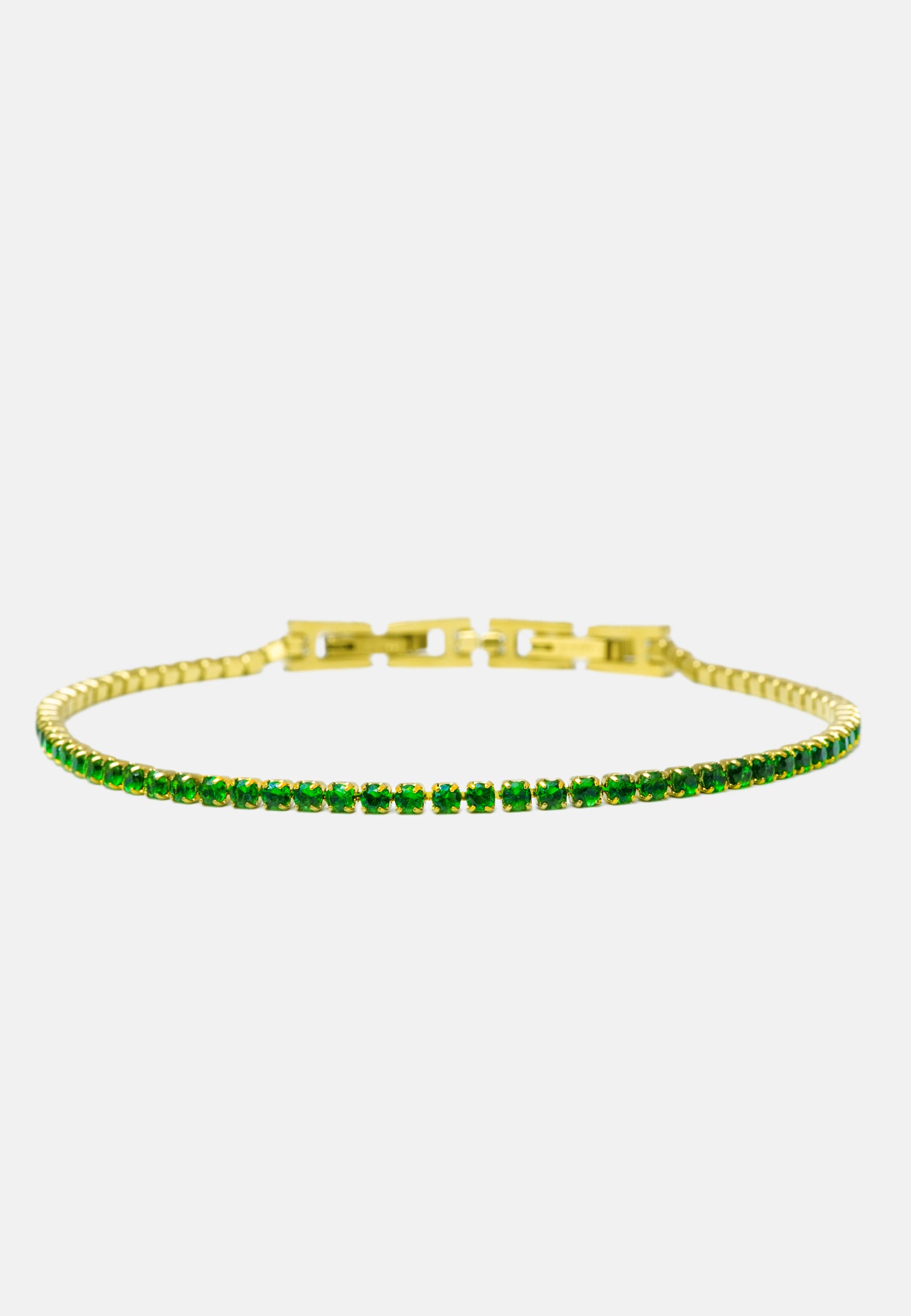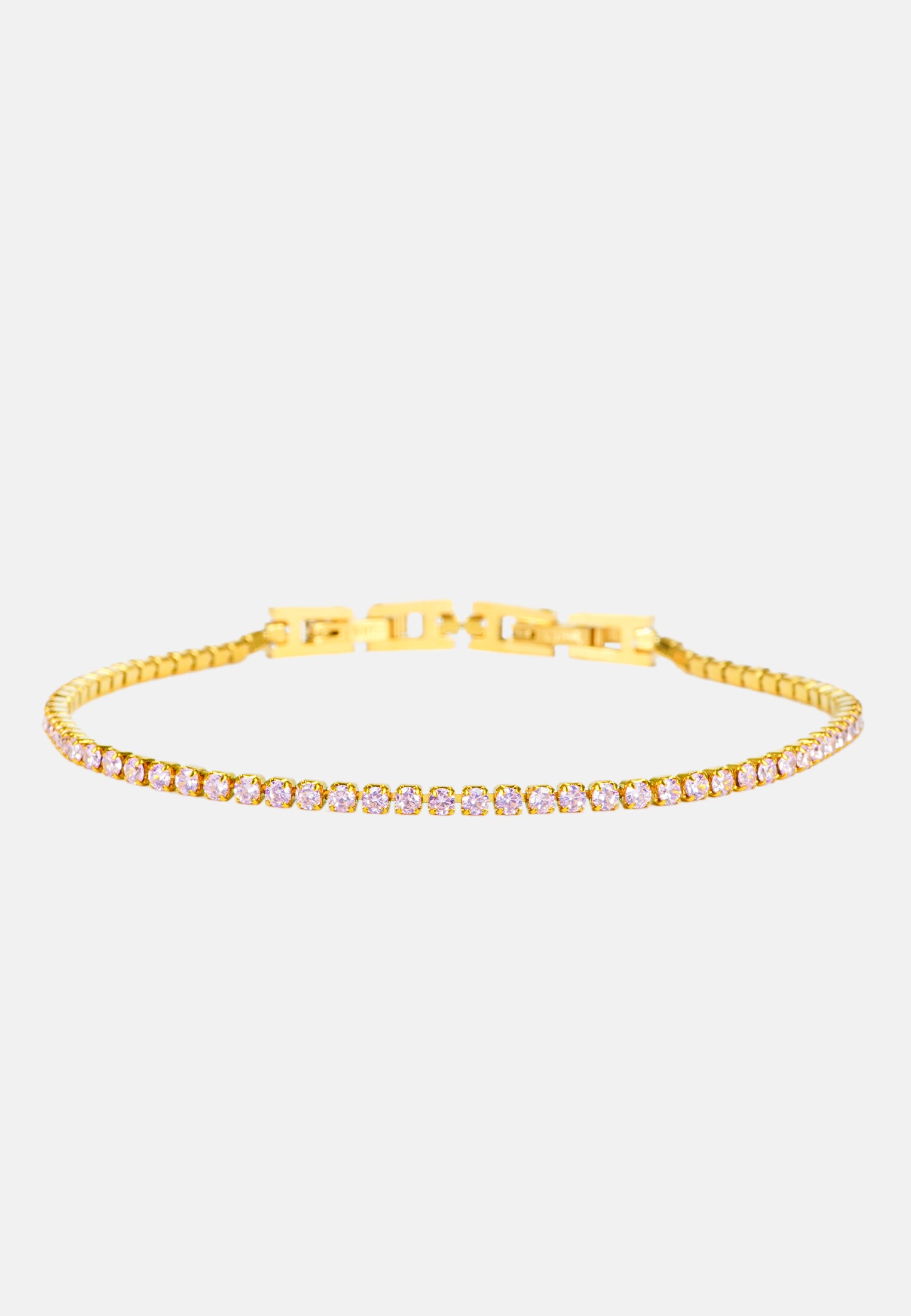 Bracciale tennis sottile unisex, dalla misura regolabile. Braccialetto color oro con brillantini incastonati, disponibile in 7 colori differenti: bianco - blu - nero - verde - rosa - rosso - rainbow. Lunghezza varibile grazie alla doppia chiusura da 17 a 19 cm. Spessore del bracciale: 0,20 cm. Materiale del tennis acciaio steel e zirconi, doppia chiusura con gancio a incastro. Raffinato ed elegante, il modello tennis è l'accessorio più richiesto ed indossato di sempre sia per gli uomini che per le donne. Una perfetta idea regalo per tutte le occasioni. Il bracciale sarà consegnato in una scatolina. Per prenderti cura al meglio del tuo bracciale e preservarne l'integrità, ti invitiamo ad evitare l'uso di profumi direttamente a contatto col gioiello e l'immersione prolungata in acqua.