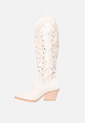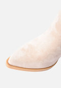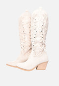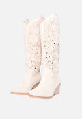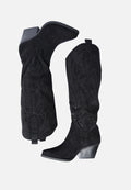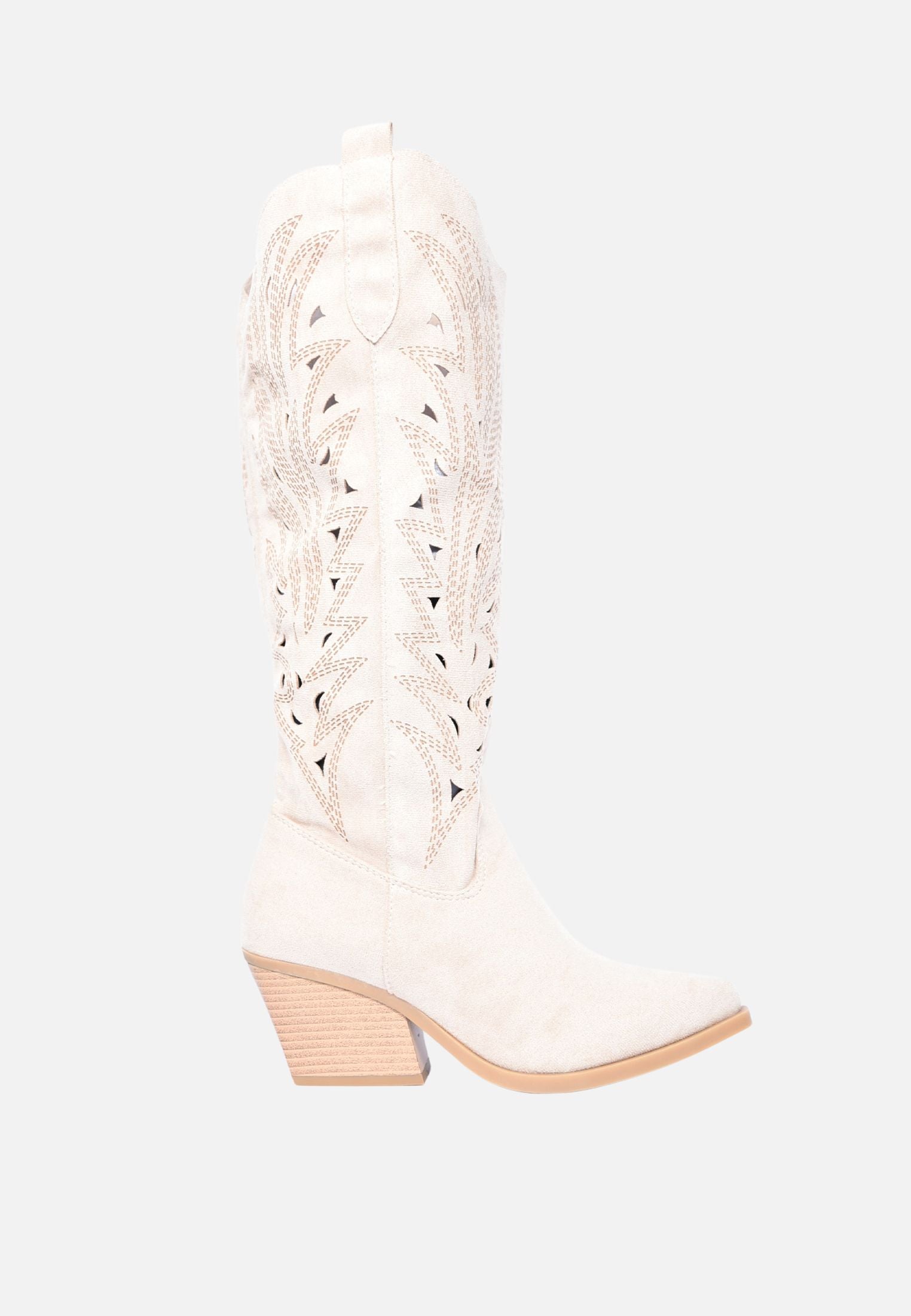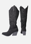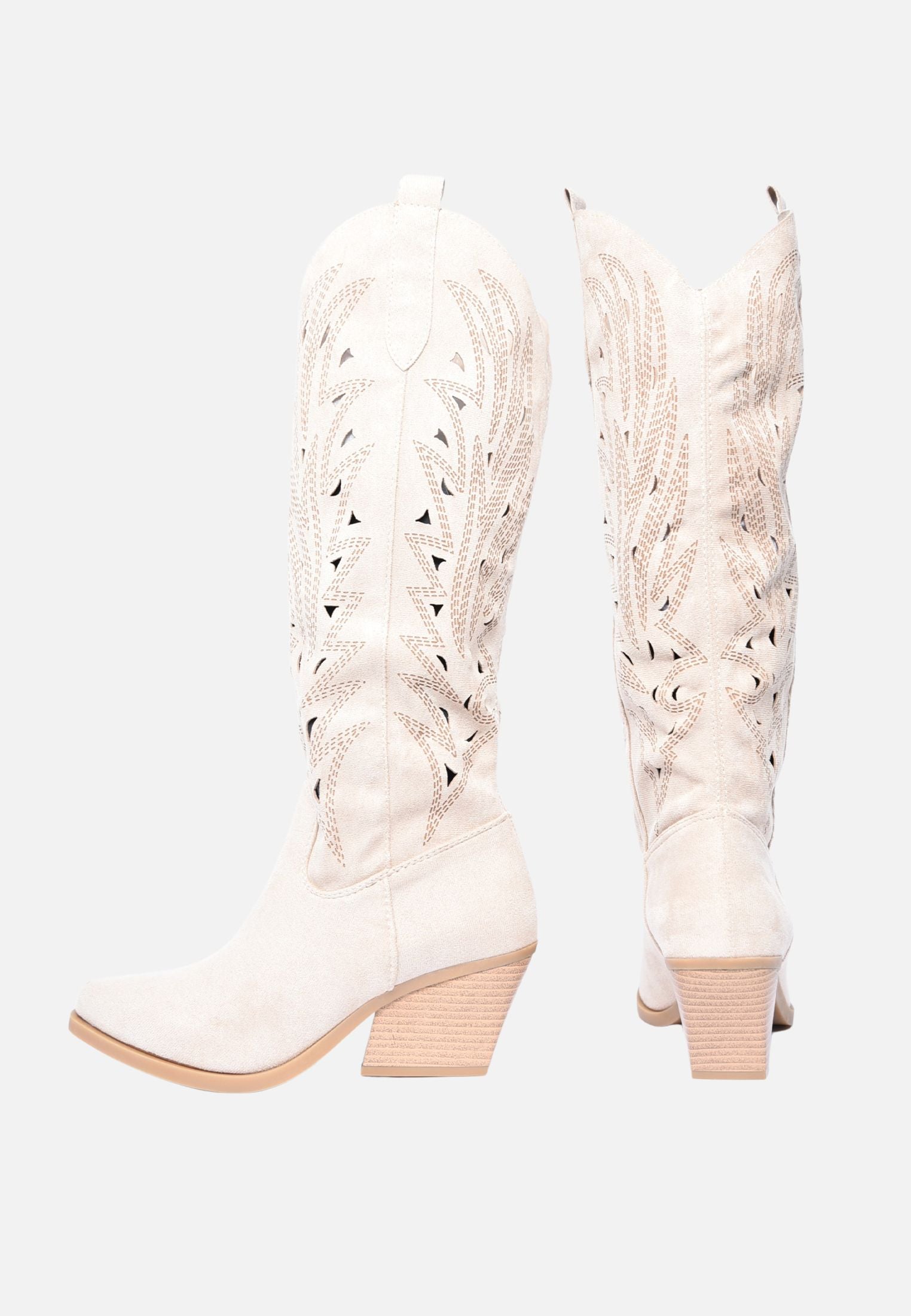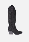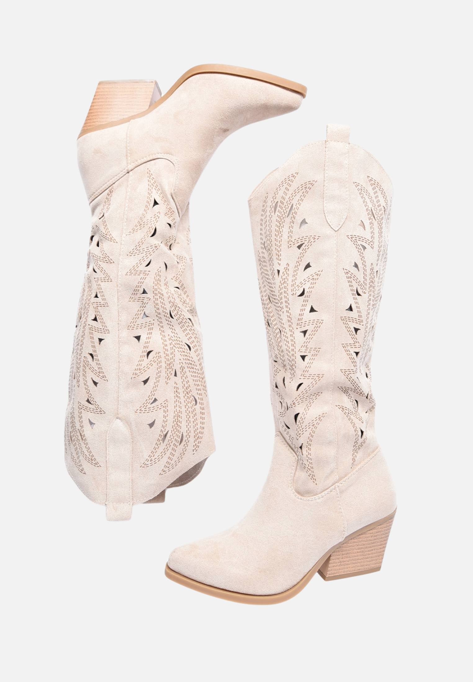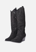 Découvrez l'élégance audacieuse du style West avec nos bottes de cowboy pour femmes, en éco-suède. Ces camperos emblématiques, conçus avec un bout effilé et un talon bloc effet bois de 6,5 cm, incarnent l'essence du style cowboy avec une touche moderne. La structure sans fermeture à enfiler garantit un ajustement rapide et facile, idéal pour la femme dynamique qui ne veut pas renoncer au style au quotidien. Avec une tige de 39 cm de haut, ces bottes affinent la silhouette et se marient parfaitement avec des jeans et des robes, offrant une polyvalence inégalée pour toutes les occasions. La semelle en caoutchouc robuste équipée d'inserts antidérapants assure stabilité et sécurité sur tous les terrains, tandis que la semelle intérieure rembourrée promet un confort durable, vous permettant de profiter de chaque pas. La tige souple et large enveloppe délicatement la jambe, assurant un ajustement optimal qui s'adapte à vous. Disponibles en noir et beige classiques, ces camperos sont le complément parfait à toute garde-robe, offrant une touche de caractère et de sophistication à vos tenues. Idéales pour les femmes de tous âges qui cherchent à exprimer leur personnalité à travers leur choix de chaussures, ces bottes de cowboy en daim sont la fusion parfaite entre mode, fonctionnalité et confort. Avec des tailles disponibles du 36 au 41 et une coupe régulière.