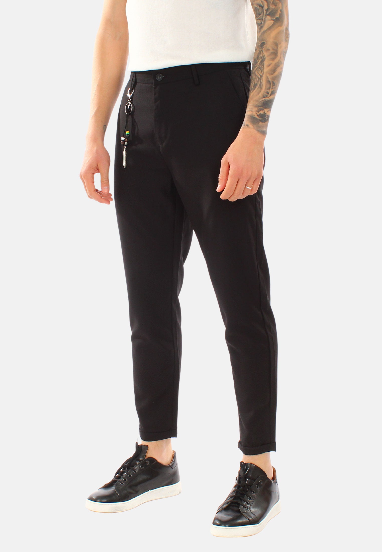 Pantalon homme style capri à poches américaines avec revers à la cheville. Pantalon à poches america printemps été en tissu légèrement stretch. Fabriqué en 69% polyester 29% viscose 2% élasthanne. Disponible en gris et noir. Pratiques et confortables, ils donnent un look sportif classique idéal pour de multiples occasions.