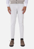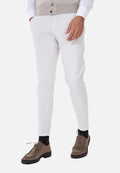 Pantalon homme chaud en coton avec poches italiennes disponible dans les couleurs : bleu - gris - blanc - beige - noir - vert - vert militaire - bordeaux - marron. Fermeture boutonnée avec taille allongée et fermeture éclair, poches arrière avec double passepoil et bouton. Pantalon chino d'hiver ajusté avec revers. Modèle Capri, longueur cheville. Excellente qualité et finition, ce pantalon est fabriqué en Italie, avec une attention aux moindres détails. Convient pour un look élégant ou classique-sportif. Coupe ajustée.