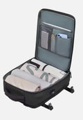 L'ouverture principale du sac à dos se déplie à 180°, à la manière d'une valise, vous permettant d'organiser facilement vos vêtements et accessoires. À l'intérieur, quatre poches stratégiquement placées, dont une avec fermeture éclair, offrent des espaces séparés pour les petits objets essentiels, gardant tout bien rangé et facilement accessible. Le sac à dos comporte un autre compartiment zippé étanche, spécialement conçu pour contenir des vêtements ou des produits de beauté humides, évitant ainsi que le reste du contenu ne soit mouillé.