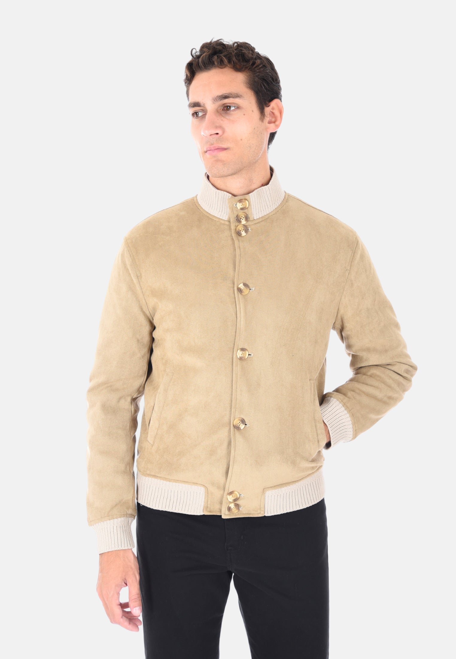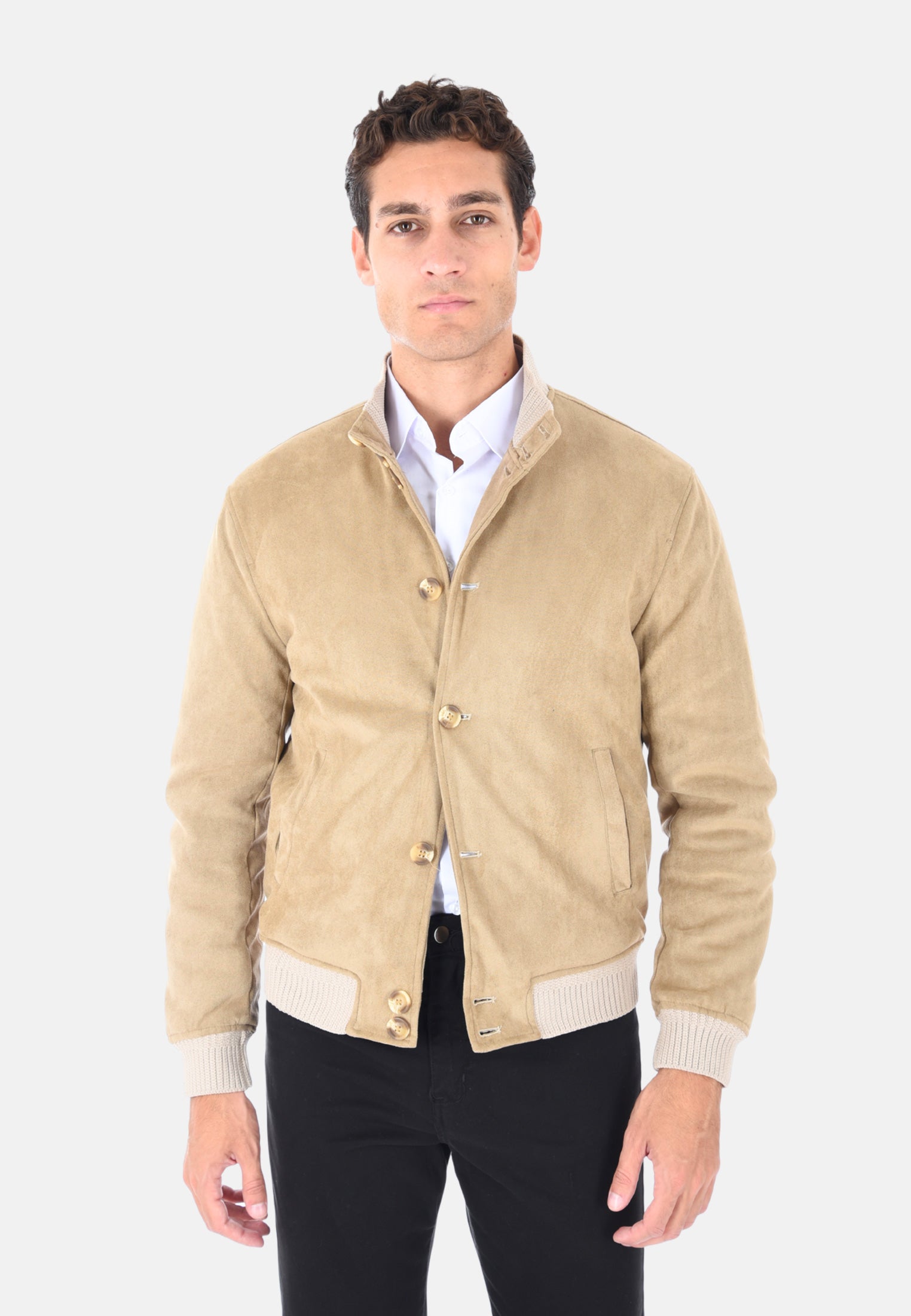 Questo giubbotto bomber da uomo è un capo iconico rivisitato in chiave sofisticata, ideale per affrontare con carattere la stagione fredda. Realizzato in 100% poliestere effetto camoscio. Giubbotto vestibilità Slim fit: taglio moderno che valorizza la figura senza rinunciare al comfort. Collo alto, polsini e fondo in maglia a coste: assicurano una vestibilità aderente e protezione dal freddo. Chiusura con bottoni frontali: stile retrò, praticità contemporanea. Due tasche laterali e un taschino interno: funzionali e discrete per custodire l’essenziale. Foderato internamente per offrire maggiore isolamento termico. Bomber disponibile in due colori: Nero e Beige. Taglie disponibili: dalla S alla 2XL. Il modello in foto è alto 1,90 m e indossa la taglia L, per offrire un chiaro riferimento sulla vestibilità. Lavare a mano – non utilizzare l’asciugatrice per mantenere intatta la qualità del tessuto.