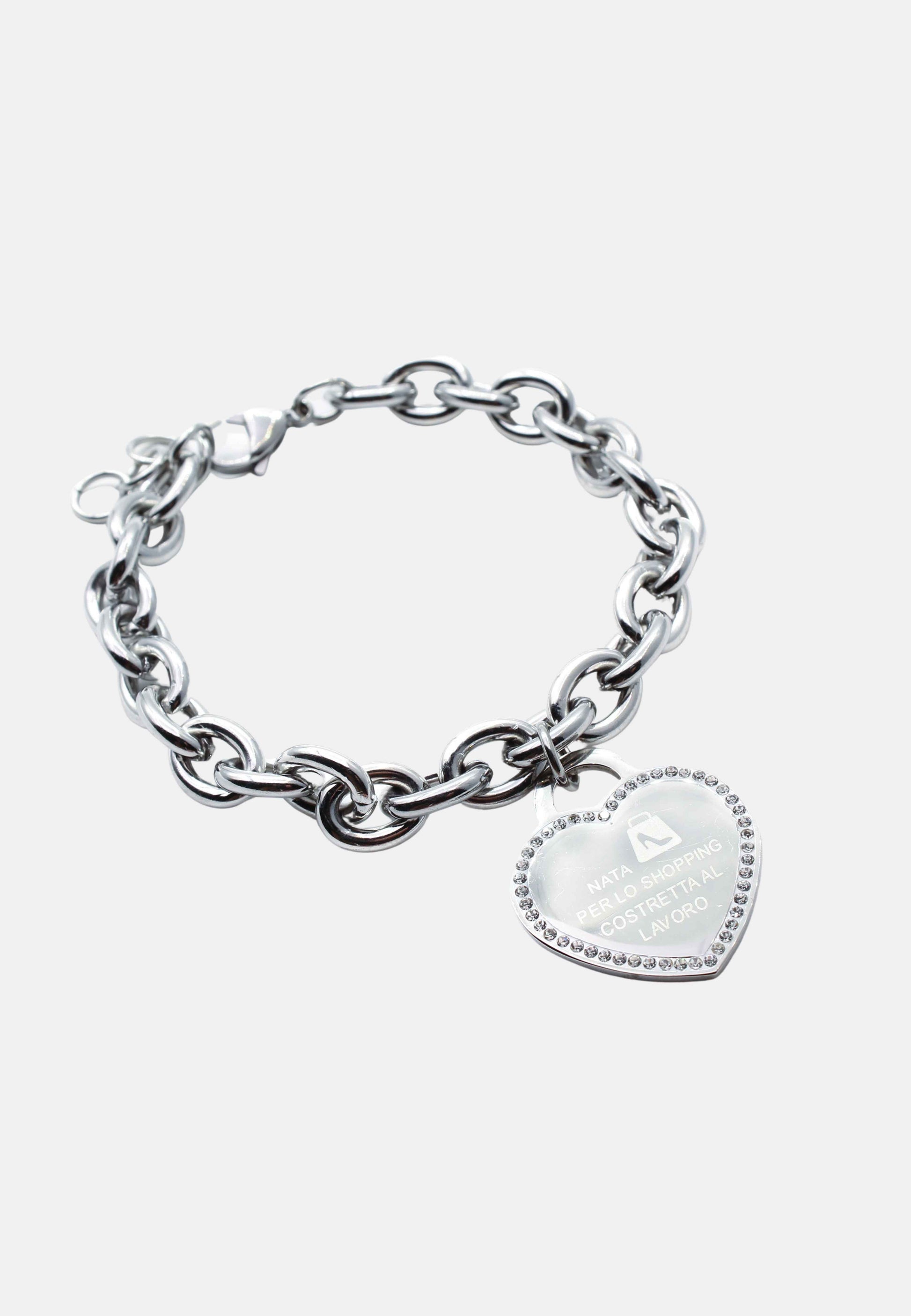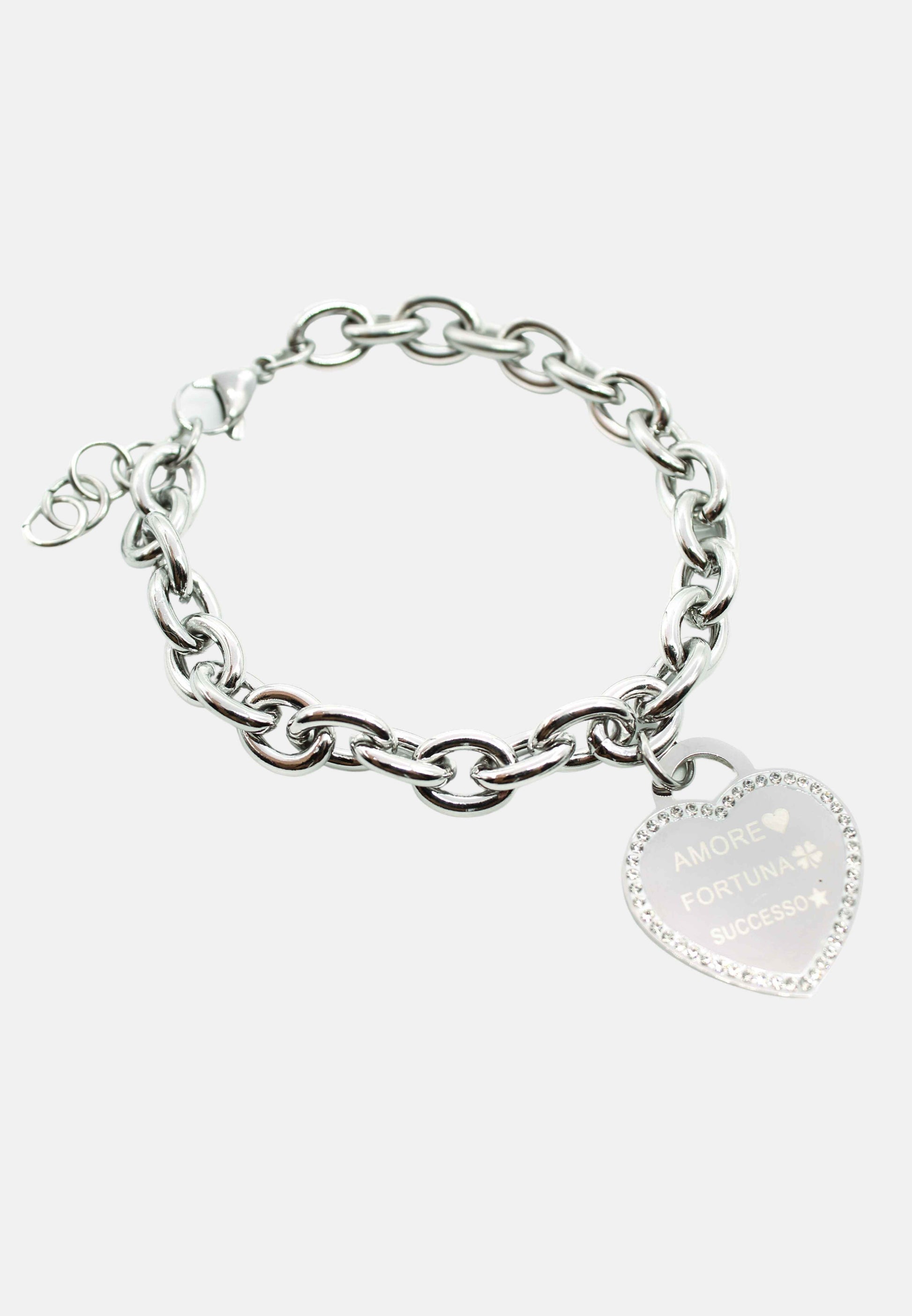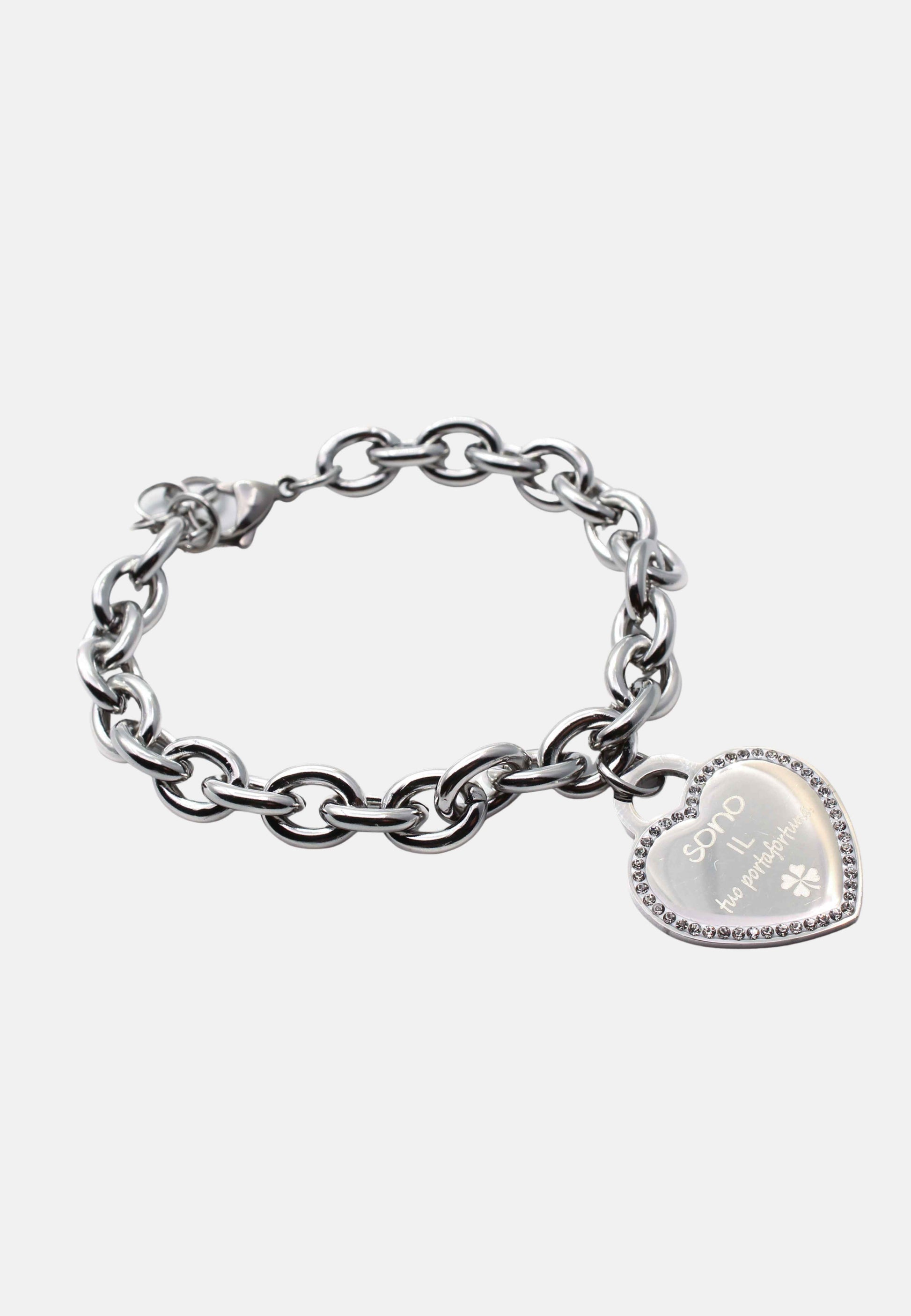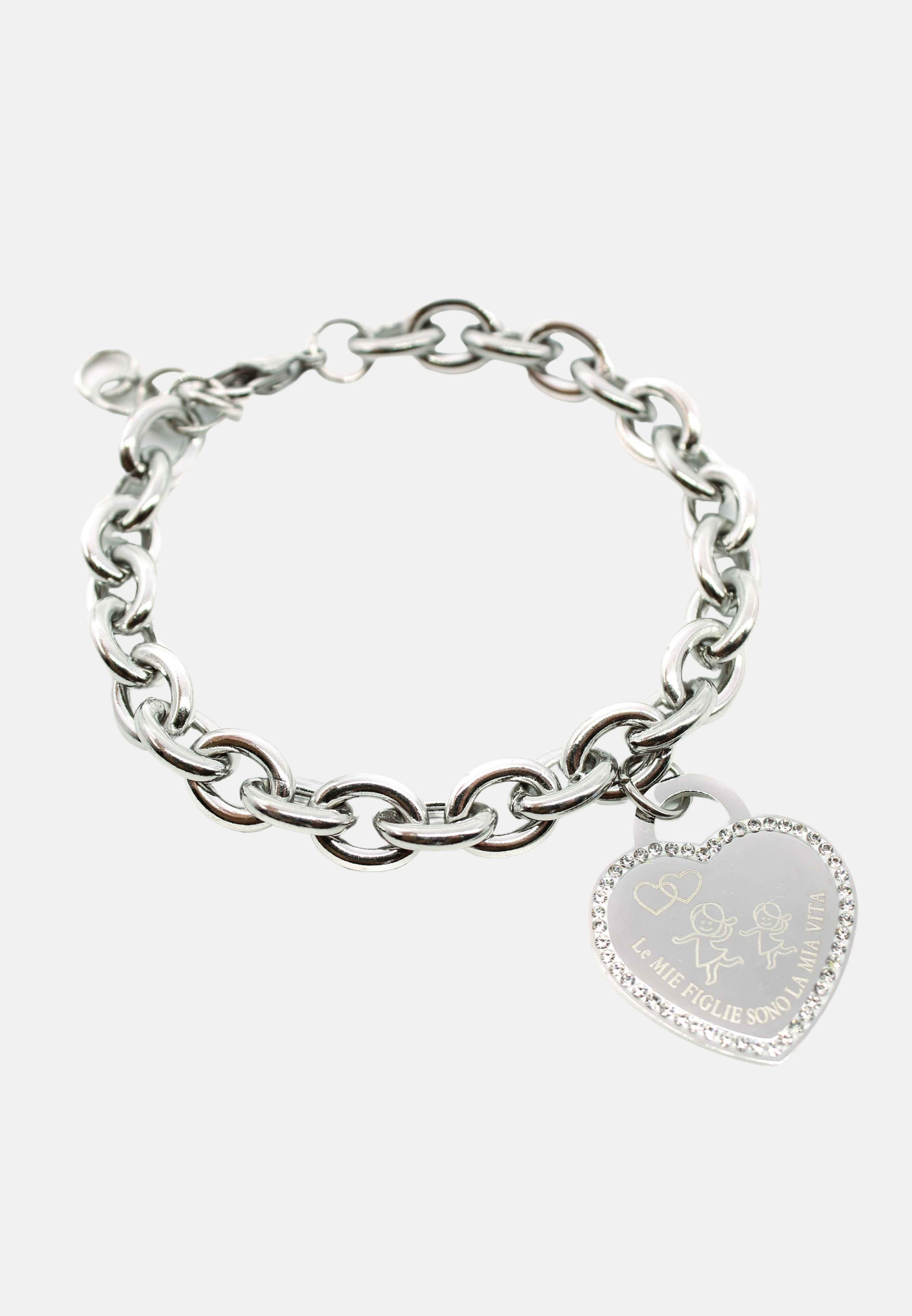 Bracciale da donna con cuore e frase incisa. Braccialetto da regalo con charms a cuore e frase incisa in acciaio. Bracciale a catena con cuore e brillantini. Bracciale ideale da regalare ad un'amica con pensieri, frasi, parole.. per anniversario compreanno nascita. Idea regalo San Valentino. Consegnato con confezione regalo. Chiusura a moschettone con estensione regolabile. Lunghezza Bracciale (da capo a coda) 21 cm (inclusa estensione). Grandezza cuore 3x3 cm