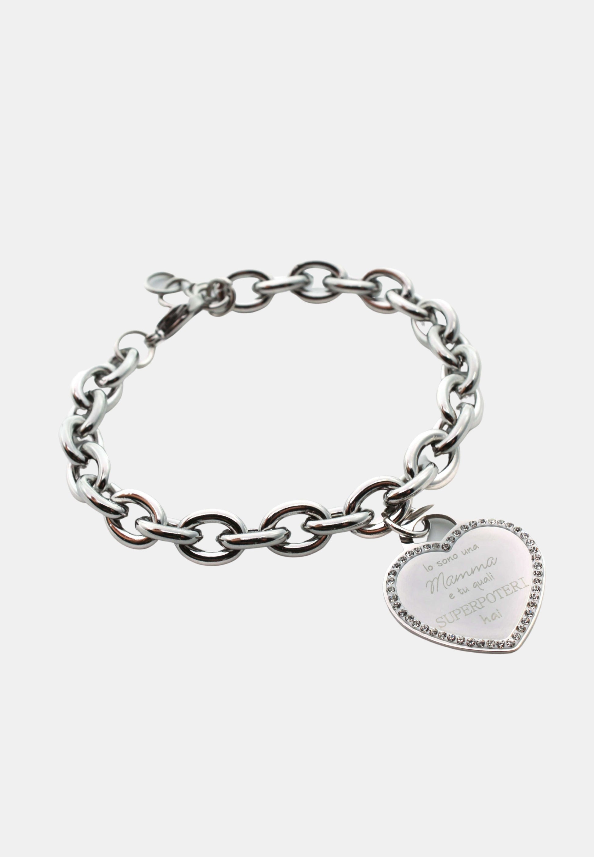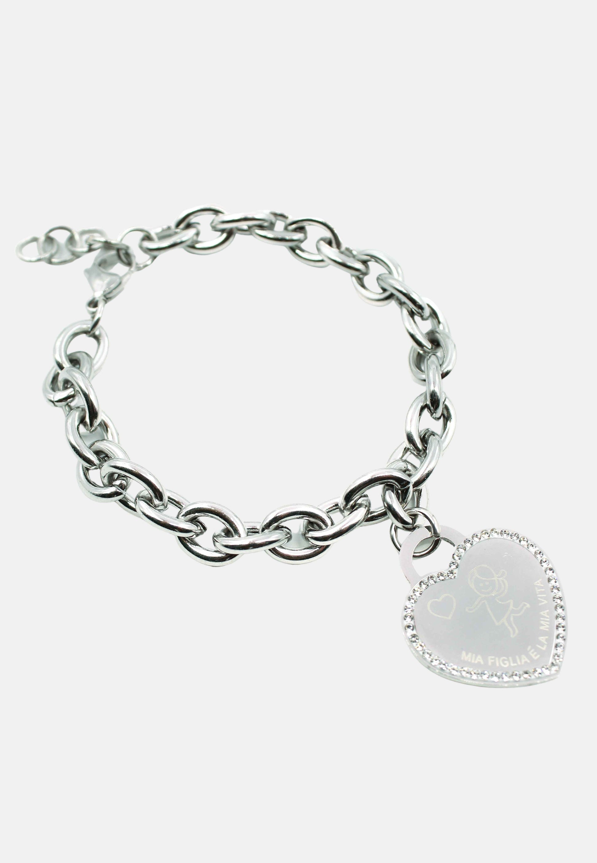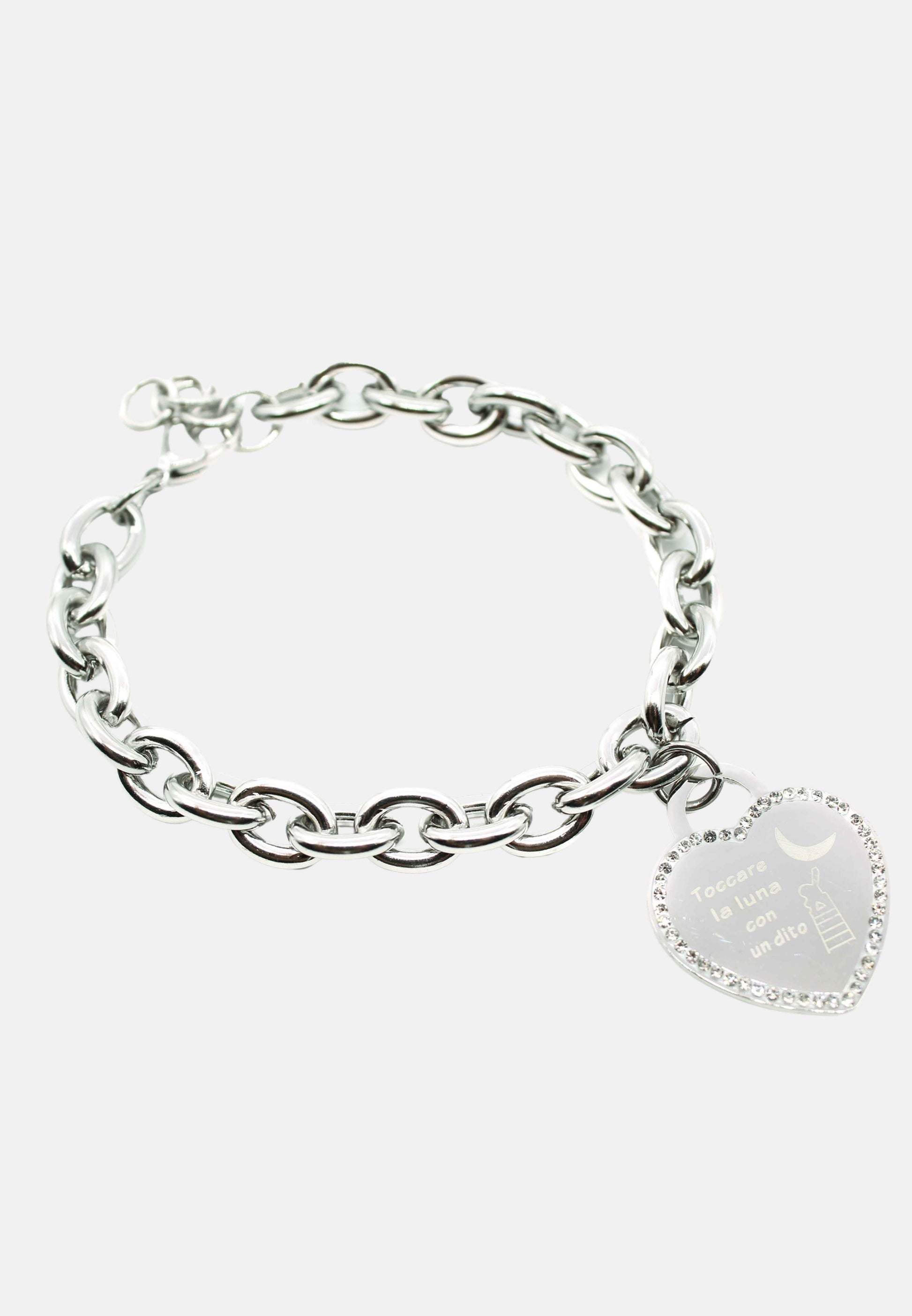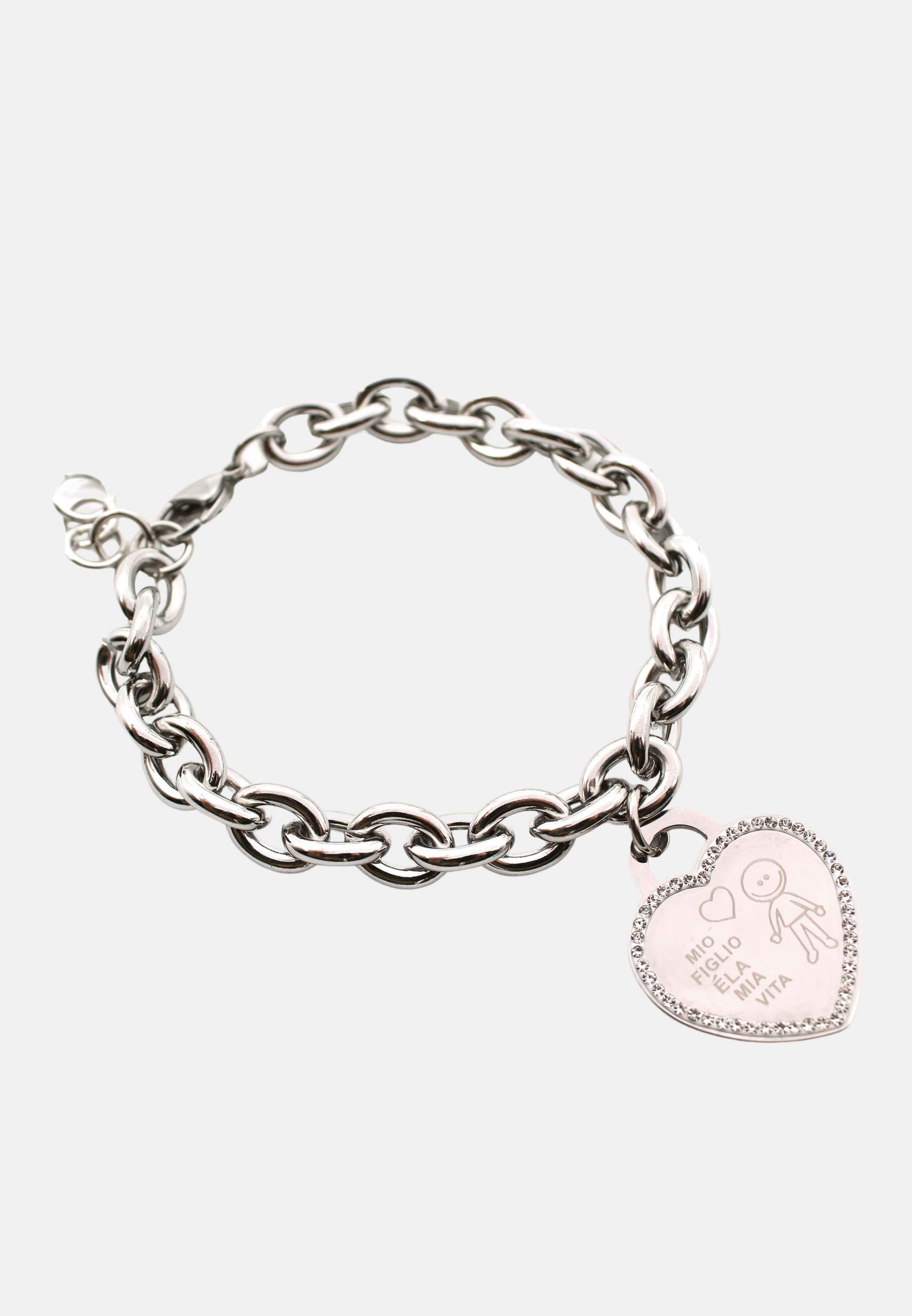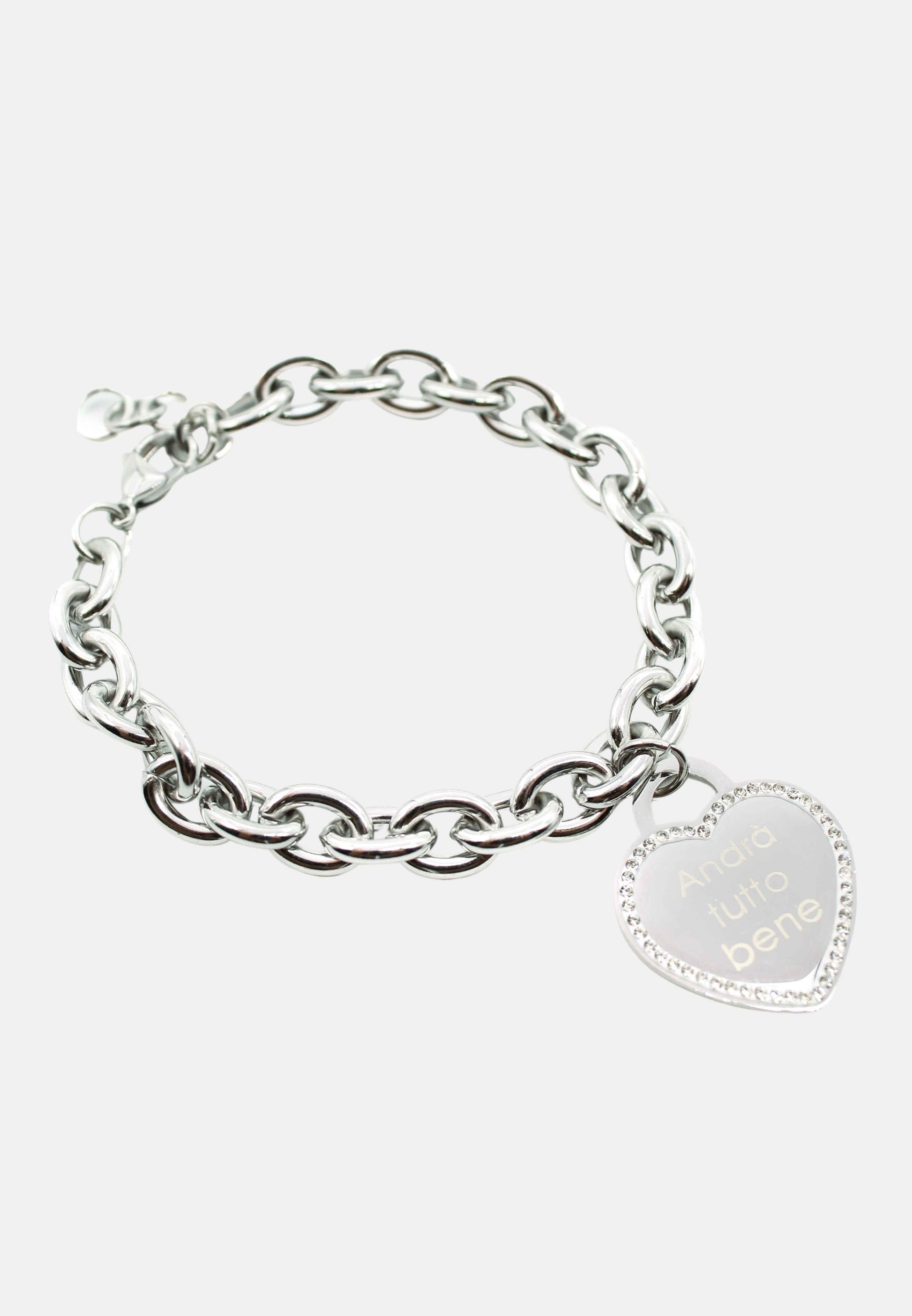 Bracciale da donna con cuore e frase incisa. Braccialetto da regalo con charms a cuore e frase incisa in acciaio. Bracciale a catena con cuore e brillantini. Bracciale ideale da regalare ad un'amica con pensieri, frasi, parole.. per anniversario compreanno nascita. Idea regalo San Valentino. Consegnato con confezione regalo. Chiusura a moschettone con estensione regolabile. Lunghezza Bracciale (da capo a coda) 21 cm (inclusa estensione). Grandezza cuore 3x3 cm