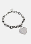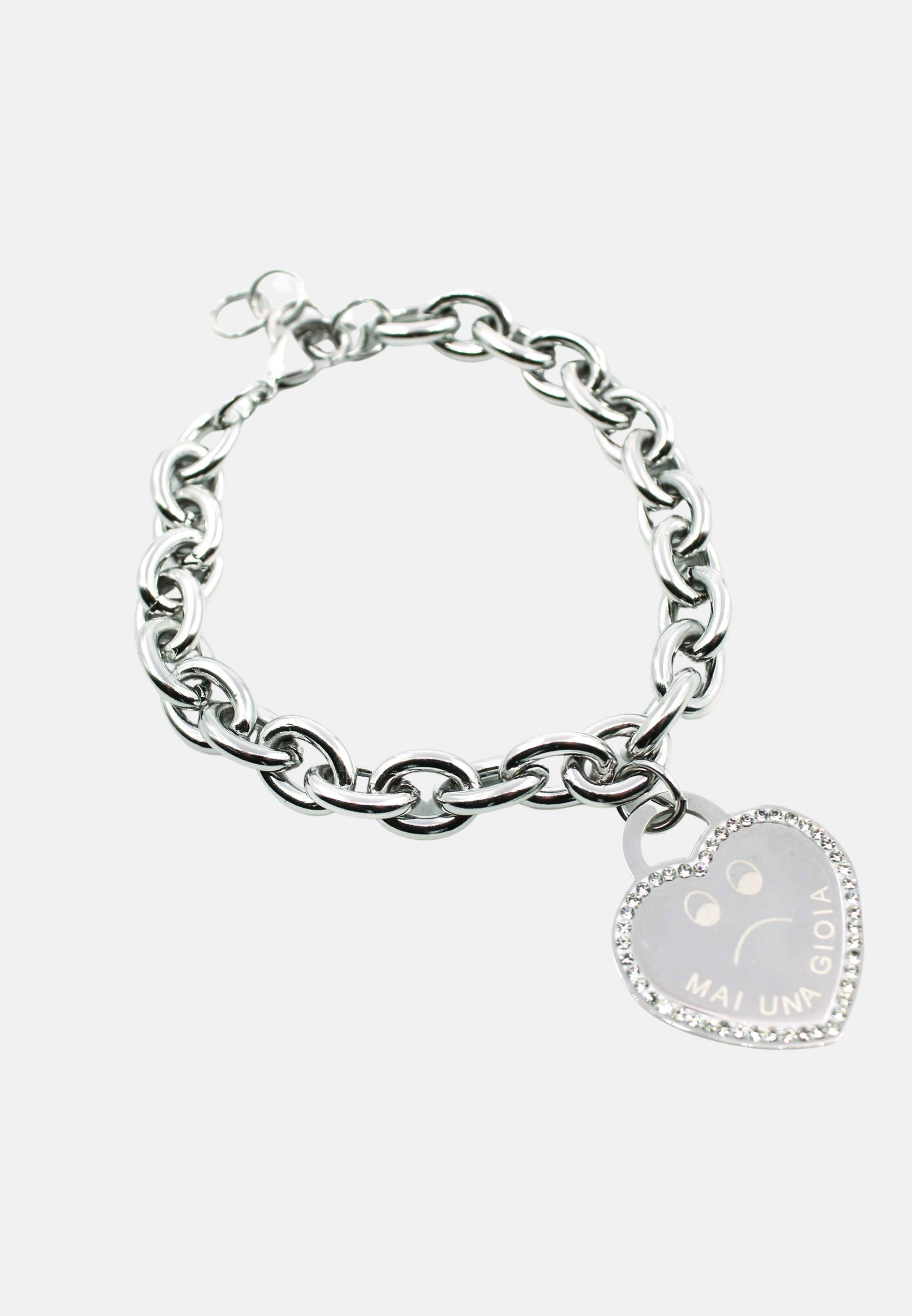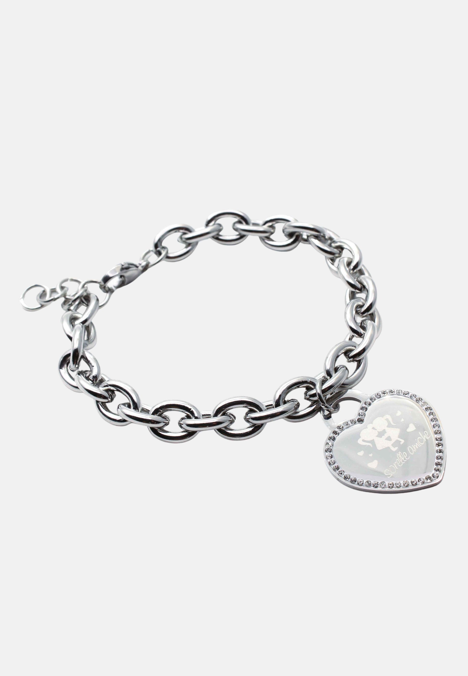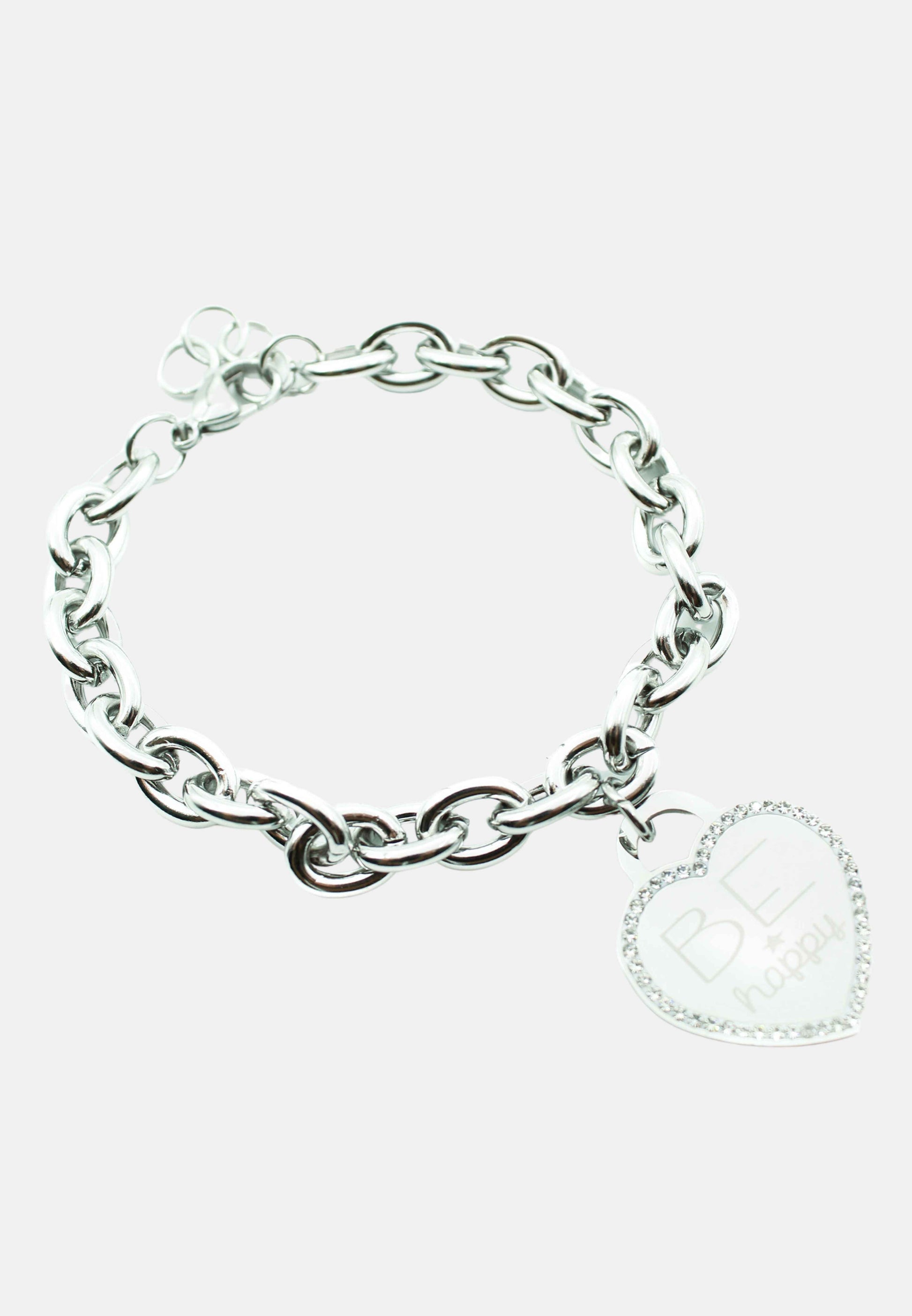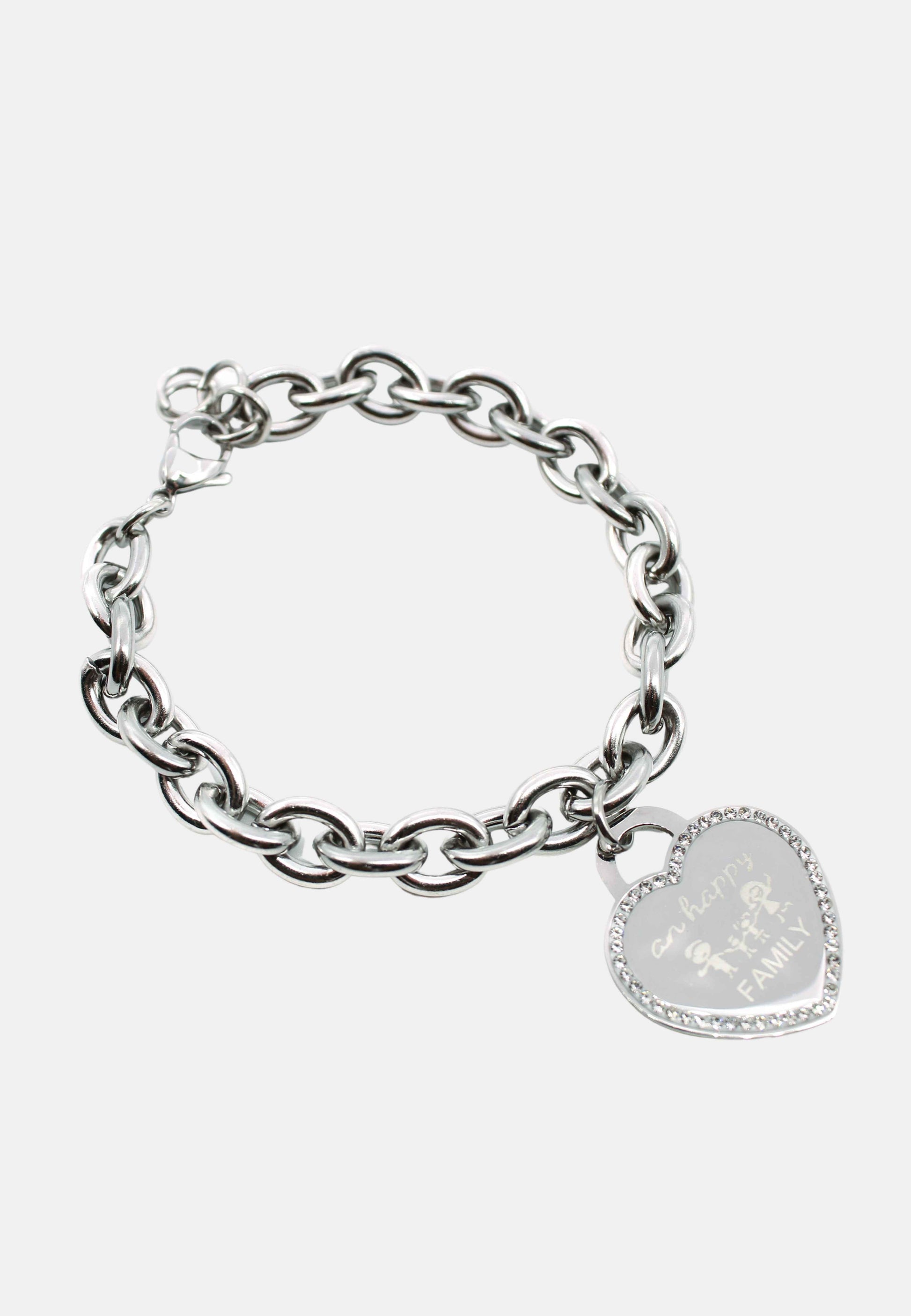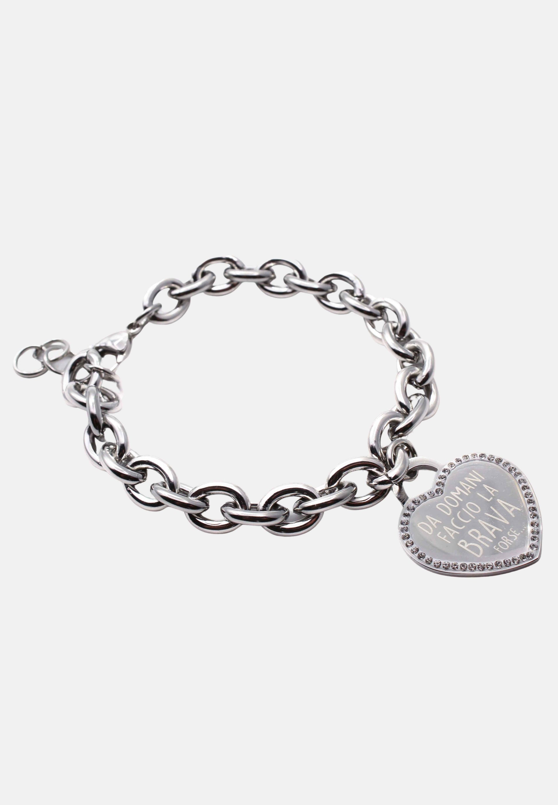 Bracciale da donna con cuore e frase incisa. Braccialetto da regalo con charms a cuore e frase incisa in acciaio. Bracciale a catena con cuore e brillantini. Bracciale ideale da regalare ad un'amica con pensieri, frasi, parole.. per anniversario compreanno nascita. Idea regalo San Valentino. Consegnato con confezione regalo. Chiusura a moschettone con estensione regolabile. Lunghezza Bracciale (da capo a coda) 21 cm (inclusa estensione). Grandezza cuore 3x3 cm