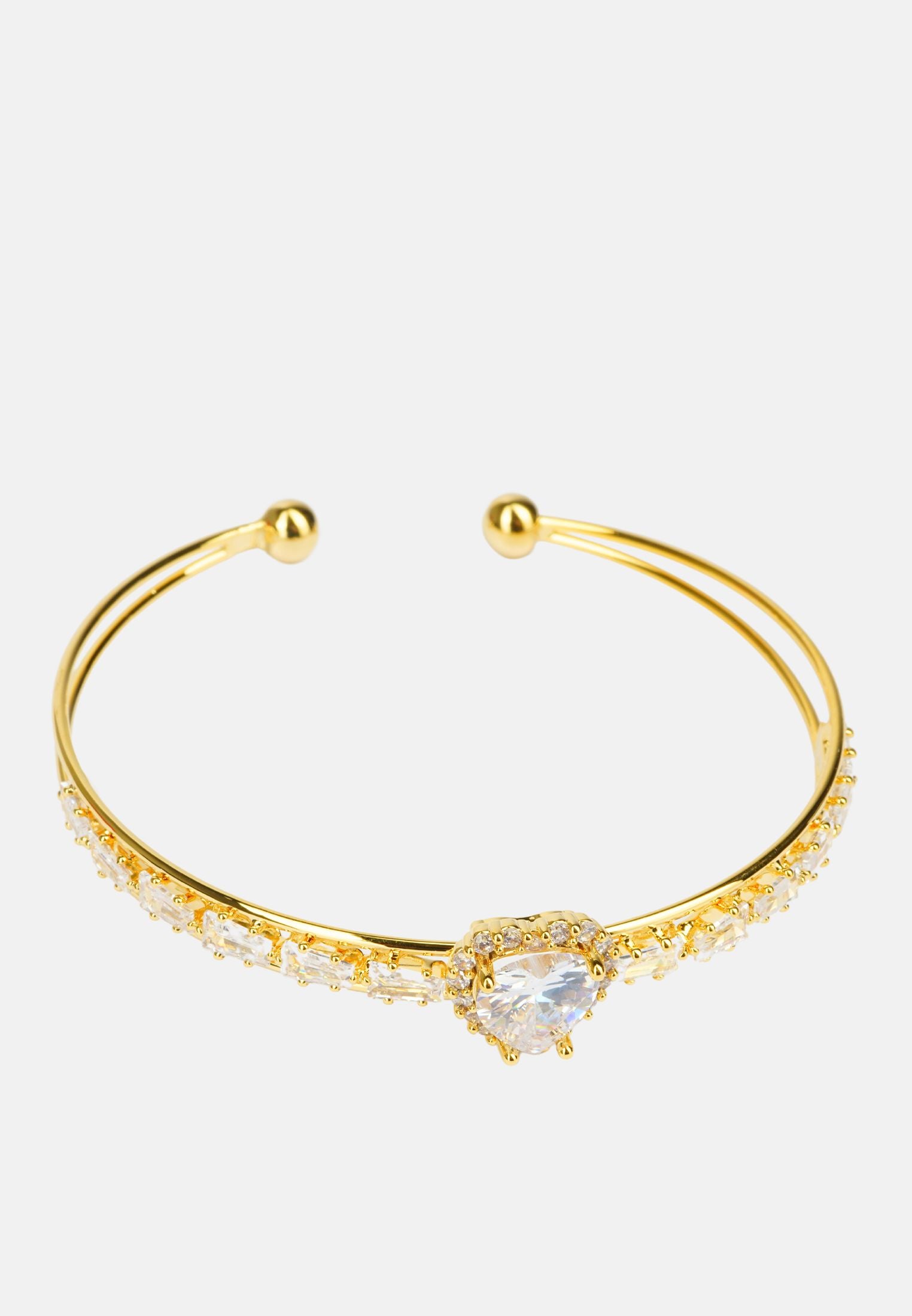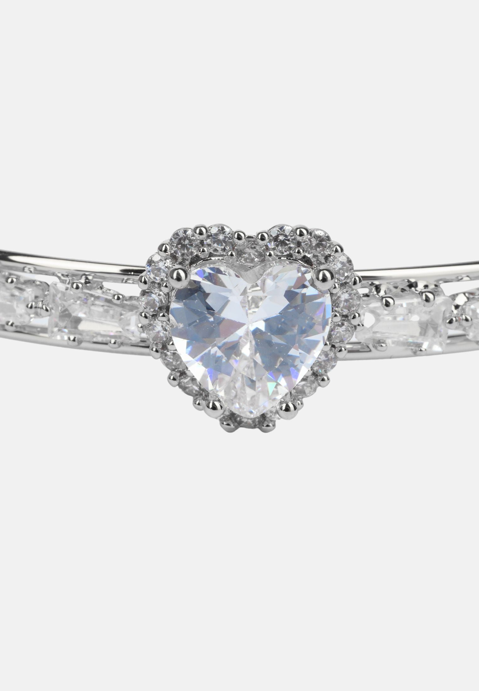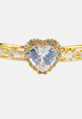 Bracciale donna rigido con diamante a forma di cuore centrale e diamantini laterali. Questo braccialetto è un vero gioiello che cattura l'attenzione e impreziosisce il tuo polso. Il cuore centrale, incastonato con un diamante scintillante, è il punto focale del bracciale. I diamantini laterali aggiungono un tocco di luce e brillantezza, accentuando ulteriormente la bellezza del cuore. Il design rigido del braccialetto conferisce un aspetto moderno e sofisticato. Senza chiusure, è regolabile per adattarsi comodamente al tuo polso. Scegli tra le opzioni di colore oro o argento per trovare quella che meglio si abbina al tuo stile e alle tue preferenze personali. Entrambe le varianti offrono un tocco di lusso e raffinatezza al tuo look. Il braccialetto è realizzato in ottone e i brillantini in strass .Sia che tu lo indossi per un'occasione speciale o per arricchire il tuo look quotidiano, questo braccialetto sarà il tuo compagno di stile perfetto.