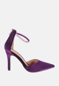 Décolleté donna viola in camoscio con cinturino strass, una scarpa raffinata e femminile pensata per valorizzare ogni look con un tocco glamour. Queste décolleté viola da donna sono perfette per cerimonie, eventi serali, feste o occasioni speciali in cui eleganza e stile fanno la differenza. Realizzate in camoscio viola, morbido e vellutato al tatto, presentano una linea slanciata con punta affusolata che dona eleganza al piede. Il cinturino alla caviglia con strass luminosi impreziosisce la scarpa, aggiungendo un dettaglio sofisticato e scenografico, oltre a garantire una calzata stabile e sicura. Il tacco a spillo da 9 cm slancia la silhouette mantenendo una buona stabilità, mentre la suola in gomma antiscivolo assicura maggiore sicurezza durante la camminata. Nonostante il design elegante, queste décolleté con tacco alto risultano comode e adatte anche a un utilizzo prolungato. Disponibili nelle taglie dal 36 al 41, queste scarpe décolleté donna sono ideali da abbinare ad abiti eleganti, tailleur, gonne o outfit da sera, diventando un vero must-have nel guardaroba femminile. La scelta perfetta per chi cerca décolleté eleganti da donna, con tacco a spillo, design raffinato e dettagli luminosi capaci di catturare lo sguardo.