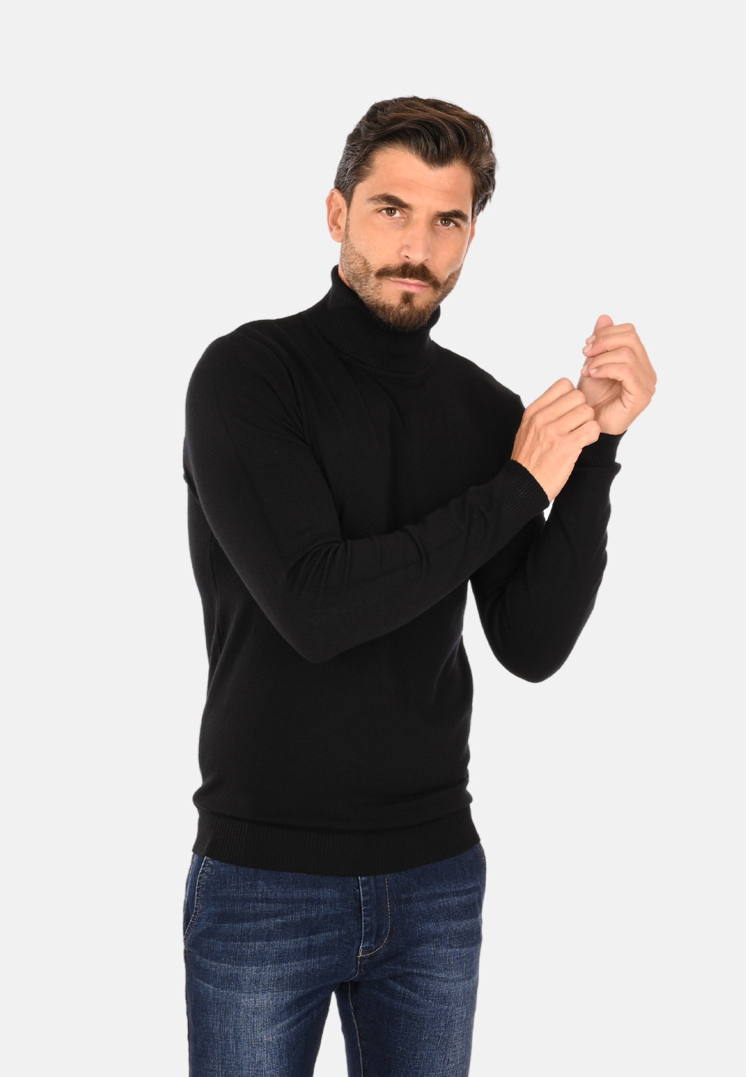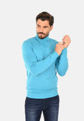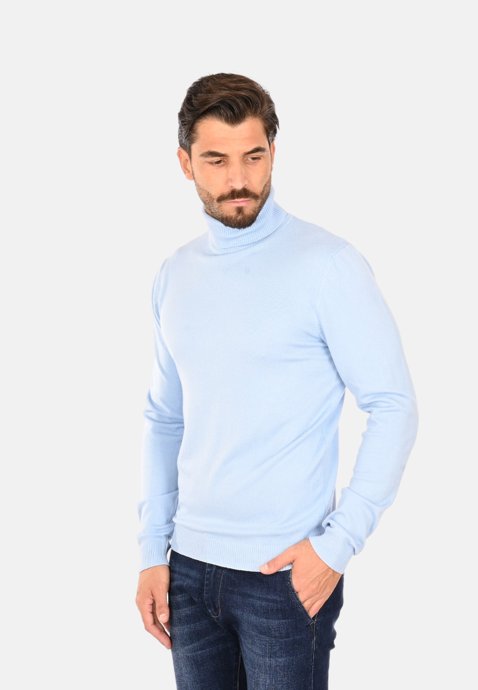 Maglioncino invernale collo alto uomo in undici variazioni di colore blu, blu cobalto, rosso, cammello, azzurro, bordeaux, grigio, senape, verde, bianco e nero. Pullover a maniche lunghe colloalto. Dolcevita sottile a tinta unita dalla vestibilità slim. Questa maglia è adatta a tutti i tipi di look, sia sportivo che classico. Realizzato in 47%viscosa 35%lana %10cashmere 8%elastic
