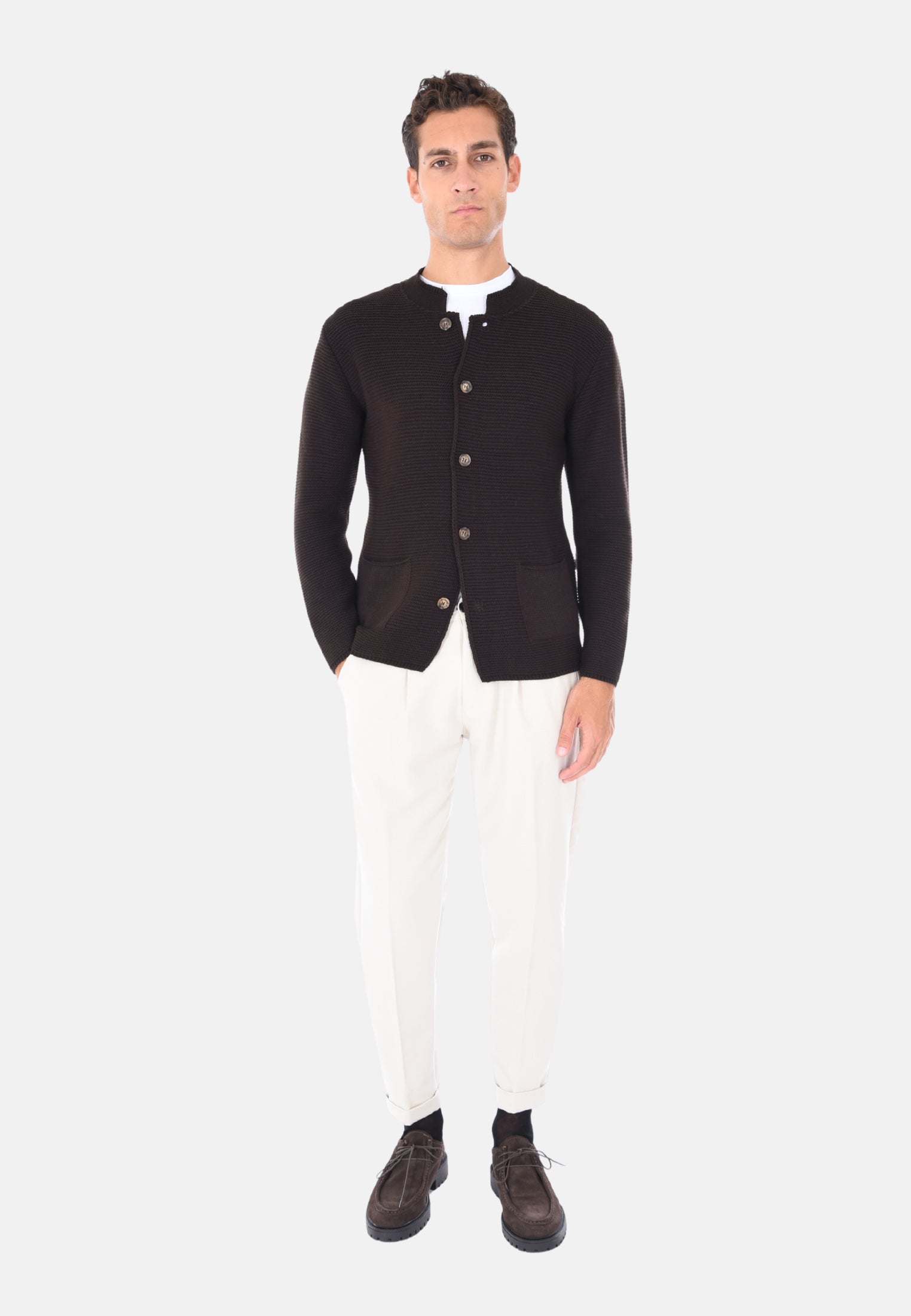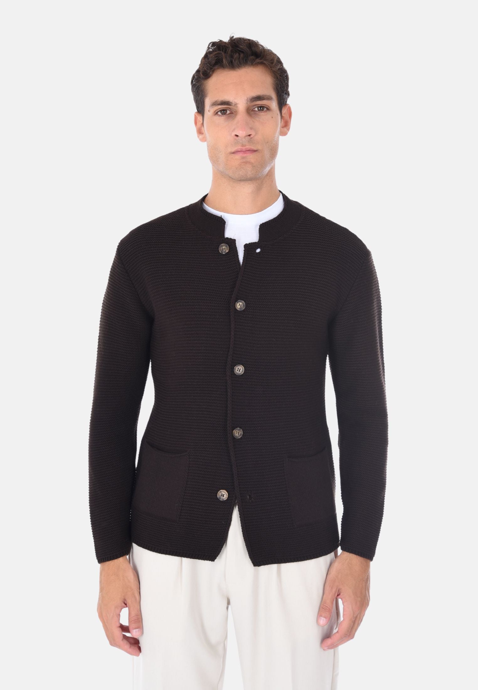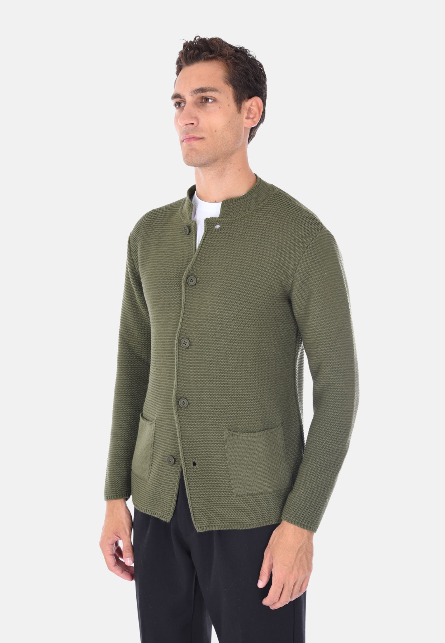 Giacca in maglia da uomo con colletto alla coreana perfetta unione tra comfort, stile e artigianalità italiana, questa giacca in maglia da uomo è pensata per accompagnarti con eleganza e praticità durante l’inverno. Il colletto alla coreana dona un tocco moderno e sofisticato, mentre il taglio slim fit valorizza la figura mantenendo libertà di movimento. Il design ricorda quello di un cardigan, rendendola estremamente versatile: ideale sia per un look sportivo con jeans e sneakers, sia per un outfit più formale con pantalone e camicia. La chiusura a 5 bottoni e le due tasche a toppa frontali aggiungono dettagli funzionali senza rinunciare allo stile. Realizzata in 100% tessuto Acrilico, caldo e morbido al tatto, è la giacca perfetta per chi cerca qualità, comfort e un capo adatto a ogni occasione. Colori disponibili blu, nero, grigio, bianco , testa di moro, beige e verde. Le taglie invece vanno dalla S alla XXL