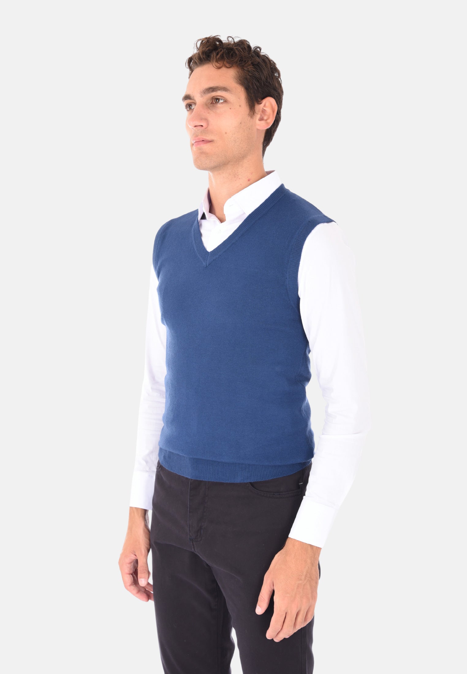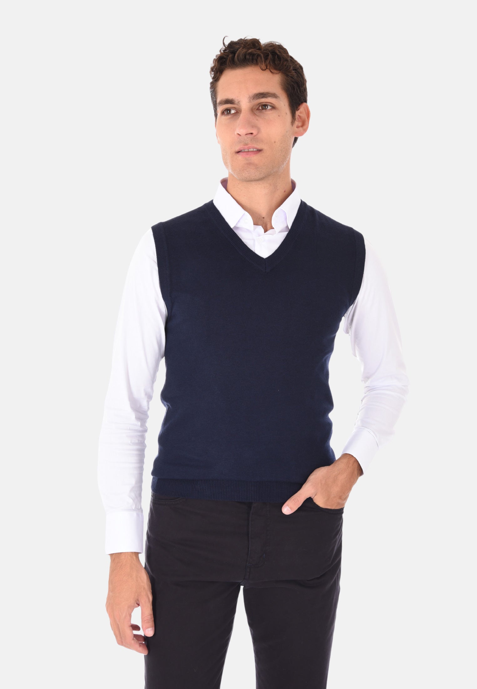 Realizzato in una miscela di 70% viscosa, 20% acrilico e 10% spandex, questo gilet unisce eleganza e praticità, offrendo sia calore che flessibilità. È disponibile in una varietà di colori sobri e versatili, tra cui blu navy, blu, grigio e nero, che si abbinano facilmente a diversi outfit.