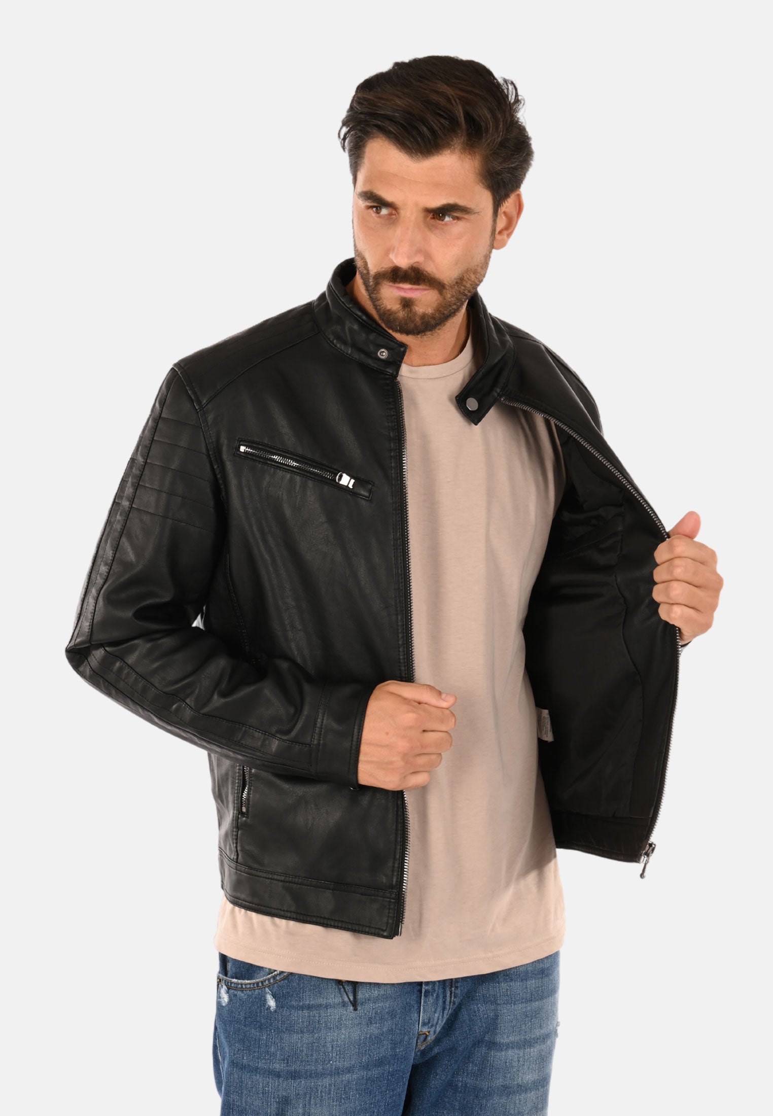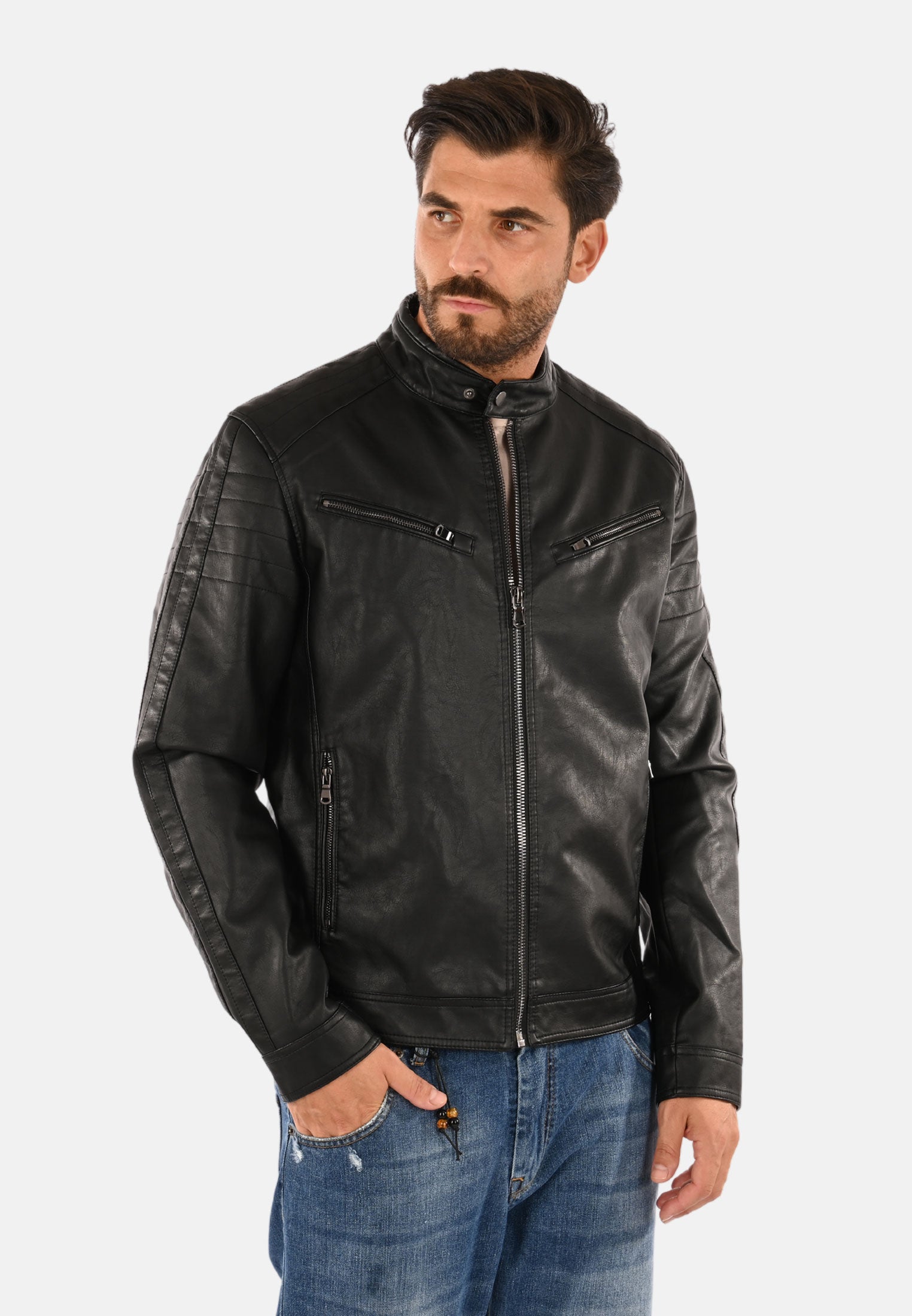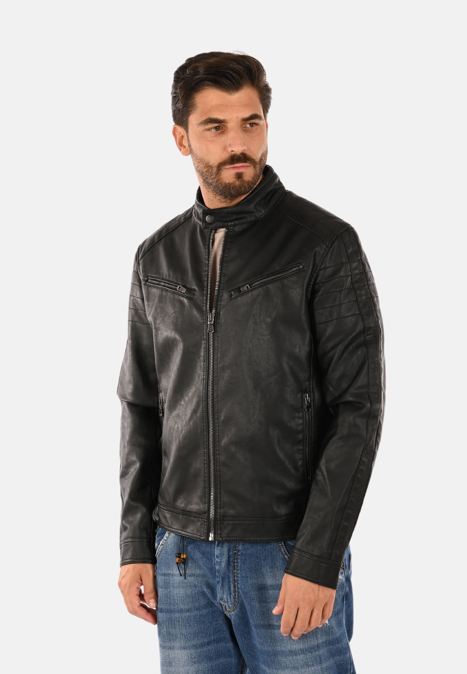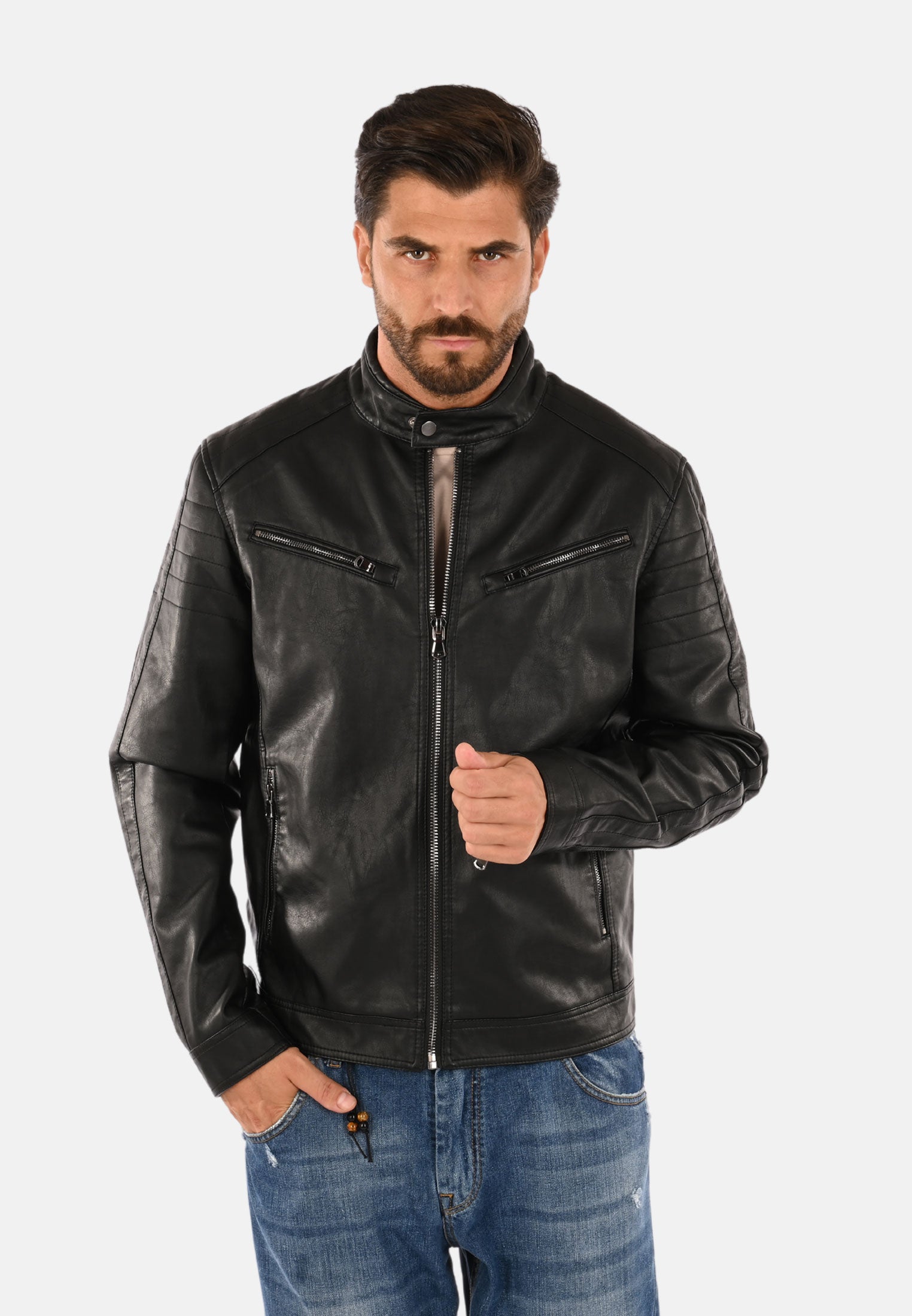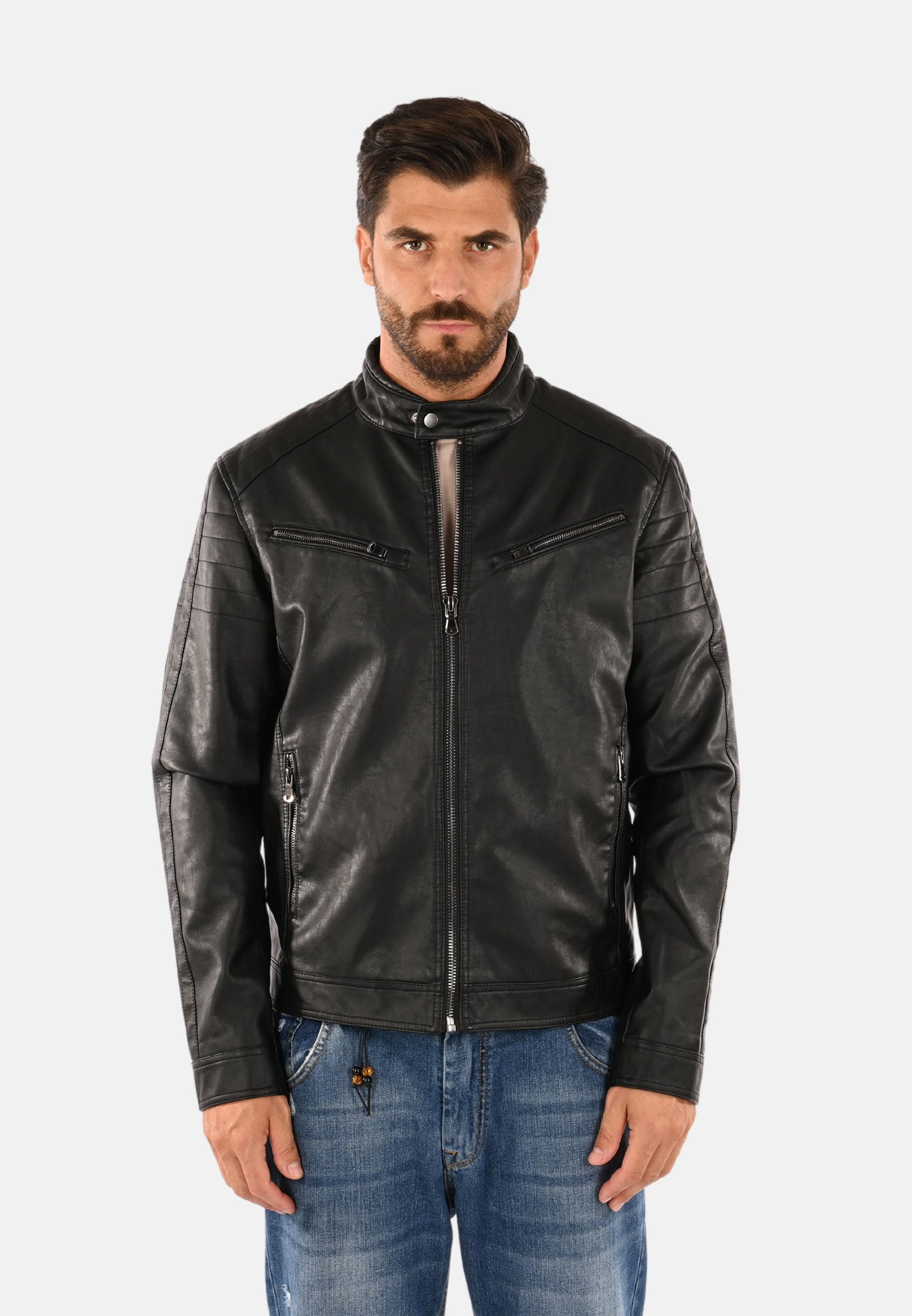 Giubbotto in ecopelle collo coreana