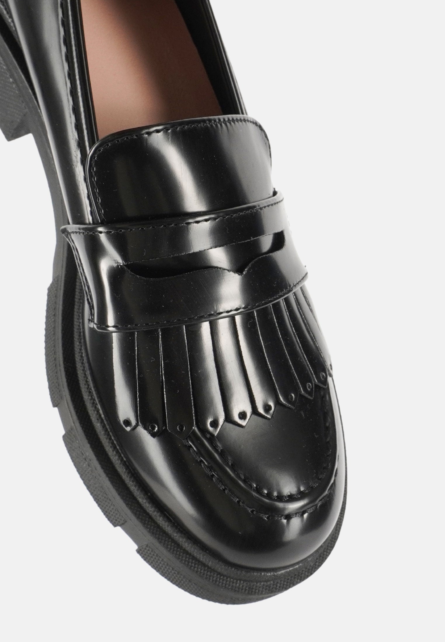 I mocassini da donna in simil pelle con suola alta rappresentano la fusione ideale tra eleganza moderna e comfort quotidiano. Realizzati in ecopelle liscia, si distinguono per un design deciso e sofisticato che valorizza ogni outfit, dal più casual al più ricercato. Il dettaglio della frangia decorativa sul collo del piede aggiunge un tocco raffinato e di tendenza, rendendo questi loafer chunky un vero must-have della stagione. Il design slip-on, pratico e contemporaneo, garantisce una calzata immediata e confortevole, ideale per accompagnarti durante le giornate più dinamiche senza rinunciare allo stile. Il sottopiede imbottito offre una sensazione di morbidezza e benessere prolungato, mentre la suola in gomma antiscivolo, alta 3 cm e con tacco di 4,5 cm, assicura stabilità, sicurezza e una postura naturalmente slanciata. Questo modello incarna perfettamente l’essenza del mocassino chunky moderno, una delle tendenze più amate dell’anno, capace di unire classe, personalità e funzionalità. Disponibili nel classico colore nero, questi mocassini si abbinano facilmente a pantaloni sartoriali, gonne midi o jeans, adattandosi con disinvoltura a look da giorno e da sera. Le taglie dal 36 al 41 e la calzata regolare garantiscono un comfort ottimale per ogni tipo di piede. Perfetti per donne dinamiche, eleganti e sempre al passo con la moda, questi mocassini in simil pelle sono un accessorio indispensabile per chi ama distinguersi con stile in ogni occasione