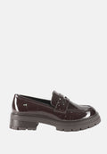 I mocassini da donna in simil pelle lucida con suola alta rappresentano la perfetta combinazione di raffinatezza, comfort e praticità. Realizzati con una finitura effetto vernice, questi loafer moderni si distinguono per il loro design deciso e sofisticato, ideale per chi ama uno stile contemporaneo senza rinunciare alla comodità quotidiana. La tomaia liscia e lucente dona un tocco elegante e versatile, mentre il design slip-on assicura una calzata facile e immediata, perfetta per affrontare con stile anche le giornate più intense. Il sottopiede imbottito offre un comfort superiore, avvolgendo il piede in una sensazione di morbidezza e benessere duraturo. La suola in gomma antiscivolo alta 3 cm, unita al tacco di 4,5 cm, conferisce stabilità, sicurezza e una postura naturalmente slanciata. Questo modello incarna alla perfezione l’essenza del mocassino chunky, diventato uno dei trend più amati dell’anno per la sua capacità di unire classe e funzionalità. Disponibili nei colori nero lucido e marrone caldo, questi mocassini si adattano con facilità a ogni outfit — dal look casual da giorno all’abbinamento più formale per ufficio o cerimonie. Le taglie disponibili vanno dal 36 al 41, con calzata regolare per assicurare il massimo comfort a ogni passo. Un accessorio immancabile nel guardaroba femminile, pensato per donne dinamiche, eleganti e sempre al passo con la moda.