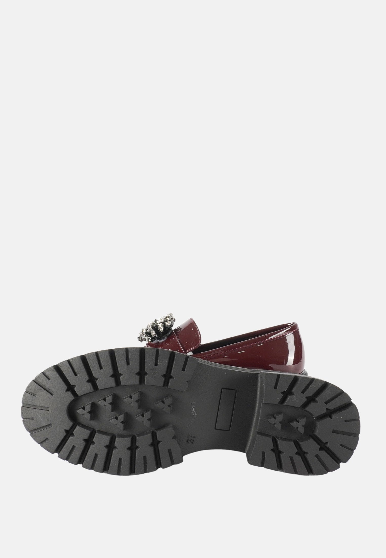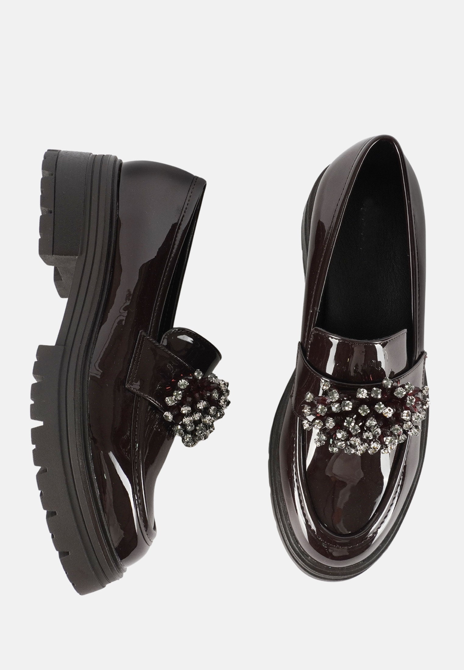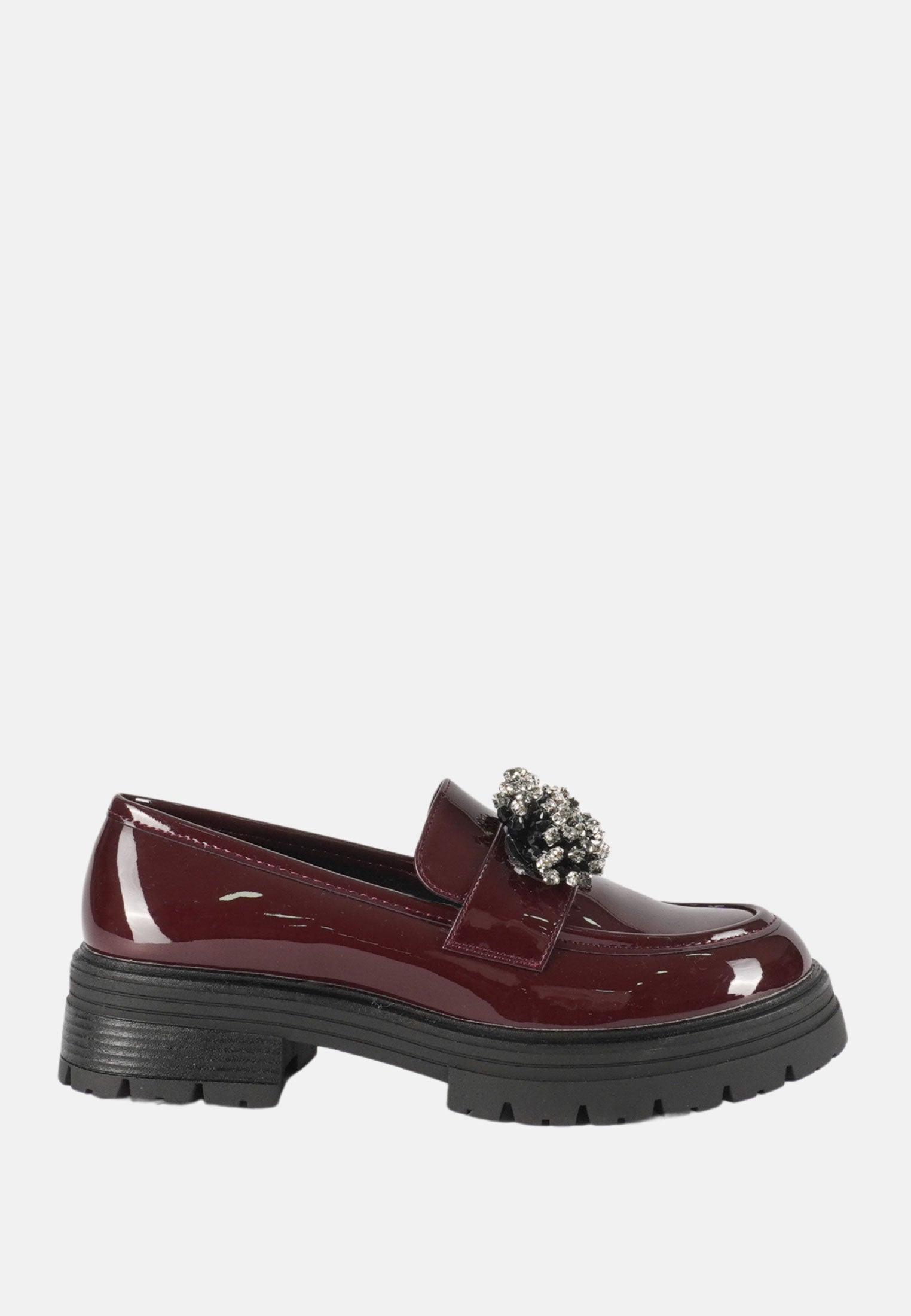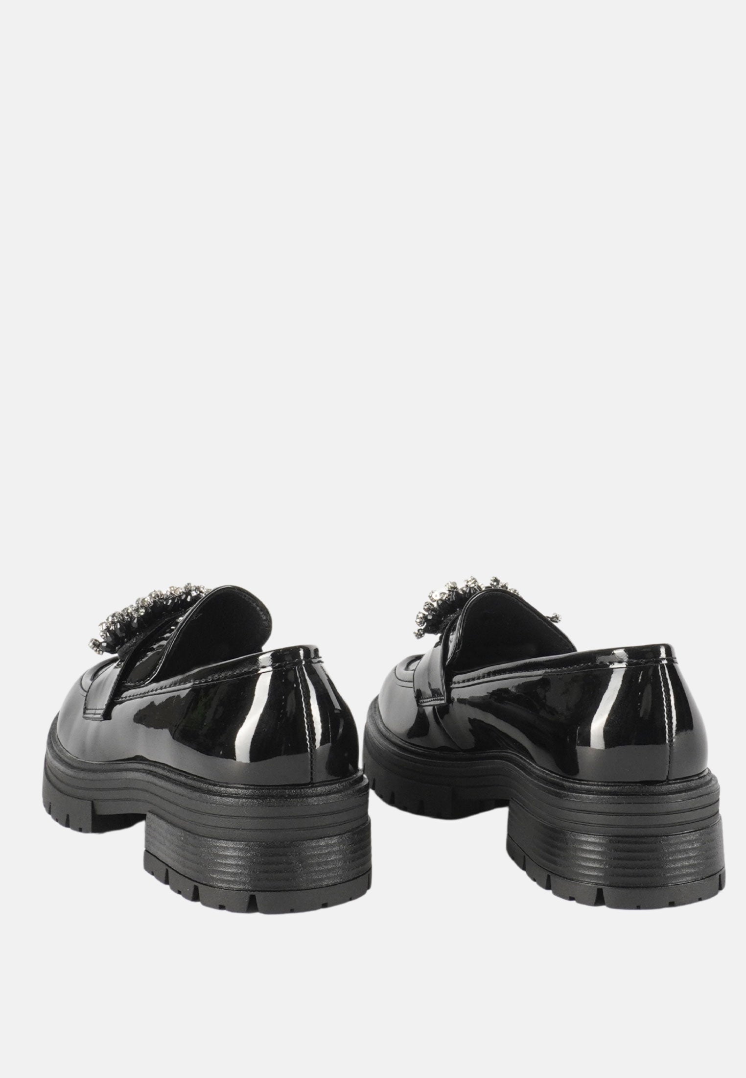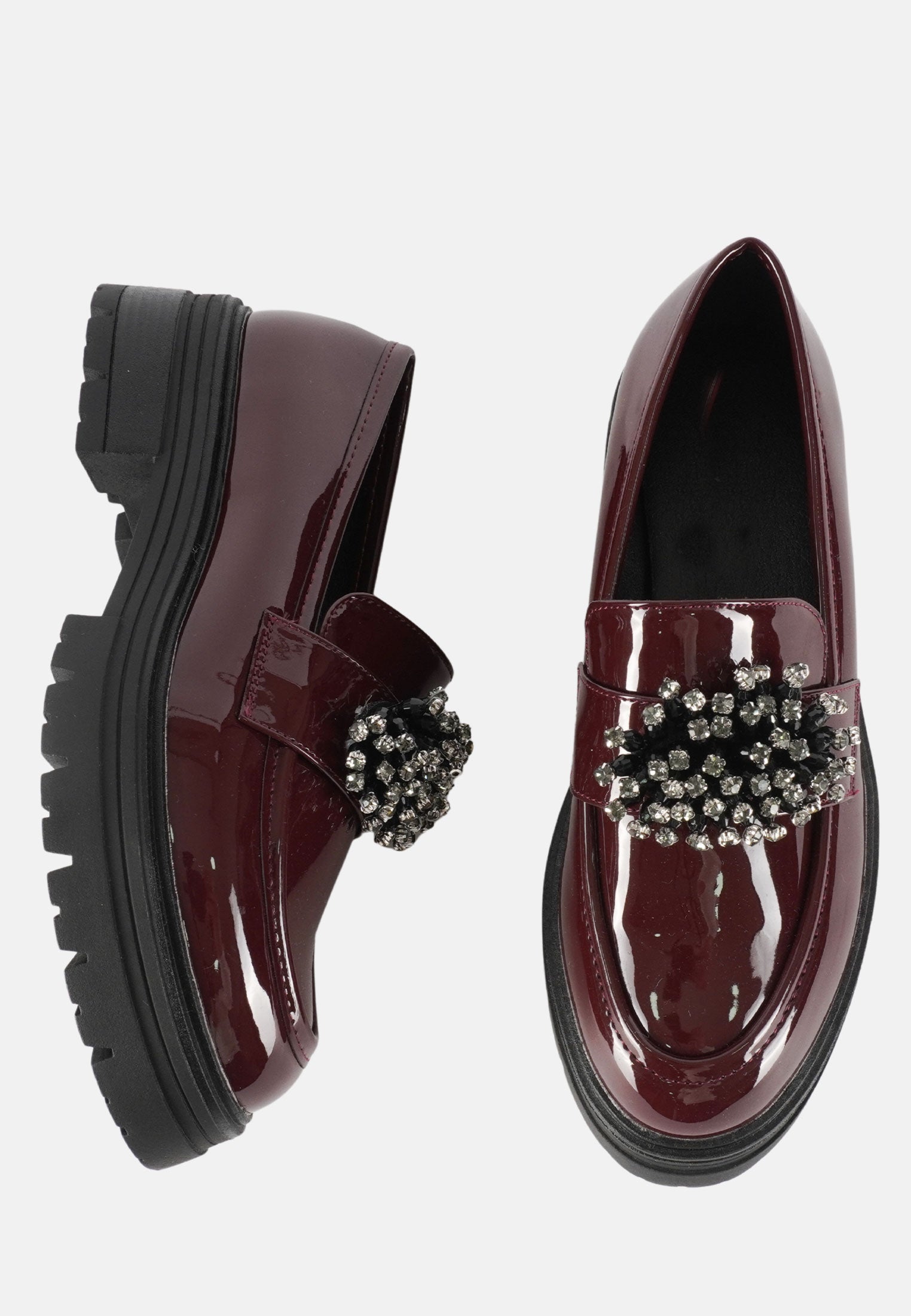 I mocassini donna in simil pelle lucida con pon pon e strass rappresentano l’incontro perfetto tra eleganza contemporanea e comfort quotidiano. Realizzati con materiali di qualità e finitura effetto vernice, questi mocassini reinterpretano un grande classico con un tocco moderno e sofisticato. L’applicazione gioiello, impreziosita da un raffinato pon pon con strass luminosi, aggiunge un accento glamour e distintivo che cattura l’attenzione a ogni passo. Il design combina stile e praticità: la robusta suola in gomma stile “carro armato”, alta 3 cm, garantisce stabilità e comfort durante l’intera giornata, mentre il tacco rialzato di 5 cm offre una postura slanciata senza rinunciare alla comodità. Grazie alla suola antiscivolo, ogni passo risulta sicuro e bilanciato, anche su superfici più scivolose. Queste scarpe basse eleganti si adattano perfettamente a molteplici occasioni — da una passeggiata in città a un evento formale, fino a una giornata di lavoro — offrendo versatilità e stile senza tempo. Il lucido effetto vernice dona un tocco raffinato e luminoso, ideale per chi ama distinguersi con discrezione. Disponibili in marrone, bordeaux e nero, i mocassini si abbinano con facilità sia a outfit casual, come jeans e camicie oversize, sia a look più ricercati con gonne midi o pantaloni sartoriali. Le taglie dal 36 al 41 e la calzata regolare assicurano un fit confortevole e adatto a ogni tipo di piede. Perfetti per donne di ogni età che desiderano unire moda, funzionalità e comfort, questi mocassini sono un must-have del guardaroba femminile, ideali per elevare il look in ogni stagione con un tocco chic e contemporaneo
