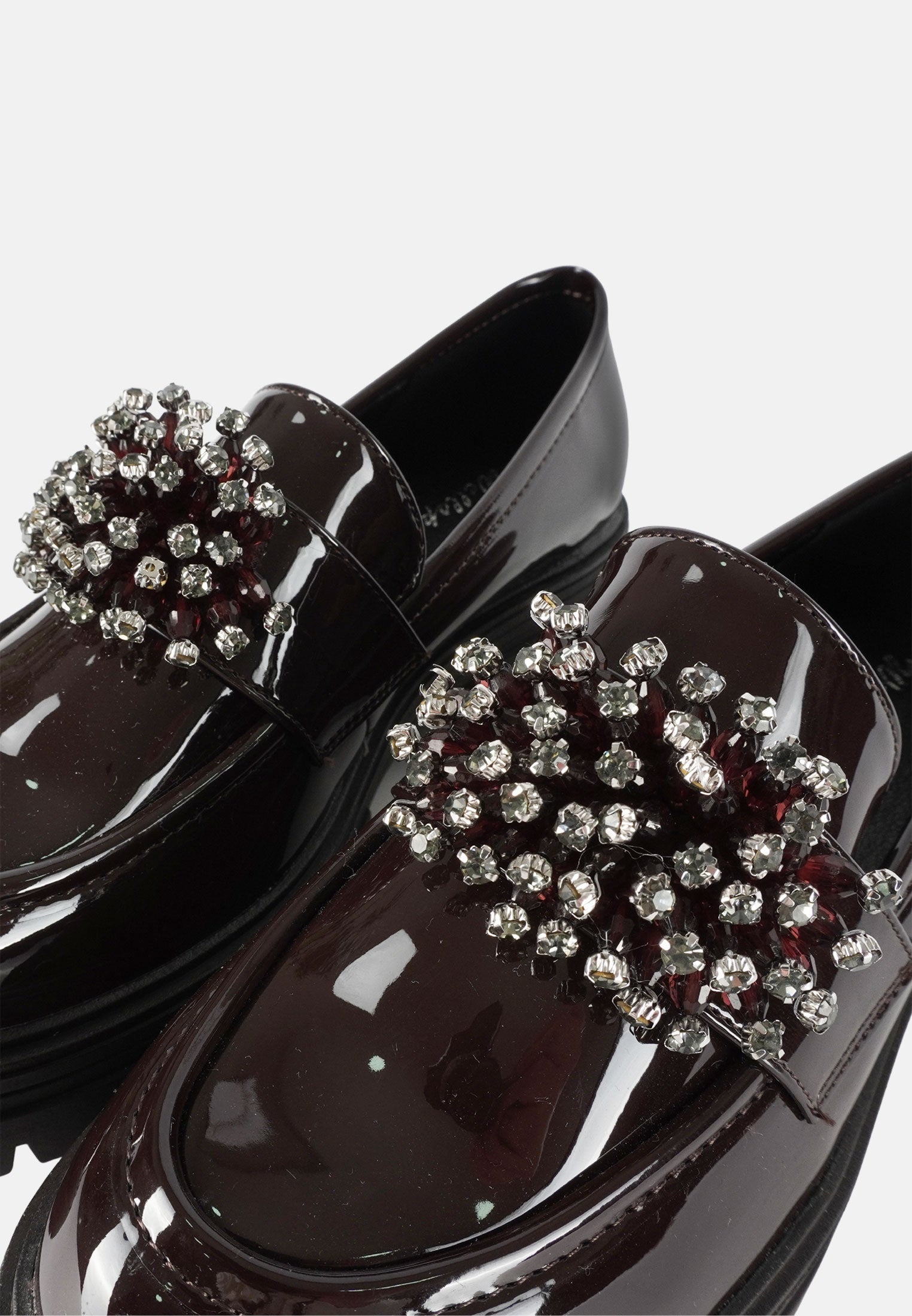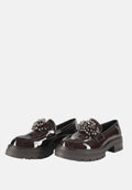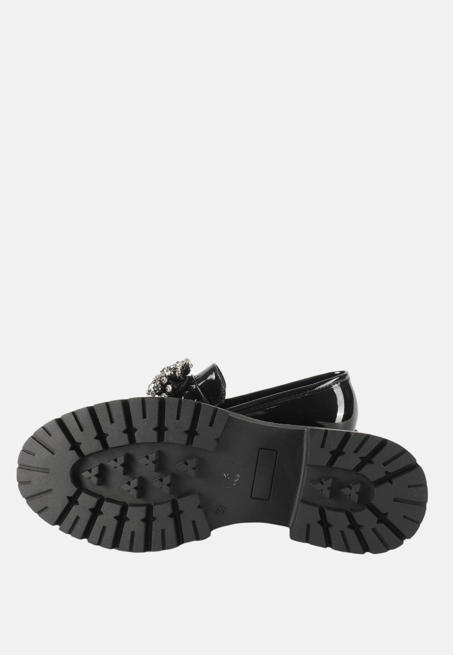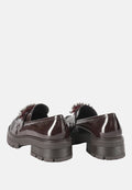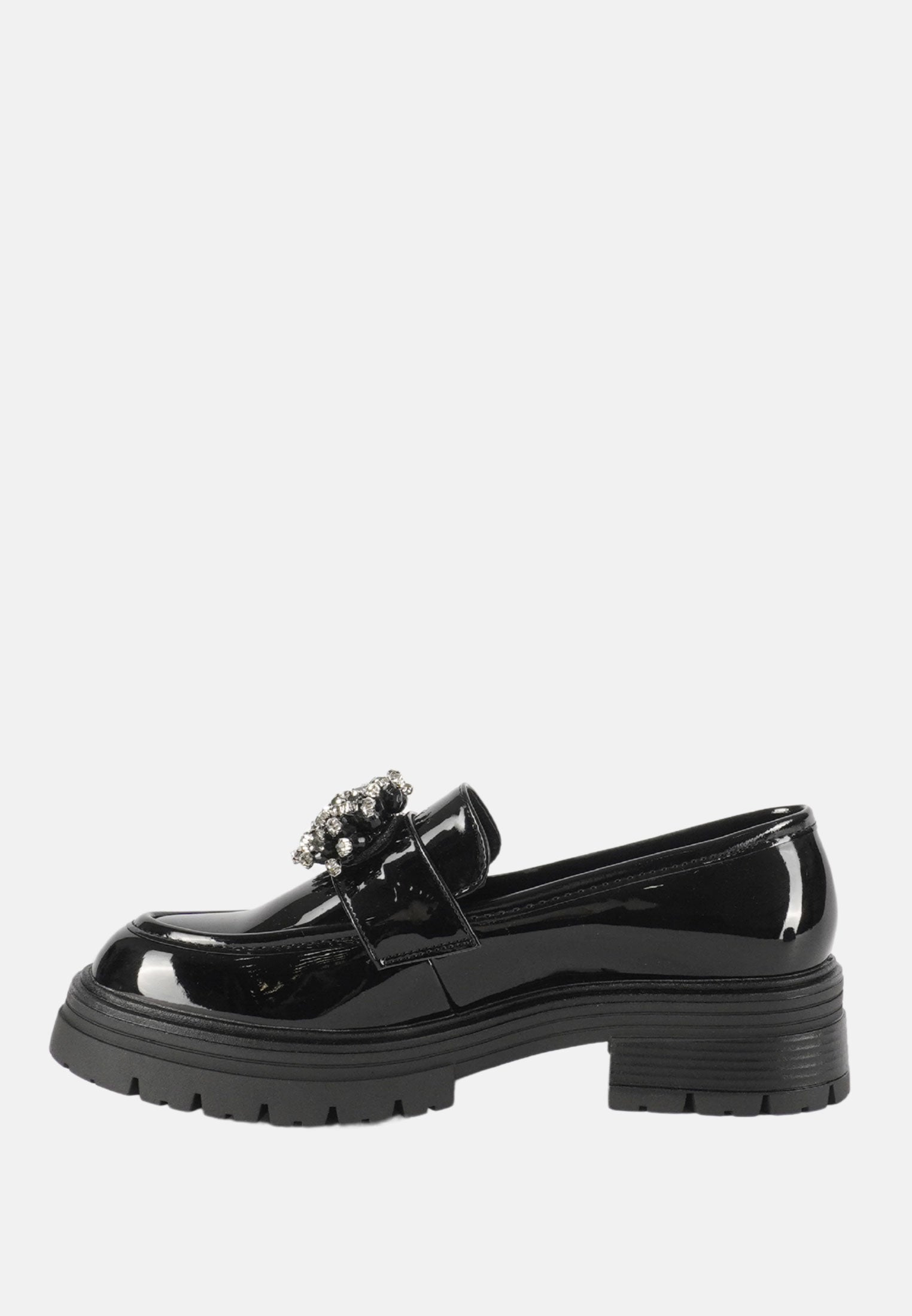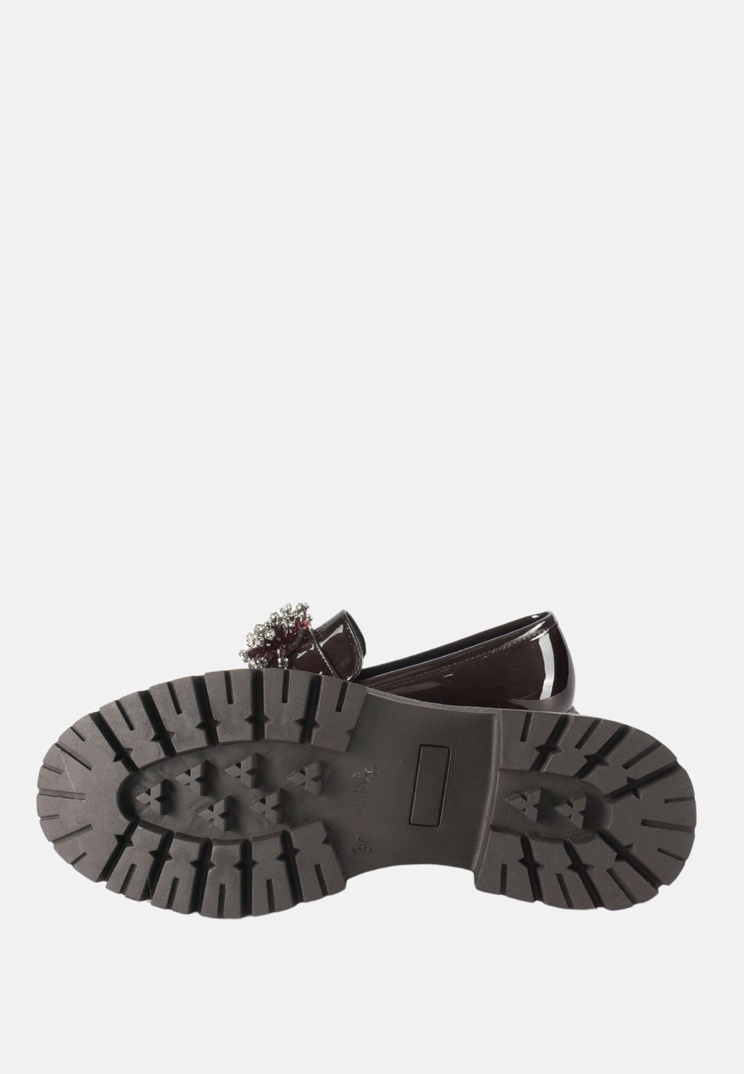 I mocassini donna in simil pelle lucida con pon pon e strass rappresentano l’incontro perfetto tra eleganza contemporanea e comfort quotidiano. Realizzati con materiali di qualità e finitura effetto vernice, questi mocassini reinterpretano un grande classico con un tocco moderno e sofisticato. L’applicazione gioiello, impreziosita da un raffinato pon pon con strass luminosi, aggiunge un accento glamour e distintivo che cattura l’attenzione a ogni passo. Il design combina stile e praticità: la robusta suola in gomma stile “carro armato”, alta 3 cm, garantisce stabilità e comfort durante l’intera giornata, mentre il tacco rialzato di 5 cm offre una postura slanciata senza rinunciare alla comodità. Grazie alla suola antiscivolo, ogni passo risulta sicuro e bilanciato, anche su superfici più scivolose. Queste scarpe basse eleganti si adattano perfettamente a molteplici occasioni — da una passeggiata in città a un evento formale, fino a una giornata di lavoro — offrendo versatilità e stile senza tempo. Il lucido effetto vernice dona un tocco raffinato e luminoso, ideale per chi ama distinguersi con discrezione. Disponibili in marrone, bordeaux e nero, i mocassini si abbinano con facilità sia a outfit casual, come jeans e camicie oversize, sia a look più ricercati con gonne midi o pantaloni sartoriali. Le taglie dal 36 al 41 e la calzata regolare assicurano un fit confortevole e adatto a ogni tipo di piede. Perfetti per donne di ogni età che desiderano unire moda, funzionalità e comfort, questi mocassini sono un must-have del guardaroba femminile, ideali per elevare il look in ogni stagione con un tocco chic e contemporaneo