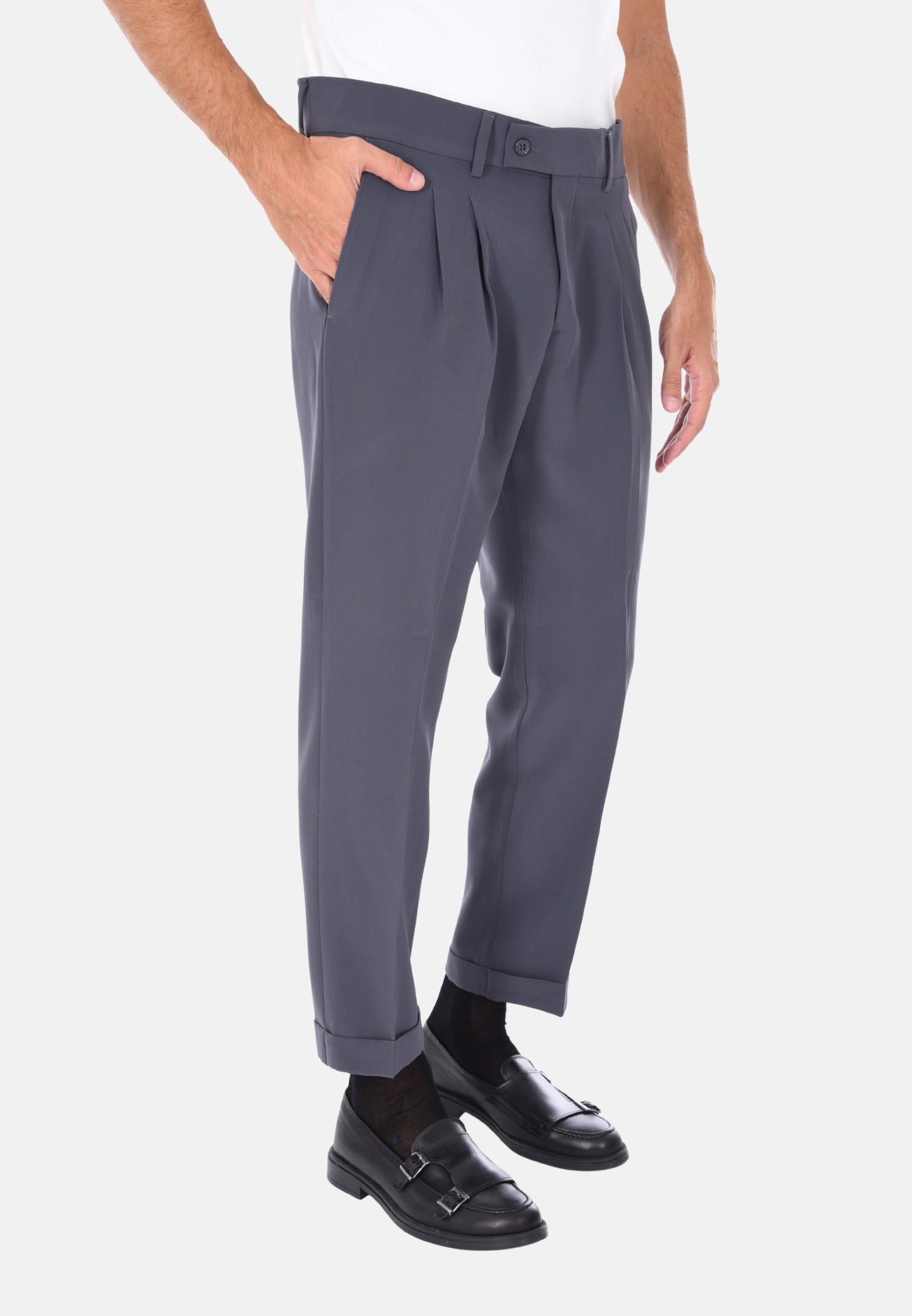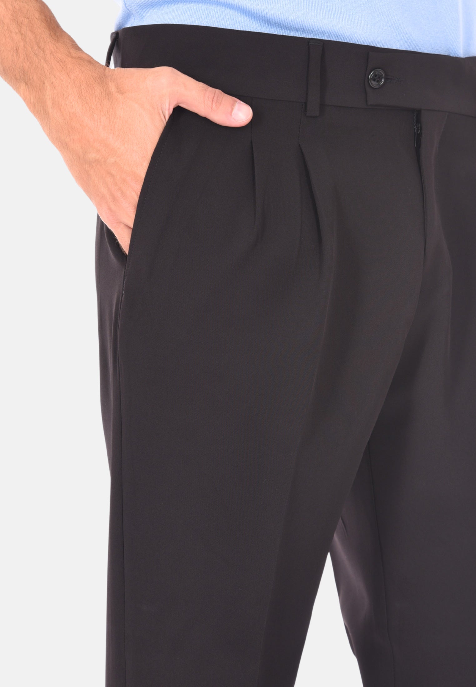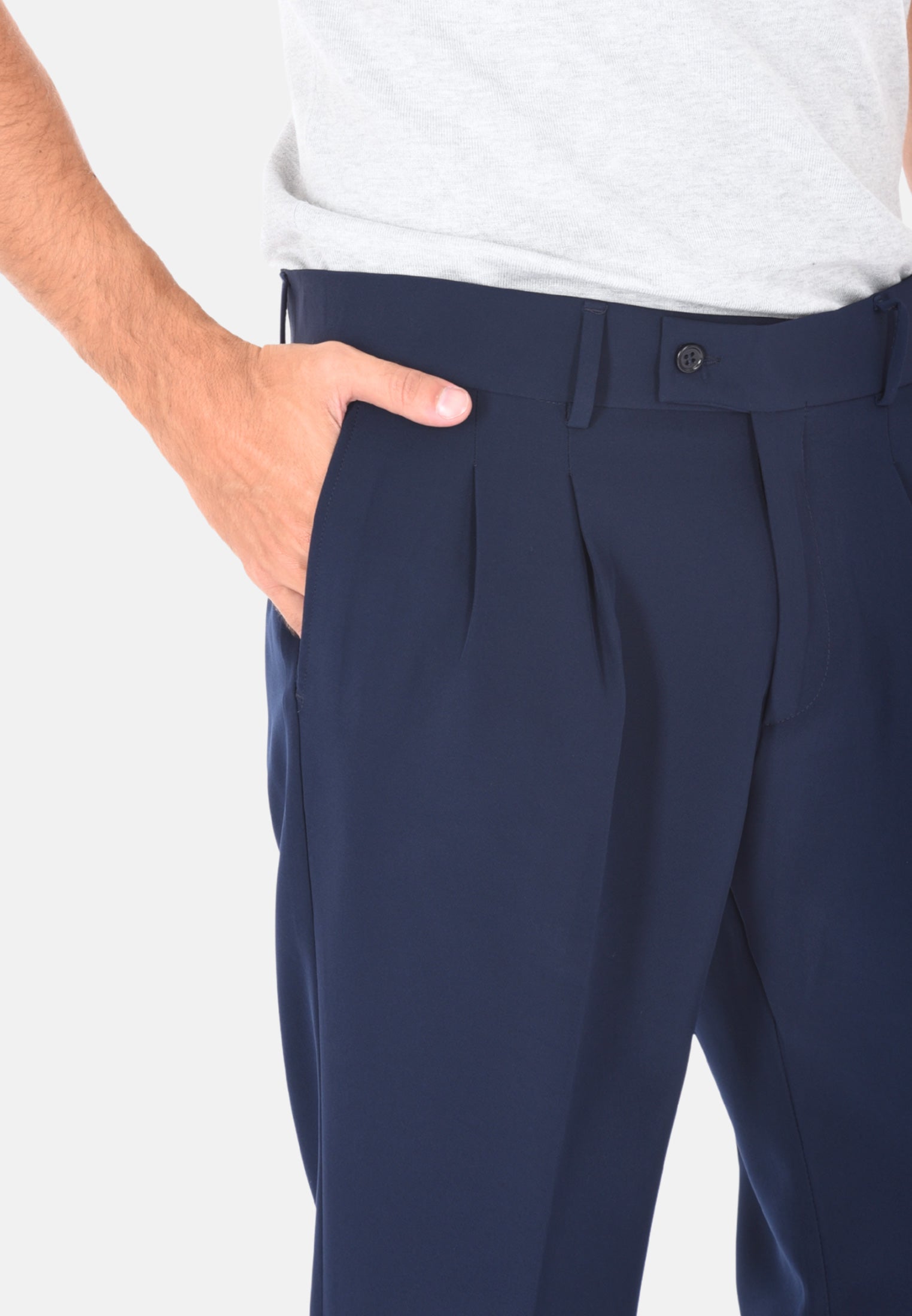 Scopri il nostro pantalone sartoriale da uomo invernale a vita alta, un capo che racchiude l’eleganza della tradizione italiana e il gusto moderno dell’uomo contemporaneo. Realizzato 100% Made in Italy, questo pantalone è pensato per chi desidera uno stile curato, funzionale e impeccabile in ogni occasione, dal lavoro all’aperitivo. La vestibilità comoda è resa possibile dalla composizione in polyviscosa, ideale per le stagioni fredde grazie alla sua capacità di mantenere il calore senza rinunciare alla leggerezza e alla traspirabilità. Il design sartoriale si distingue per la presenza delle doppie pinces frontali, un dettaglio raffinato che valorizza la silhouette maschile e dona un tocco classico senza tempo. La chiusura laterale con zip e bottone garantisce un fitting sicuro e discreto, mentre i passanti per cintura permettono di completare il look con un accessorio coordinato. Le tasche America anteriori e le due tasche a filetto con bottone sul retro combinano funzionalità e stile, rendendo questo pantalone perfetto per un uso quotidiano ma anche per eventi più formali. Il taglio capri con risvoltino alla caviglia aggiunge un tocco contemporaneo e versatile, perfetto da abbinare a mocassini o sneakers, per uno stile che cambia a seconda dell’occasione. Proposto in una selezione di colori eleganti – blu, nero, beige, grigio e marrone – questo pantalone permette infiniti abbinamenti con camicie, maglie e giacche. Disponibile in un ampio range di taglie dalla 44 alla 56, si adatta facilmente a ogni fisicità. Il modello in foto indossa con eleganza la taglia 50 su un’altezza di 1,90 m, confermando la vestibilità regolare ma raffinata di questo capo. Indossare questo pantalone significa non solo esprimere il proprio stile personale, ma anche valorizzare la qualità e l’artigianalità della sartoria italiana, per un guardaroba essenziale ma distintivo, sempre al passo con i tempi.