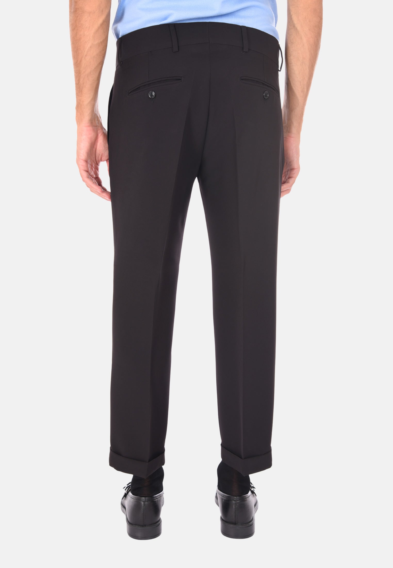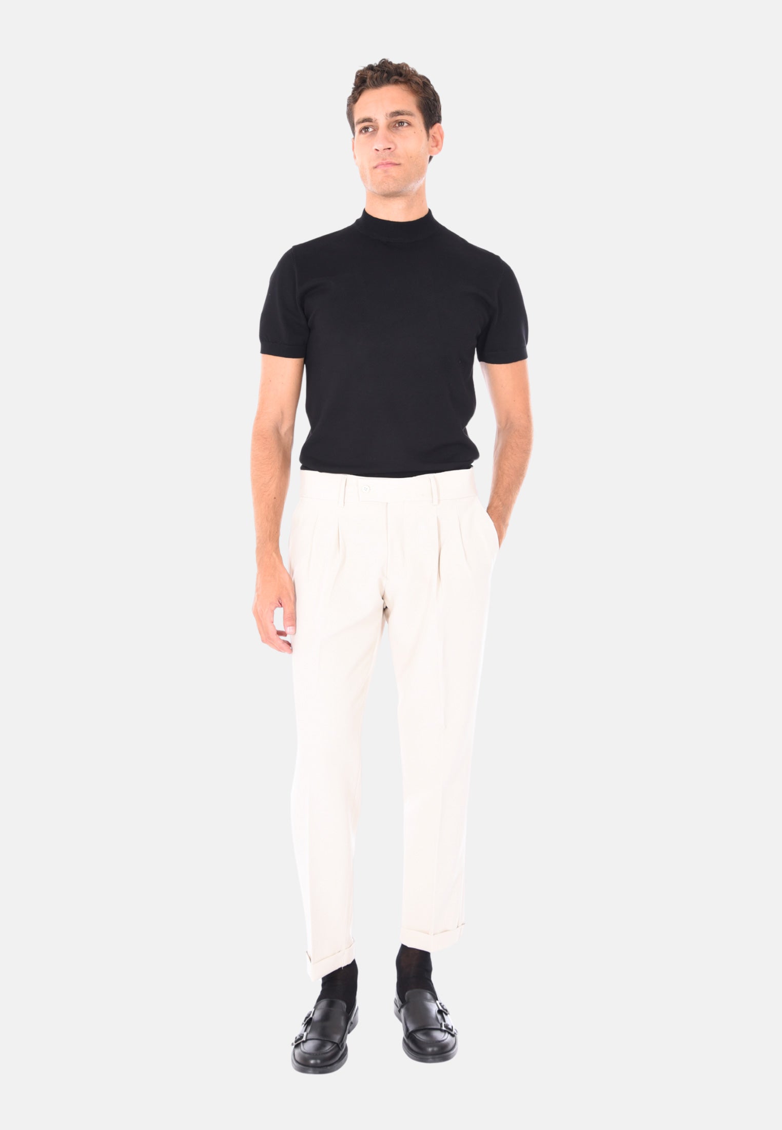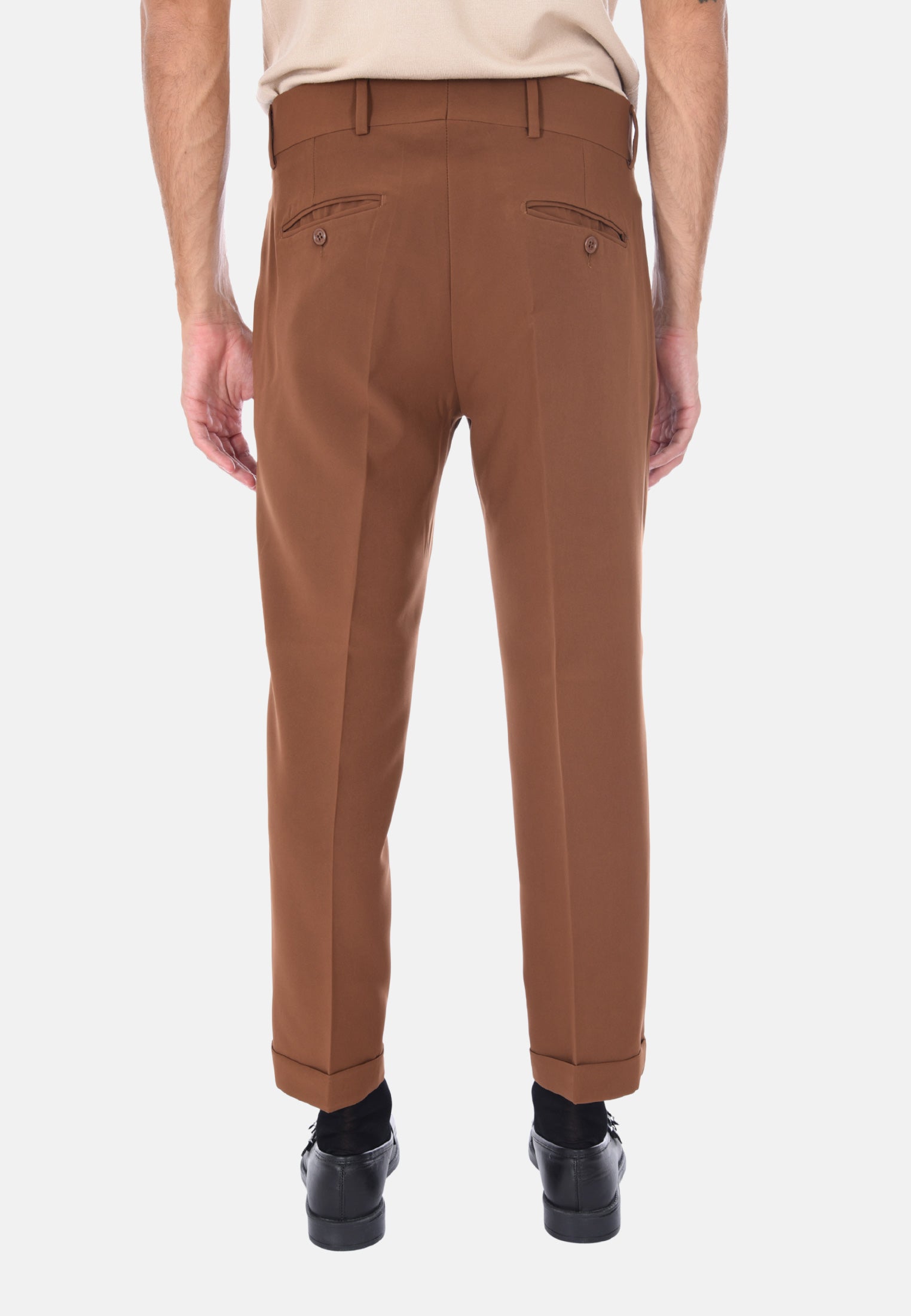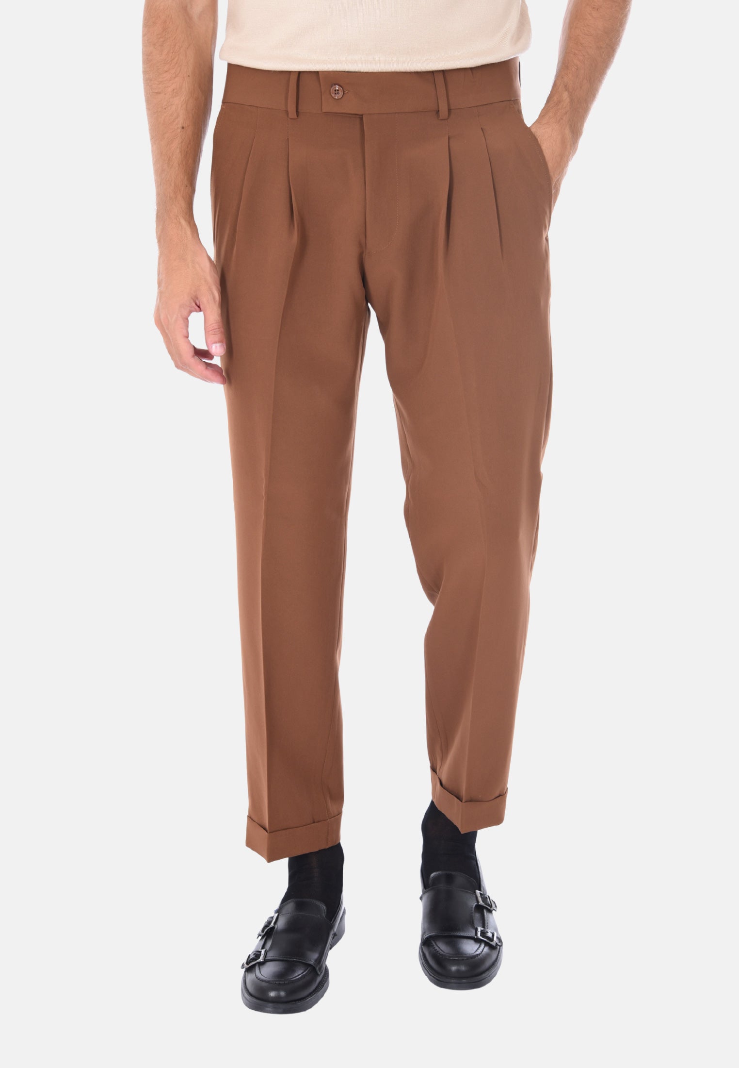 Scopri il nostro pantalone sartoriale da uomo invernale a vita alta, un capo che racchiude l’eleganza della tradizione italiana e il gusto moderno dell’uomo contemporaneo. Realizzato 100% Made in Italy, questo pantalone è pensato per chi desidera uno stile curato, funzionale e impeccabile in ogni occasione, dal lavoro all’aperitivo. La vestibilità comoda è resa possibile dalla composizione in polyviscosa, ideale per le stagioni fredde grazie alla sua capacità di mantenere il calore senza rinunciare alla leggerezza e alla traspirabilità. Il design sartoriale si distingue per la presenza delle doppie pinces frontali, un dettaglio raffinato che valorizza la silhouette maschile e dona un tocco classico senza tempo. La chiusura laterale con zip e bottone garantisce un fitting sicuro e discreto, mentre i passanti per cintura permettono di completare il look con un accessorio coordinato. Le tasche America anteriori e le due tasche a filetto con bottone sul retro combinano funzionalità e stile, rendendo questo pantalone perfetto per un uso quotidiano ma anche per eventi più formali. Il taglio capri con risvoltino alla caviglia aggiunge un tocco contemporaneo e versatile, perfetto da abbinare a mocassini o sneakers, per uno stile che cambia a seconda dell’occasione. Proposto in una selezione di colori eleganti – blu, nero, beige, grigio e marrone – questo pantalone permette infiniti abbinamenti con camicie, maglie e giacche. Disponibile in un ampio range di taglie dalla 44 alla 56, si adatta facilmente a ogni fisicità. Il modello in foto indossa con eleganza la taglia 50 su un’altezza di 1,90 m, confermando la vestibilità regolare ma raffinata di questo capo. Indossare questo pantalone significa non solo esprimere il proprio stile personale, ma anche valorizzare la qualità e l’artigianalità della sartoria italiana, per un guardaroba essenziale ma distintivo, sempre al passo con i tempi.