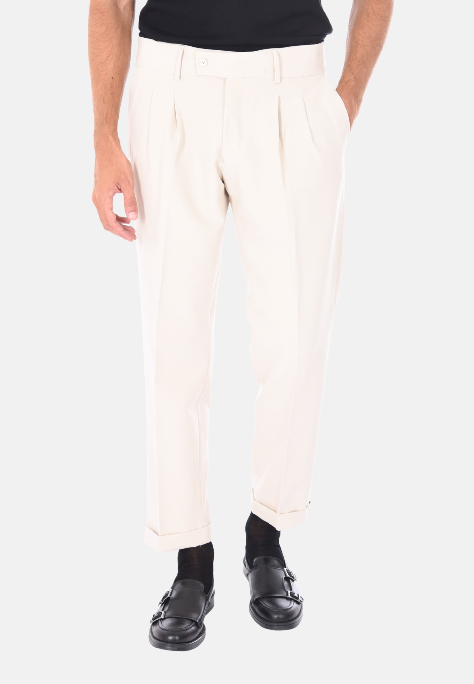 Pantaloni vita alta doppia pinces