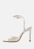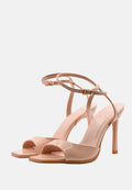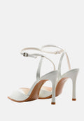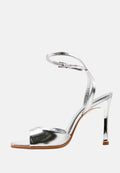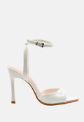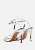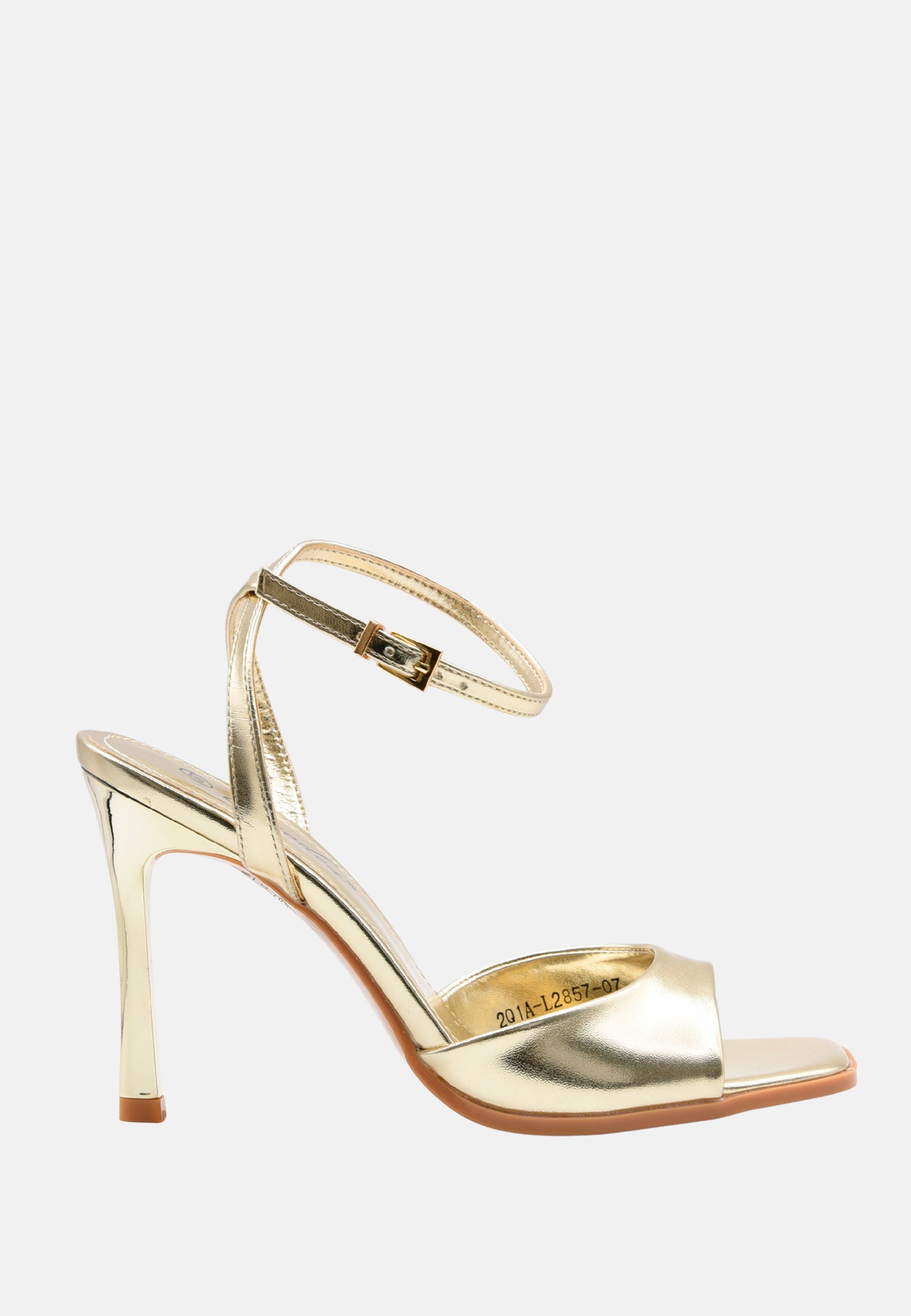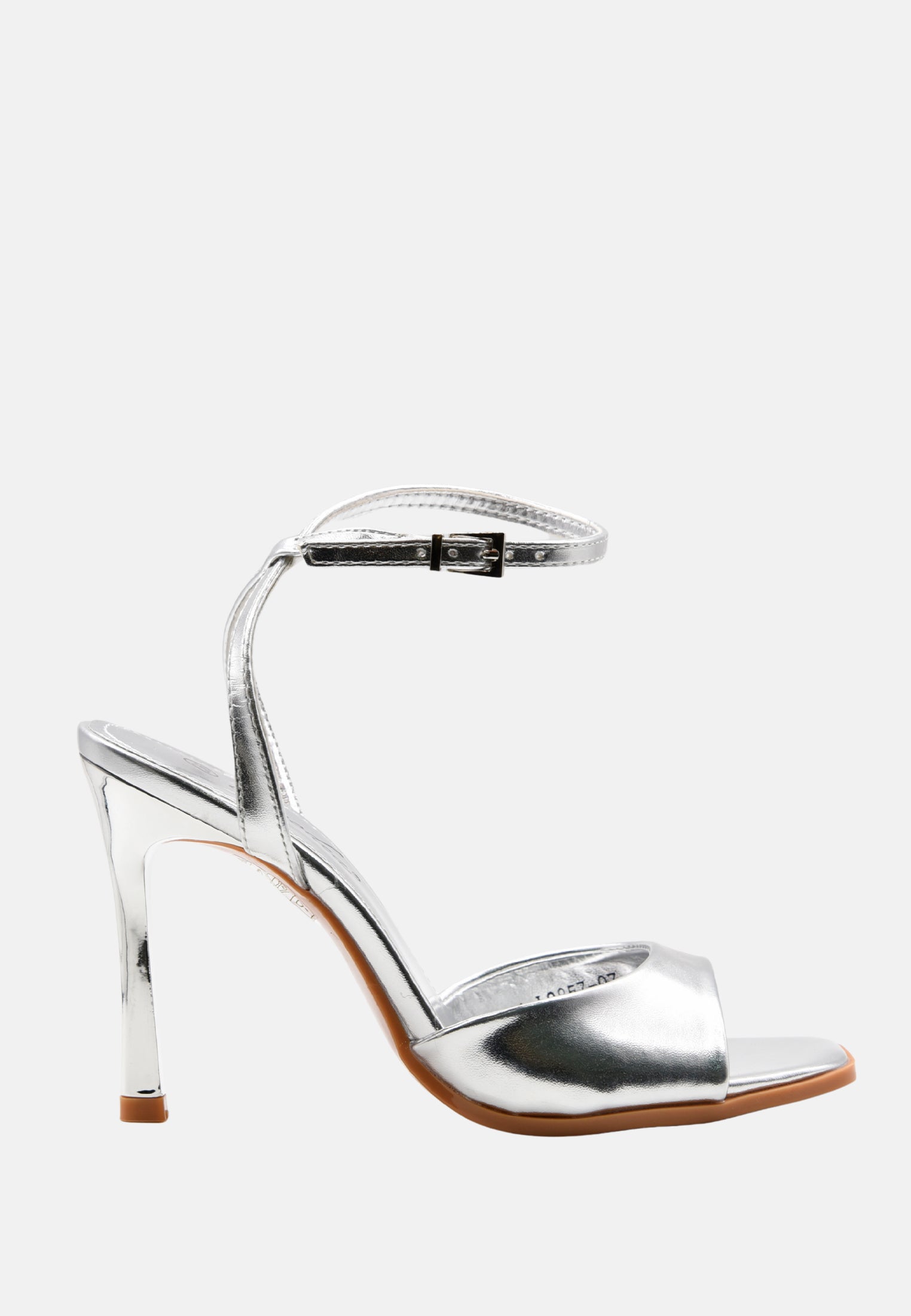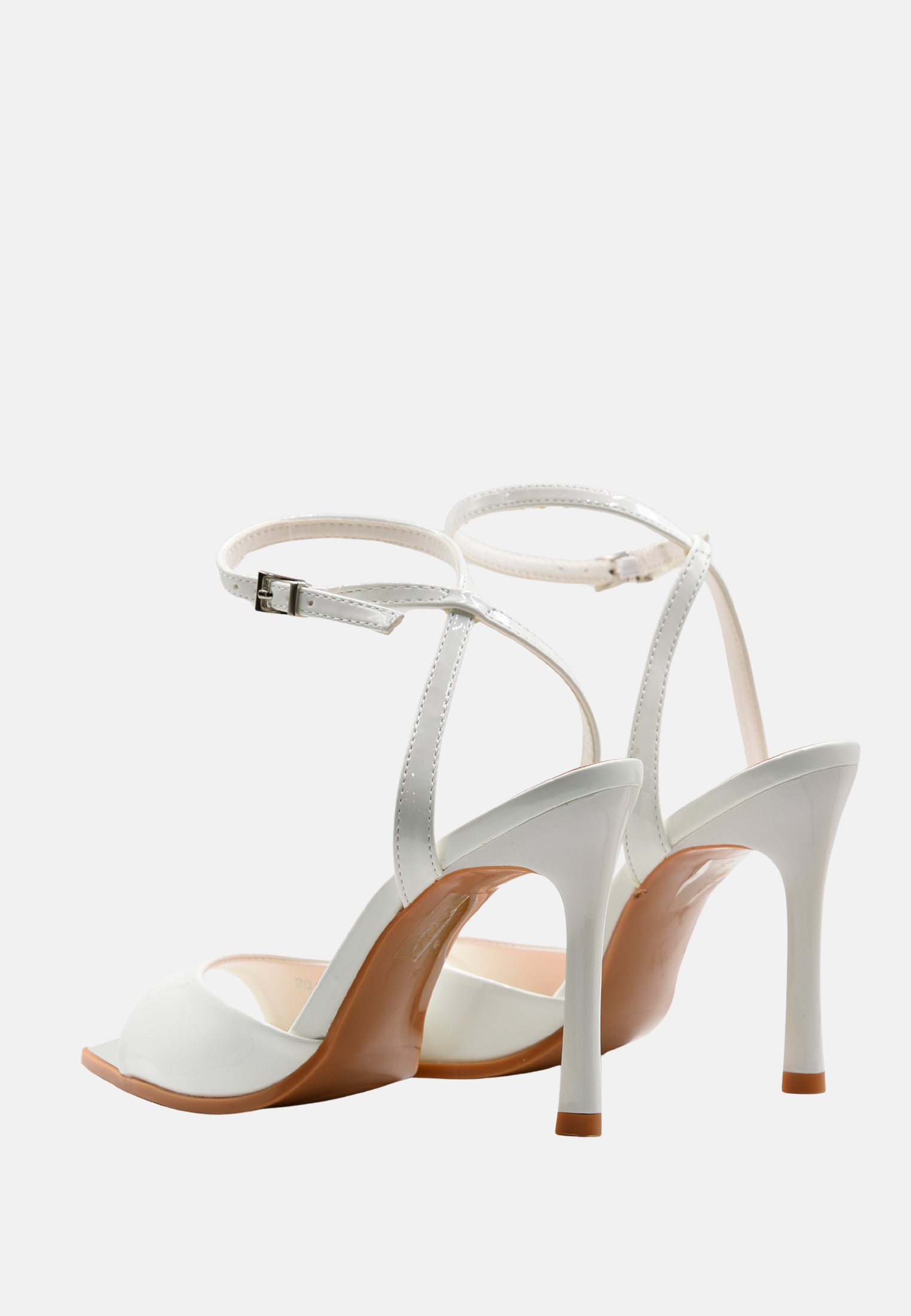 Elegante e sofisticato, questo sandalo lucido con tacco a spillo è il must-have per completare ogni outfit con stile. Il design moderno con punta quadrata dona un tocco contemporaneo, mentre il cinturino alla caviglia regolabile con fibbia assicura una calzata stabile e personalizzata. Il dettaglio distintivo è il cinturino intrecciato sul retro, che valorizza la silhouette del piede rendendo il modello ancora più femminile e raffinato. Il tacco a spillo alto 10 cm slancia la figura, perfetto per occasioni speciali, serate eleganti o look da cerimonia. Inoltre, la suola antiscivolo garantisce maggiore stabilità ad ogni passo, mentre il plantare morbido assicura comfort anche durante un utilizzo prolungato. Realizzato in finitura lucida effetto vernice, questo sandalo è disponibile in diverse colorazioni versatili per adattarsi a ogni stile: nude, nero, argento, oro e bianco.. Taglie disponibili: dal 36 al 41. Indossalo e lasciati conquistare da linee eleganti e dettagli raffinati che esaltano ogni passo.