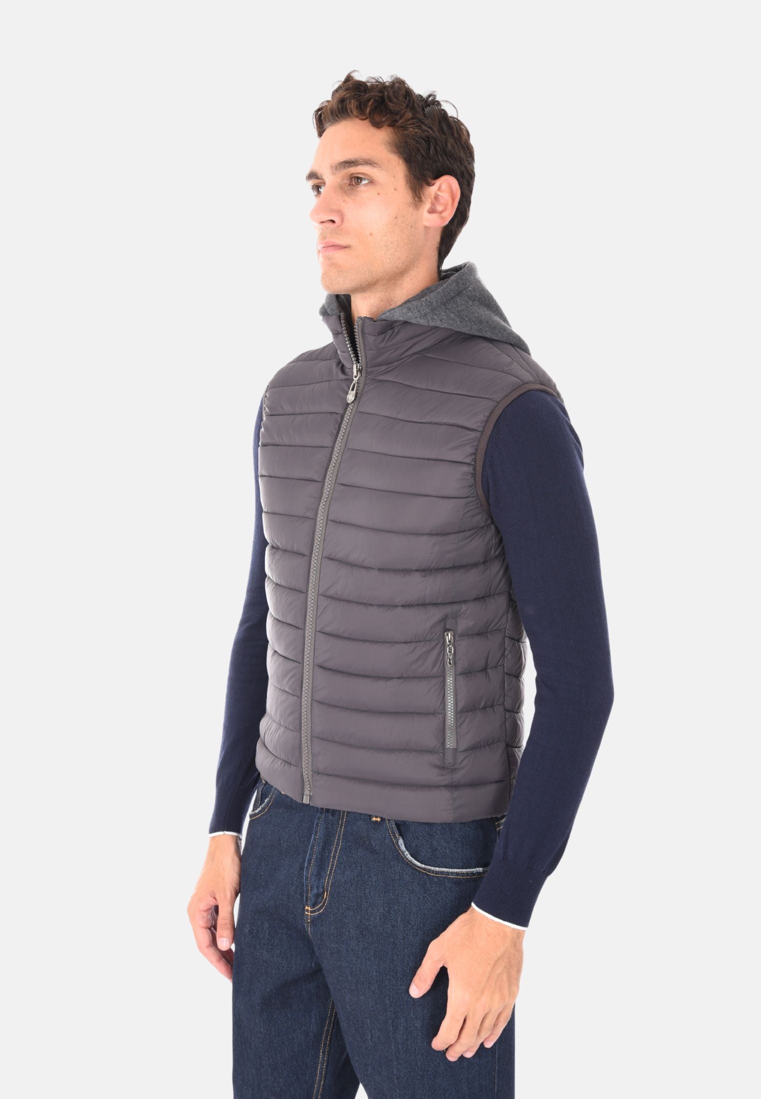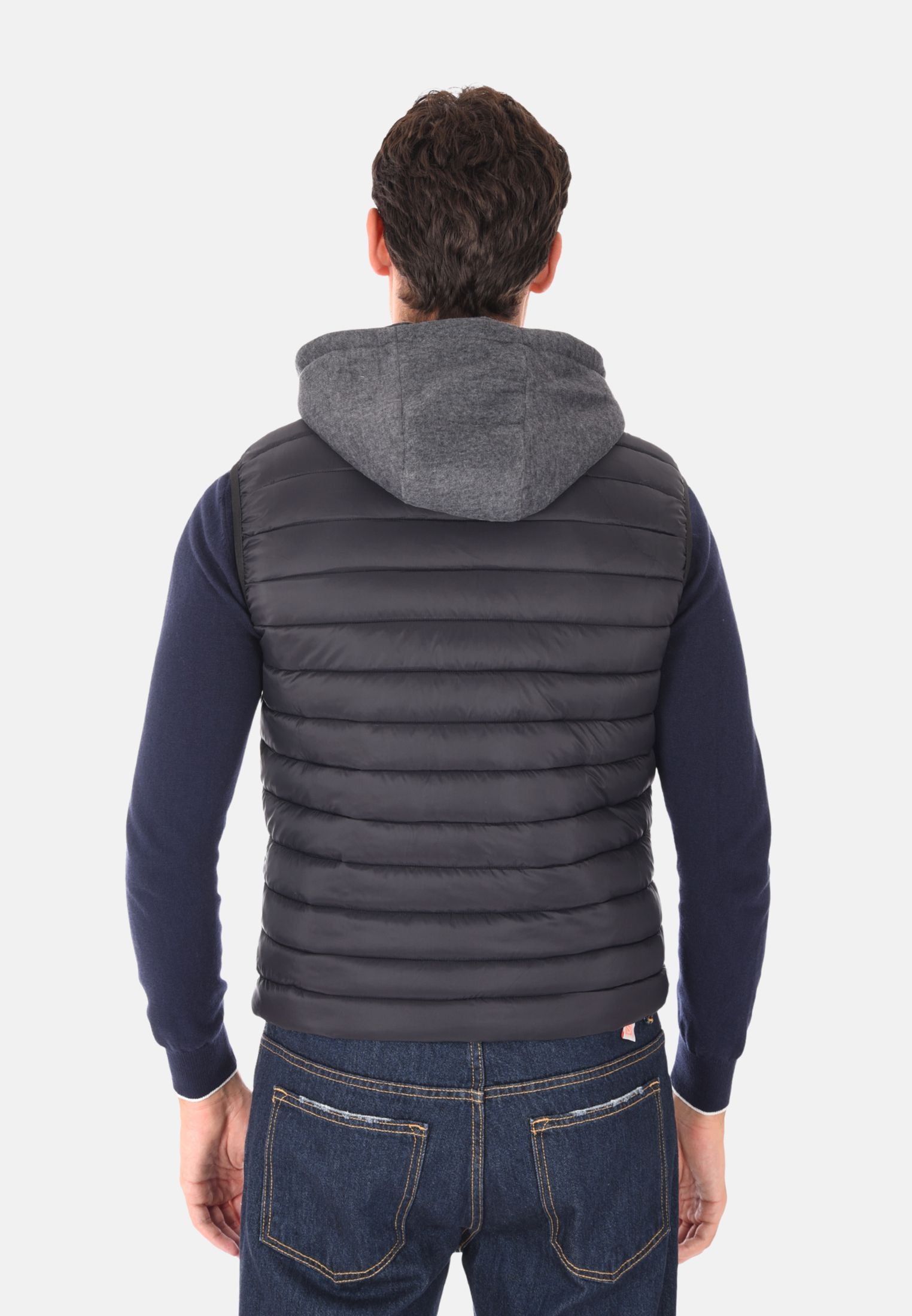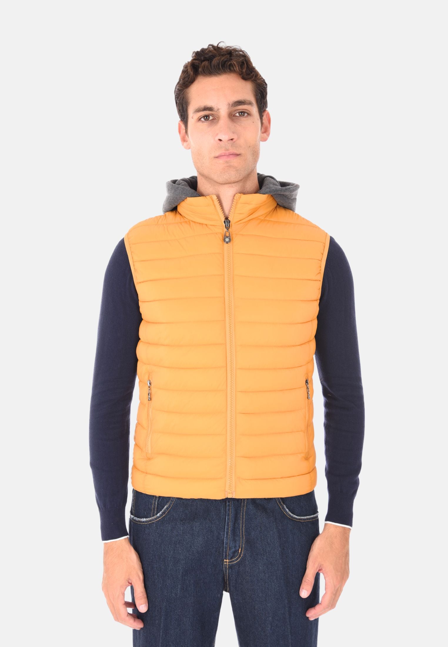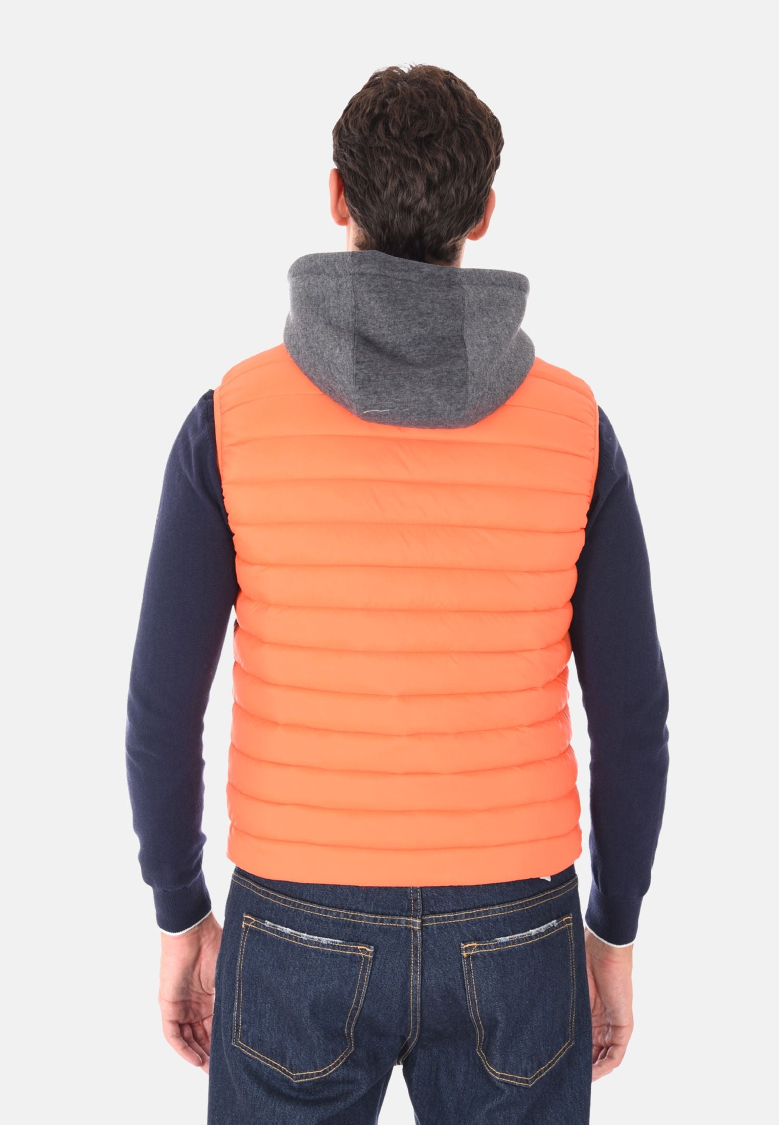 Giubbotto smanicato imbottito 100 grammi ideale per l'inverno e le mezze stagioni, perfetto da indossare sopra felpe e maglioni per un look casual e funzionale. Il giubbotto smanicato presenta un cappuccio in felpa rimovibile, che aggiunge versatilità e protezione extra contro vento e freddo. Dotato di due tasche laterali con chiusura a zip e chiusura con zip frontale a tutta lunghezza, unisce stile e praticità. Gli elastici regolabili nascosti sul fondo consentono una vestibilità più aderente, mentre la trapuntatura orizzontale dona un tocco moderno e sportivo. Realizzato in 100% nylon, si distingue per la vestibilità slim fit. Disponibile in 10 colori e nelle taglie da M a 3XL. Il modello in foto è alto 1,85 m e indossa la taglia L.