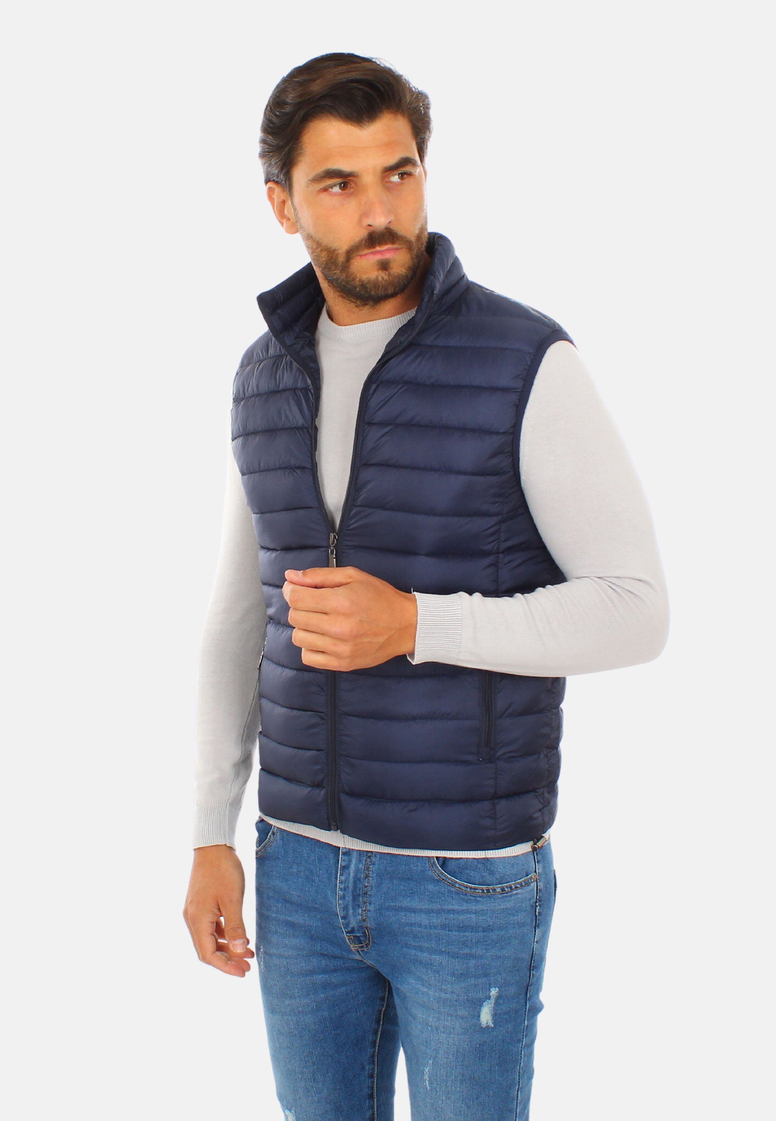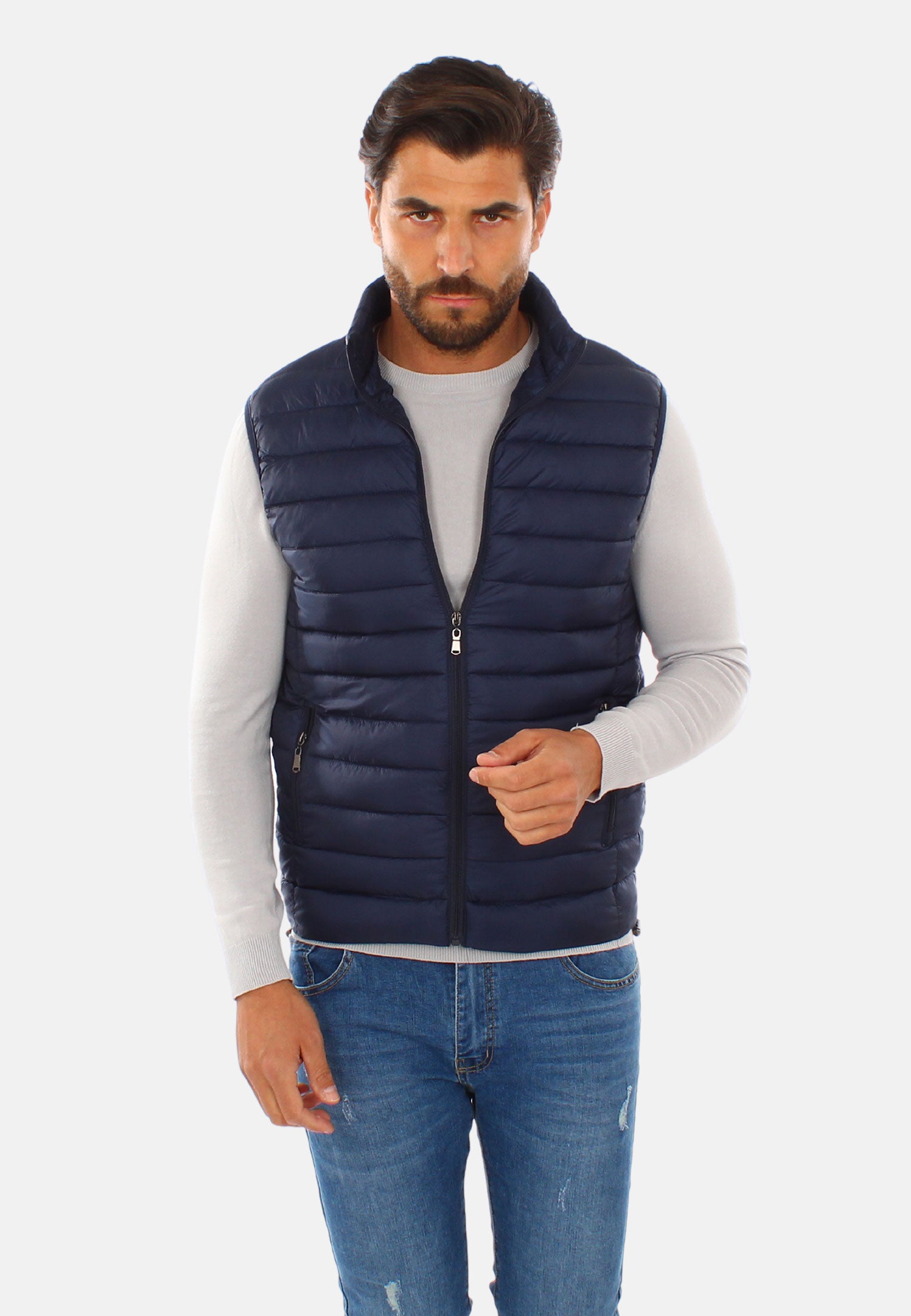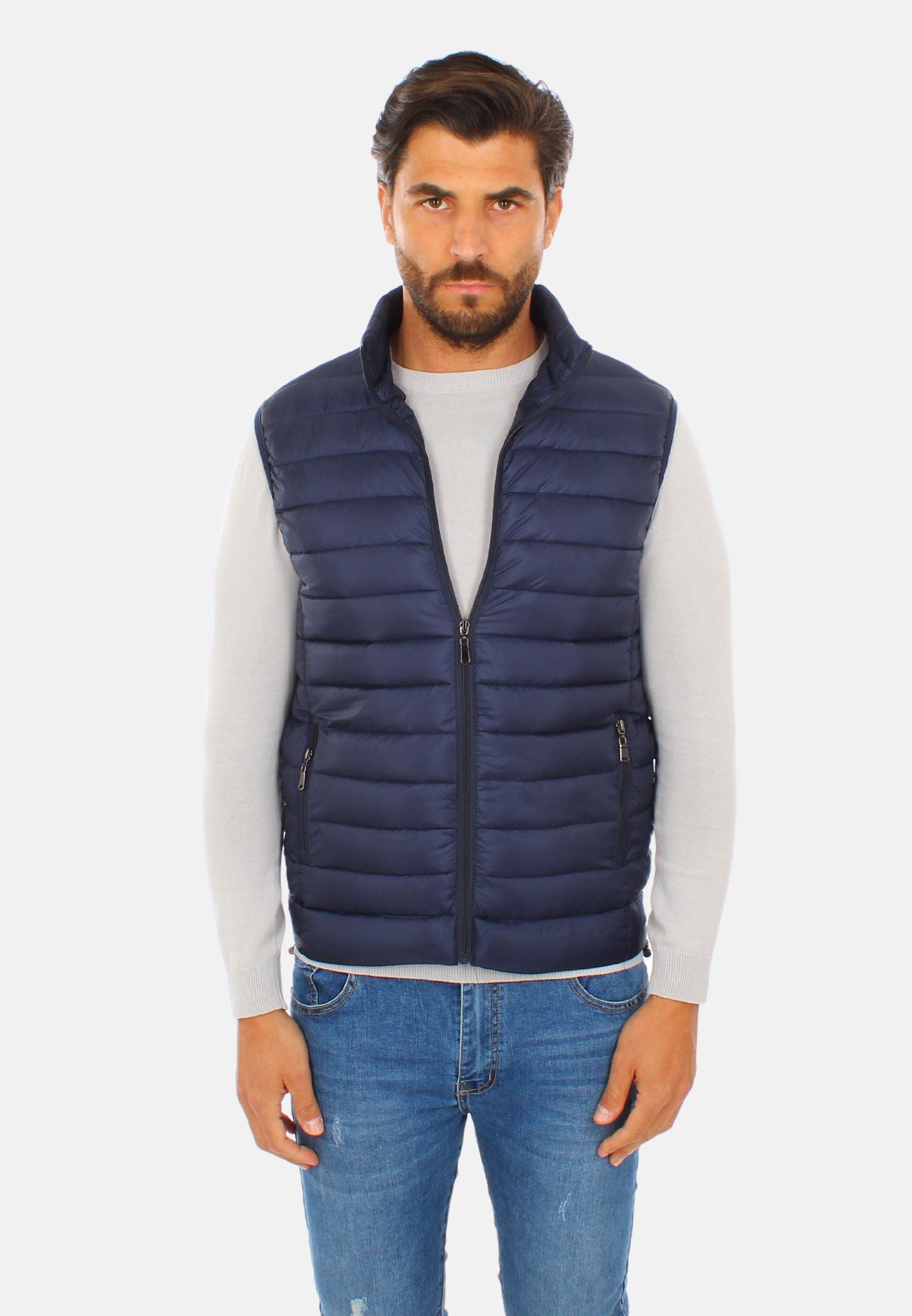 Smanicato da uomo 100 grammi, imbottito in eco-piuma. Gilet in piumino leggero. Tasche in vita, coulisse al fondo. Vestibilità slim fit. Realizzati in 65% cotone e 35% polyestere. Ideali per la stagione primaverile e nelle serate estive.
