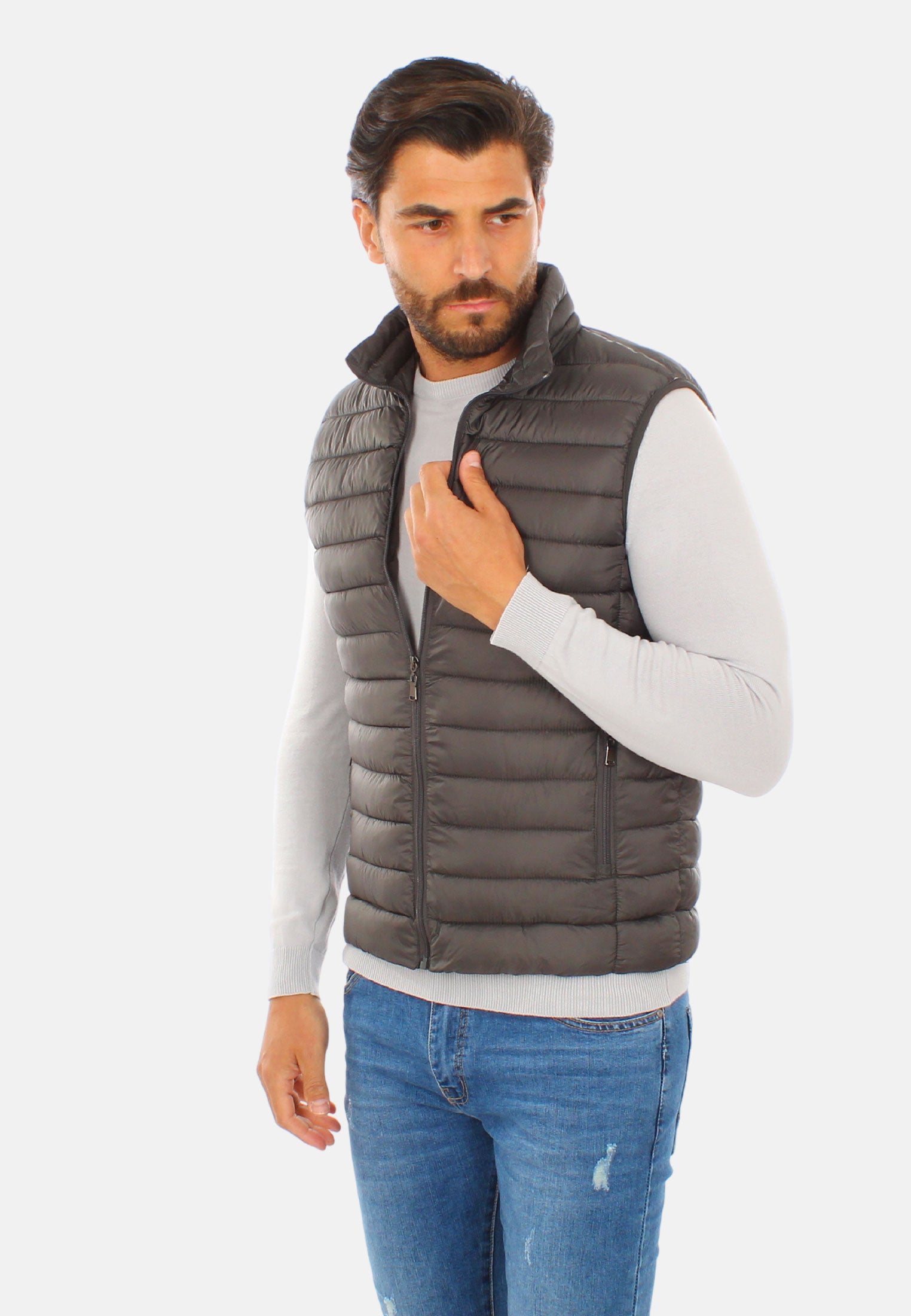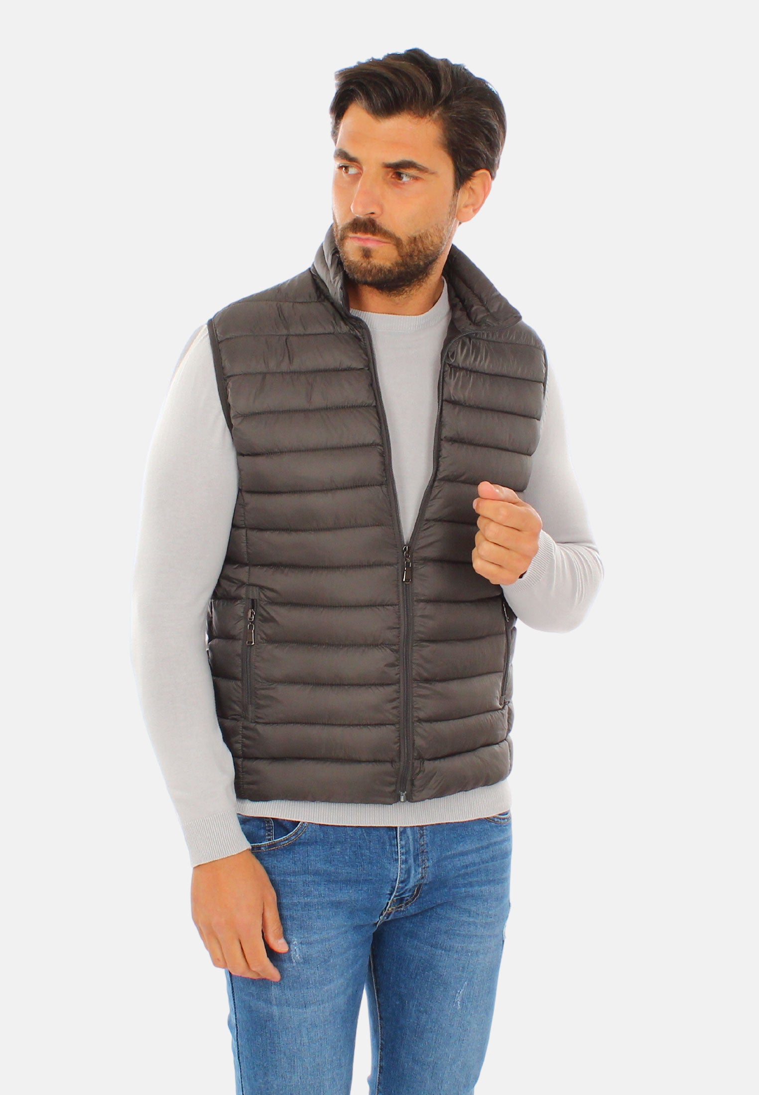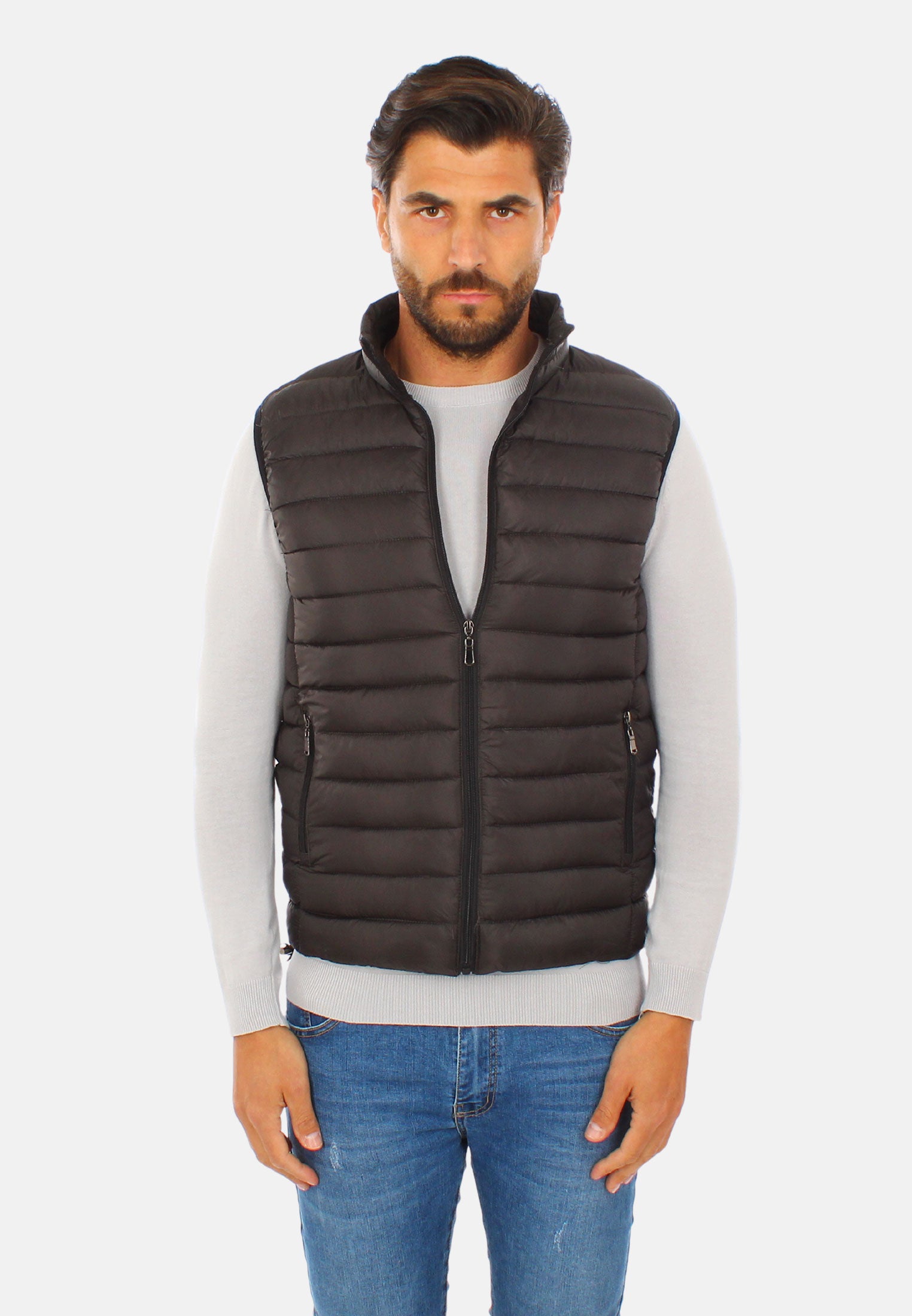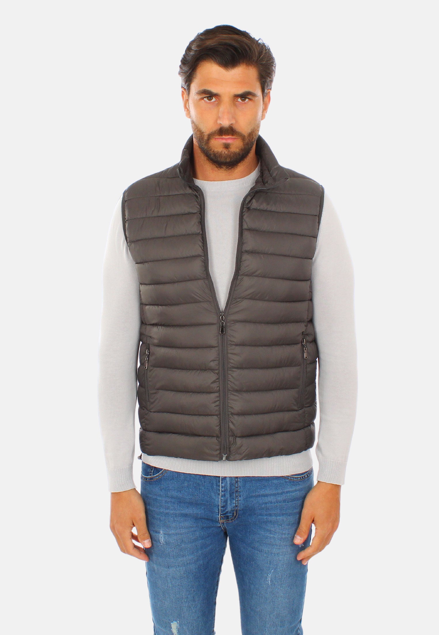Smanicato da uomo 100 grammi, imbottito in eco-piuma. Gilet in piumino leggero. Tasche in vita, coulisse al fondo. Vestibilità slim fit. Realizzati in 65% cotone e 35% polyestere. Ideali per la stagione primaverile e nelle serate estive.
