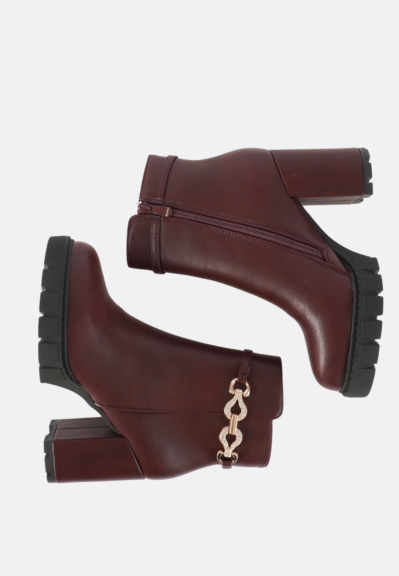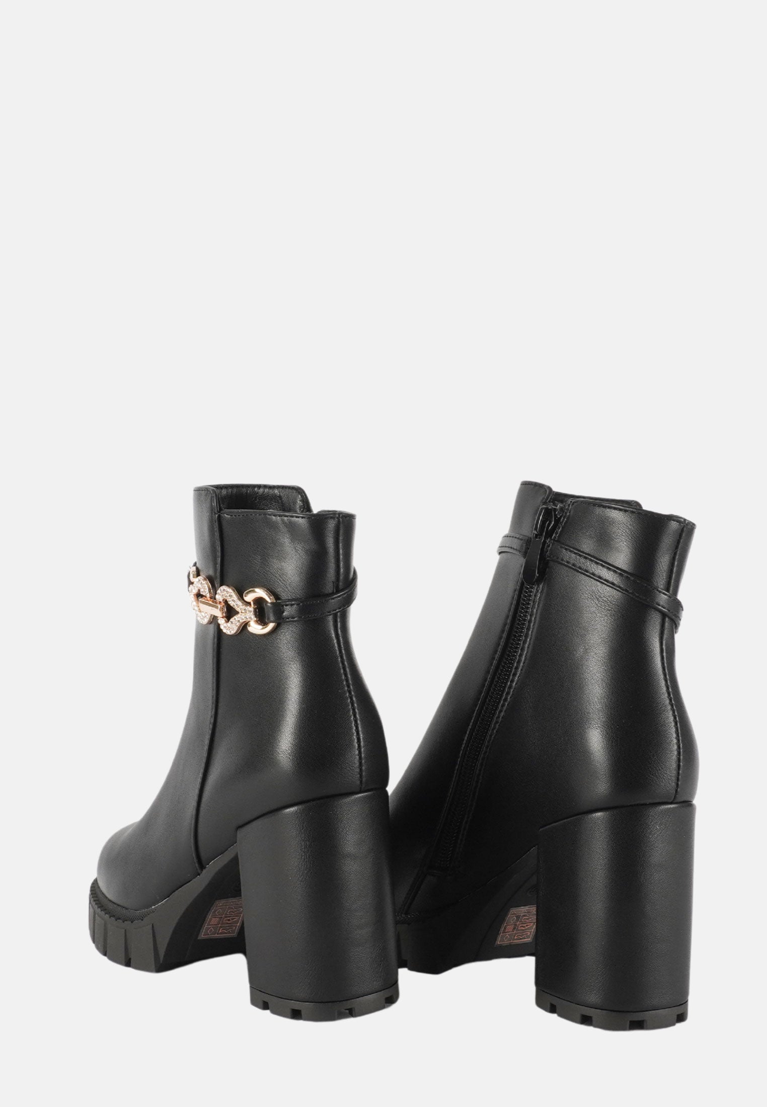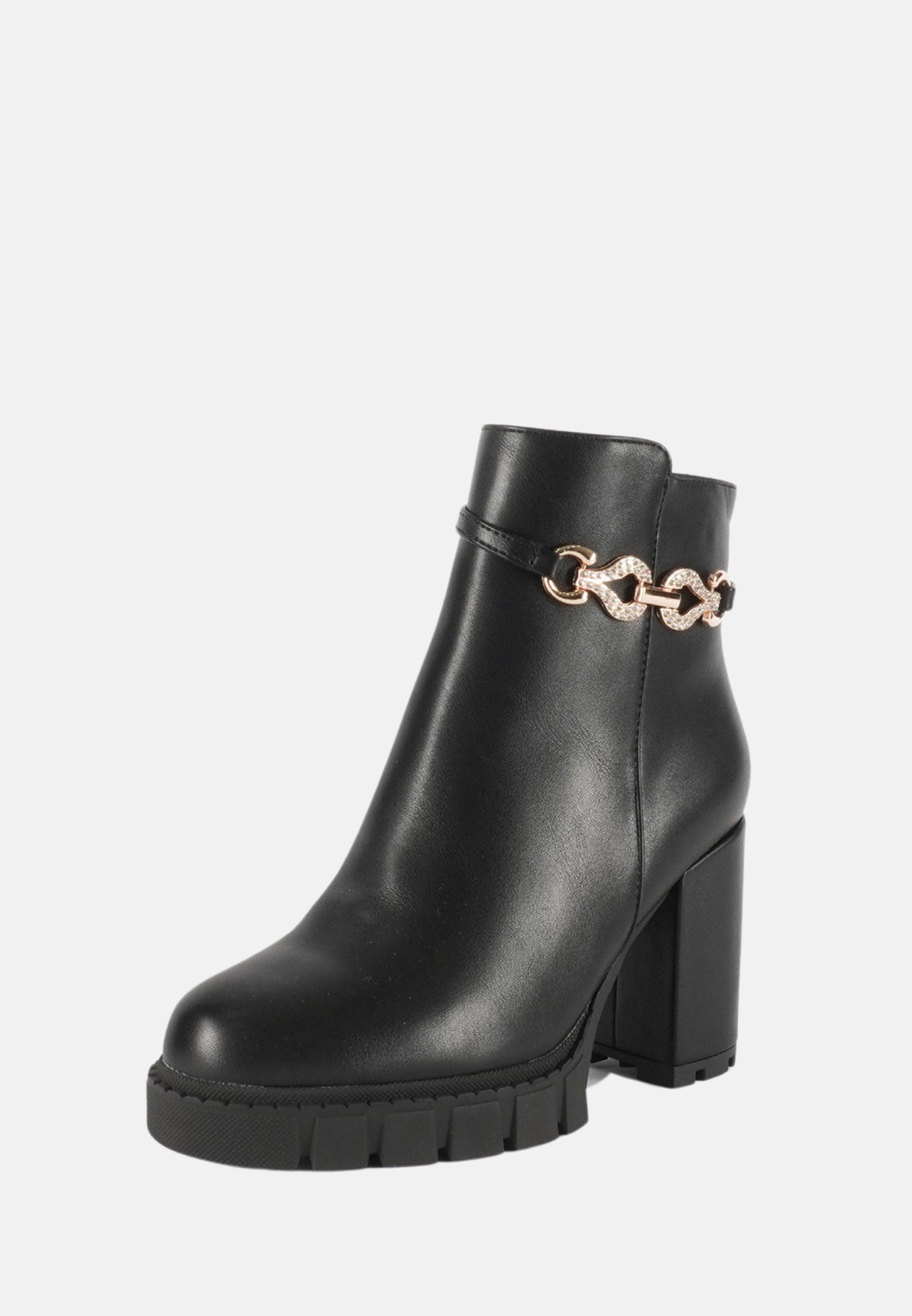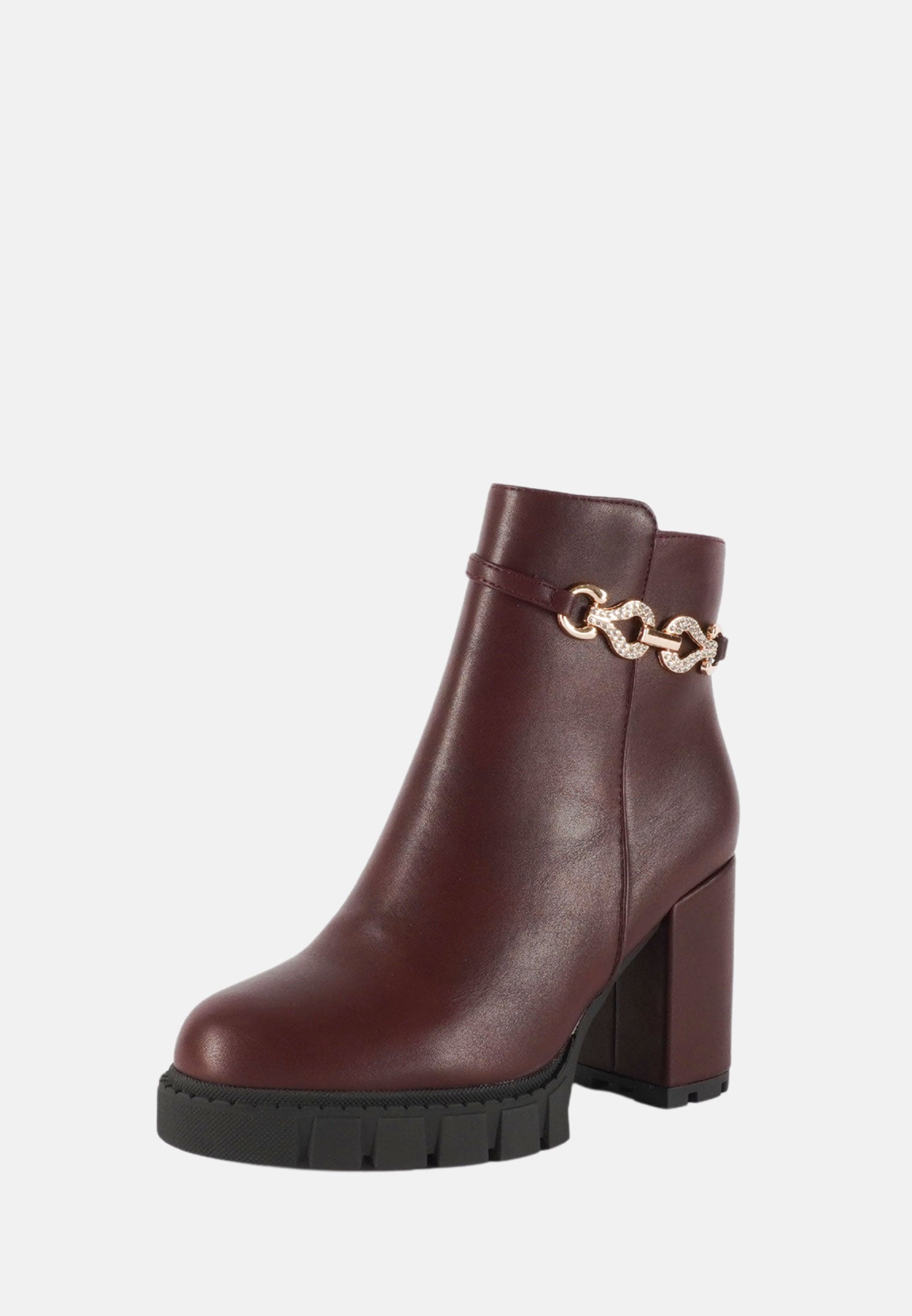 Raffinati e grintosi allo stesso tempo, questi tronchetti donna con tacco alto sono il perfetto equilibrio tra eleganza e comfort. Realizzati in morbida pelle sintetica effetto liscio, avvolgono la caviglia con una linea pulita e femminile, impreziosita dal cinturino con dettaglio gioiello dorato e strass che dona un tocco luminoso e sofisticato. Il design presenta una punta rotonda e una suola in gomma nera antiscivolo con platform da 2,5 cm, ideale per garantire stabilità e una camminata confortevole anche nelle giornate più frenetiche. Il tacco largo da 9 cm, alto ma comodo, slancia la figura senza rinunciare alla praticità, mentre il gambale di 12,5 cm avvolge perfettamente la caviglia per un look moderno e femminile. Dotati di chiusura con zip laterale, questi stivaletti sono facili da indossare e perfetti per accompagnarti in ogni occasione: dal lavoro al tempo libero, fino agli eventi serali più chic. Disponibili nei colori bordeaux, marrone e nero, nelle taglie dal 36 al 41, con calzata regolare, rappresentano un vero must-have per la stagione autunno/inverno. Ideali da abbinare a jeans skinny, gonne midi o pantaloni eleganti per creare outfit sempre impeccabili e di tendenza