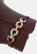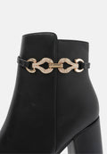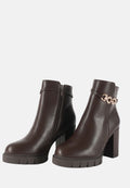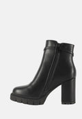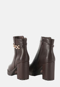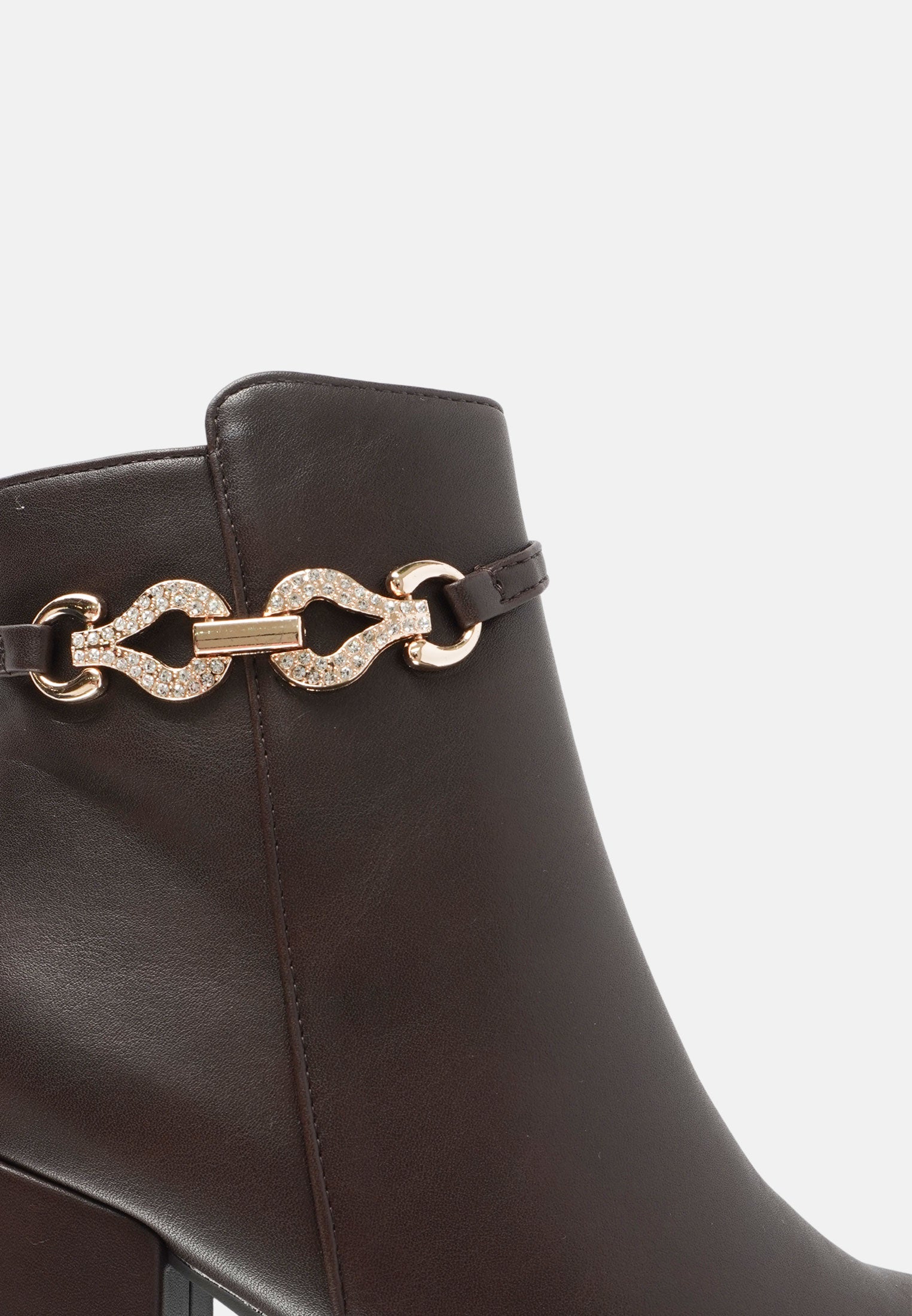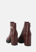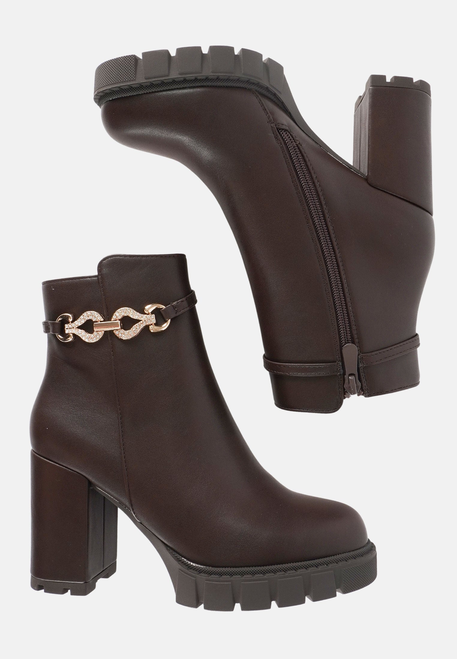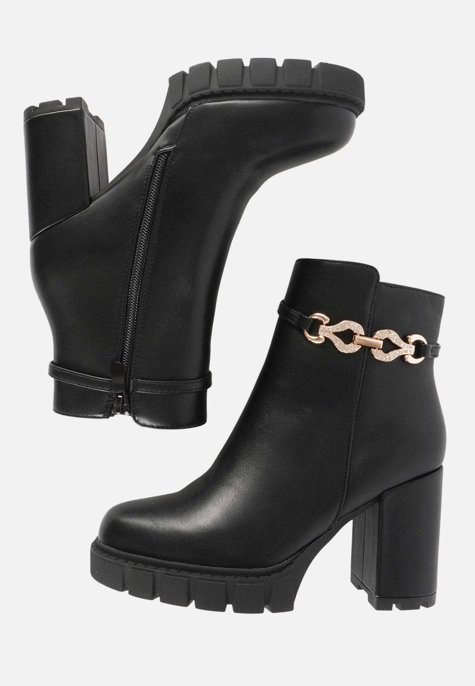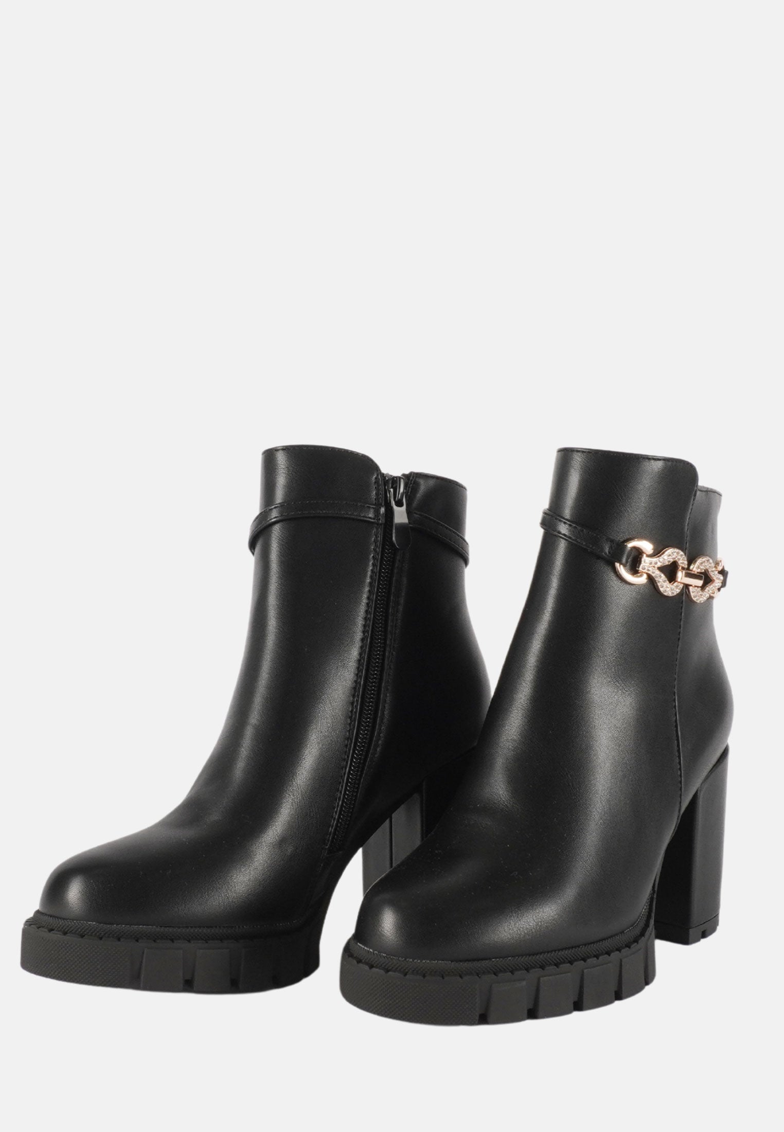 Raffinati e grintosi allo stesso tempo, questi tronchetti donna con tacco alto sono il perfetto equilibrio tra eleganza e comfort. Realizzati in morbida pelle sintetica effetto liscio, avvolgono la caviglia con una linea pulita e femminile, impreziosita dal cinturino con dettaglio gioiello dorato e strass che dona un tocco luminoso e sofisticato. Il design presenta una punta rotonda e una suola in gomma nera antiscivolo con platform da 2,5 cm, ideale per garantire stabilità e una camminata confortevole anche nelle giornate più frenetiche. Il tacco largo da 9 cm, alto ma comodo, slancia la figura senza rinunciare alla praticità, mentre il gambale di 12,5 cm avvolge perfettamente la caviglia per un look moderno e femminile. Dotati di chiusura con zip laterale, questi stivaletti sono facili da indossare e perfetti per accompagnarti in ogni occasione: dal lavoro al tempo libero, fino agli eventi serali più chic. Disponibili nei colori bordeaux, marrone e nero, nelle taglie dal 36 al 41, con calzata regolare, rappresentano un vero must-have per la stagione autunno/inverno. Ideali da abbinare a jeans skinny, gonne midi o pantaloni eleganti per creare outfit sempre impeccabili e di tendenza